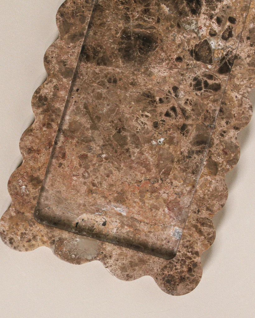 The Arabesque Tray is designed for those who value thoughtful design and timeless materials. With its rectangle proportions and scalloped edging, it brings a harmonious balance of shape and texture.