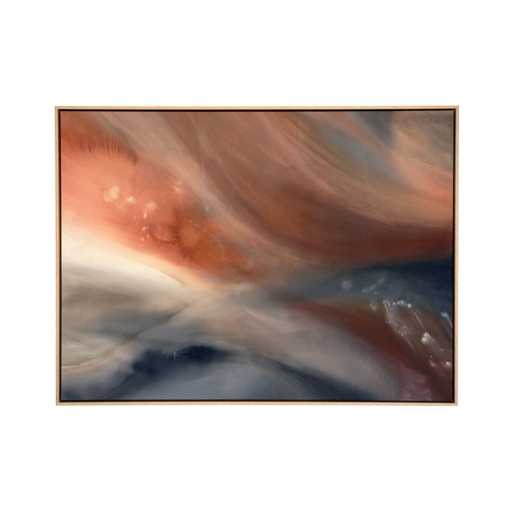 The layering of paint, inks, and pigments are intuitively moved across the canvas in fluid moments and open a dialogue between the artist’s process and abstraction.
