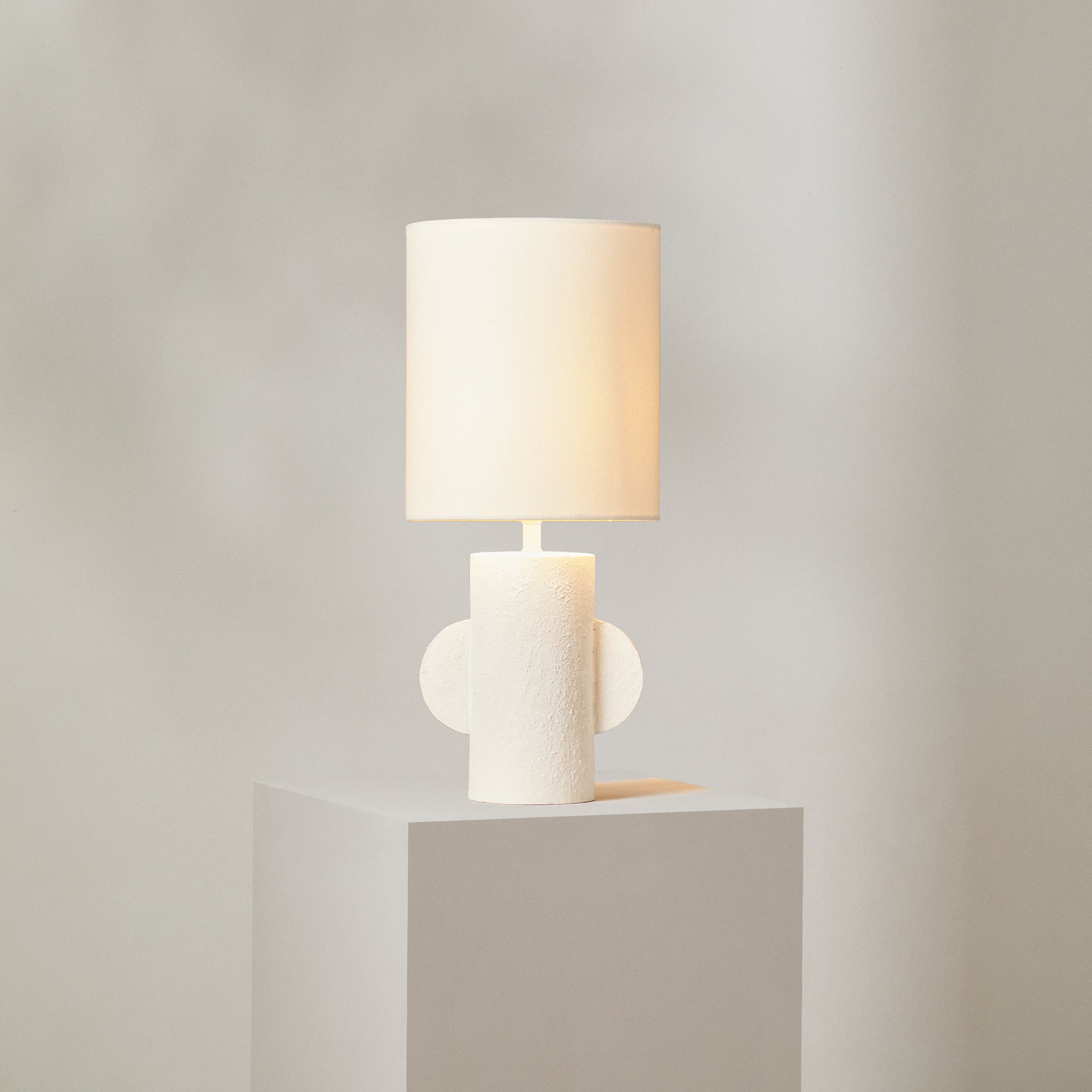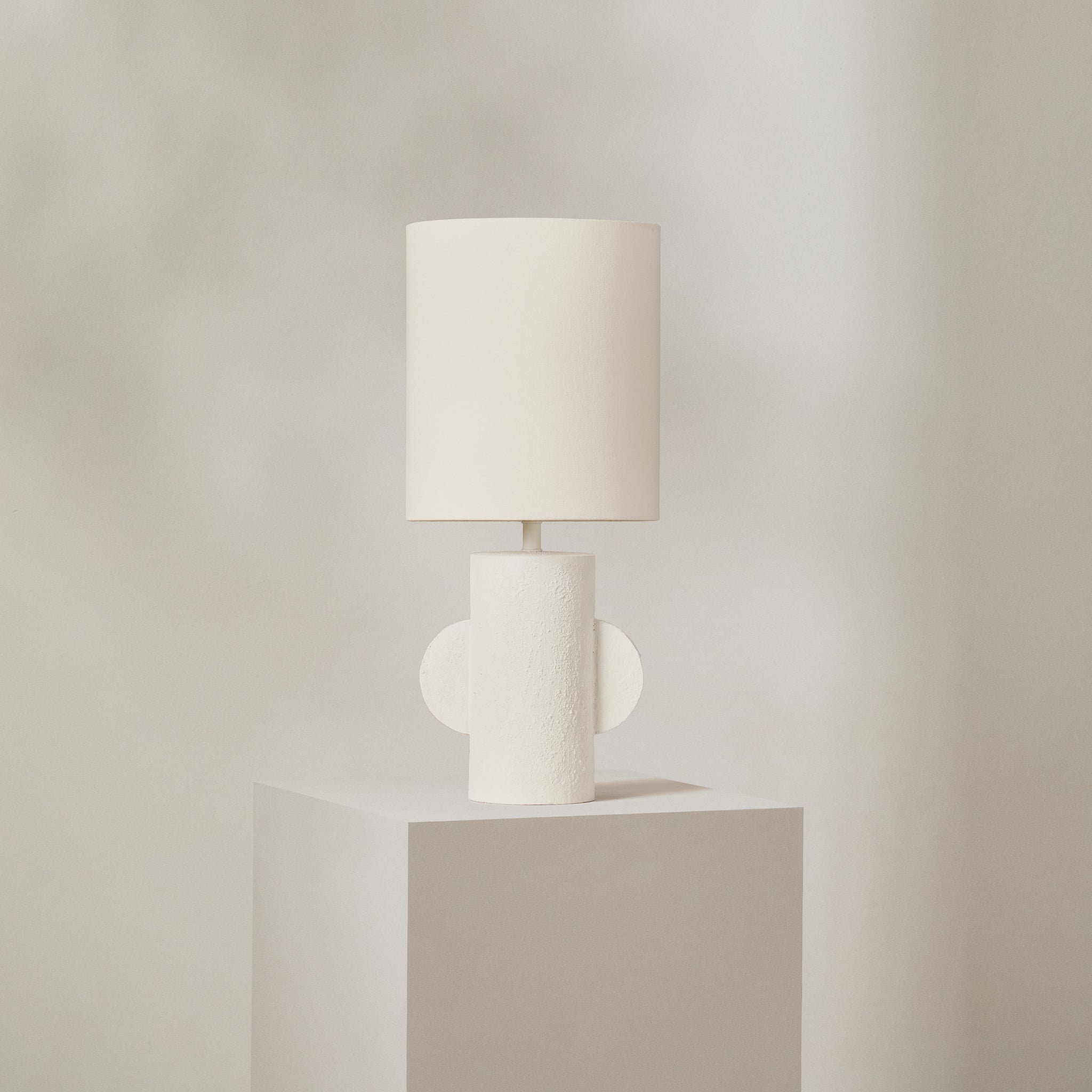 With a geometric base crafted from iron and a round fabric shade, our Clio table lamp was inspired by the Greek Islands and celebrates creative form and functional craftsmanship. Sculptural by design, the Clio promises to infuse your home with playful design and a soft, warm light. Place this lamp atop a side table in your living space or on a console table amongst a cluster of precious trinkets and framed photographs.