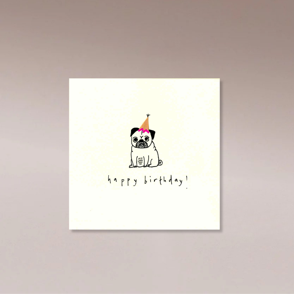 Ruth Jackson Card Pencil Shavings - Pug Happy Birthday