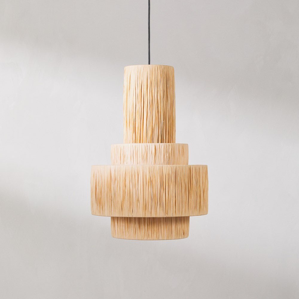 Inspired by the islands of Greece, our Gaia pendant is replete with striking lines with warm tones. It has been expertly crafted by hand and features an iron frame, intricately woven with raffia. It is sculptural by design and proudly celebrates the harmonious fusion of form and function. Place it in your home above your kitchen island or as a statement fixture in your living space.