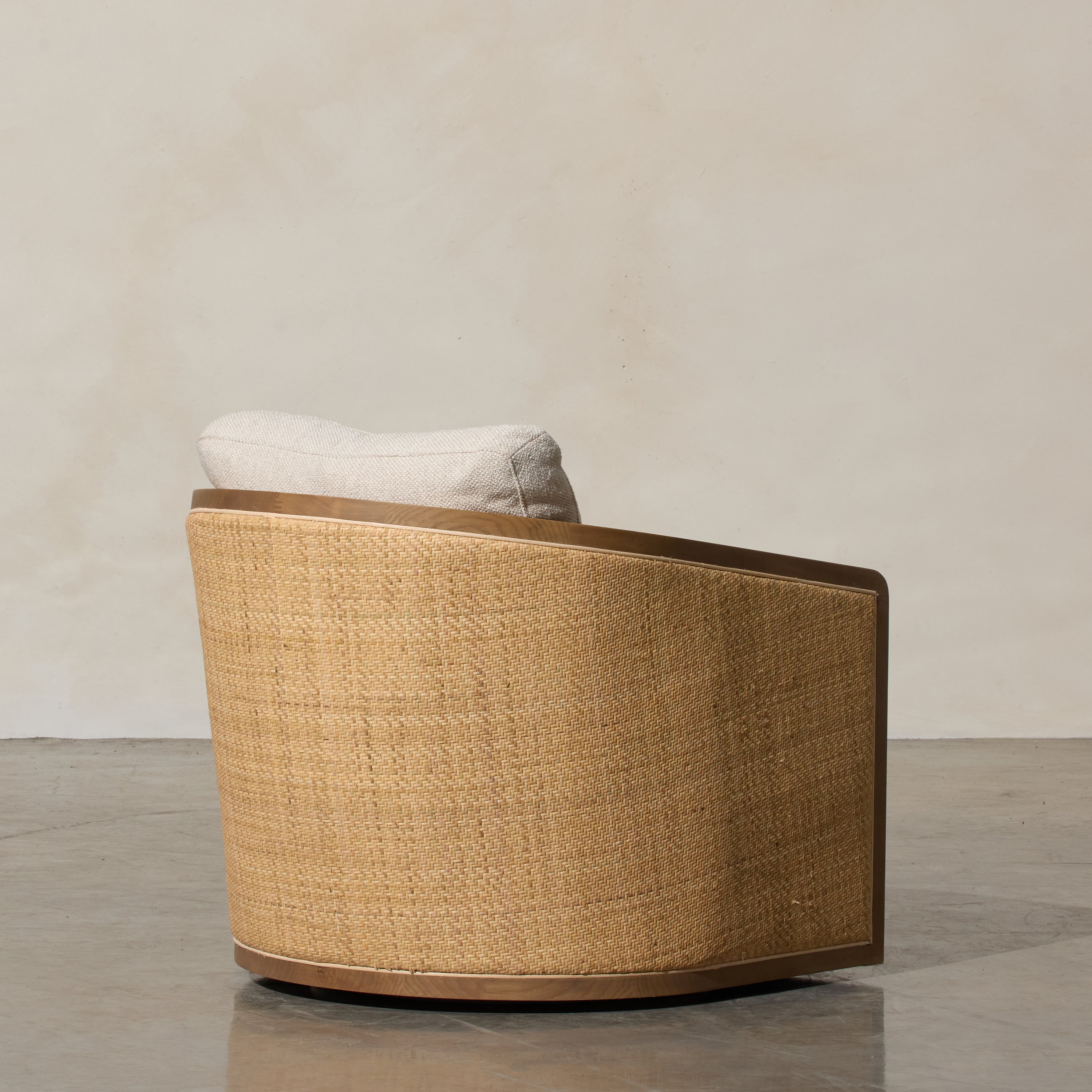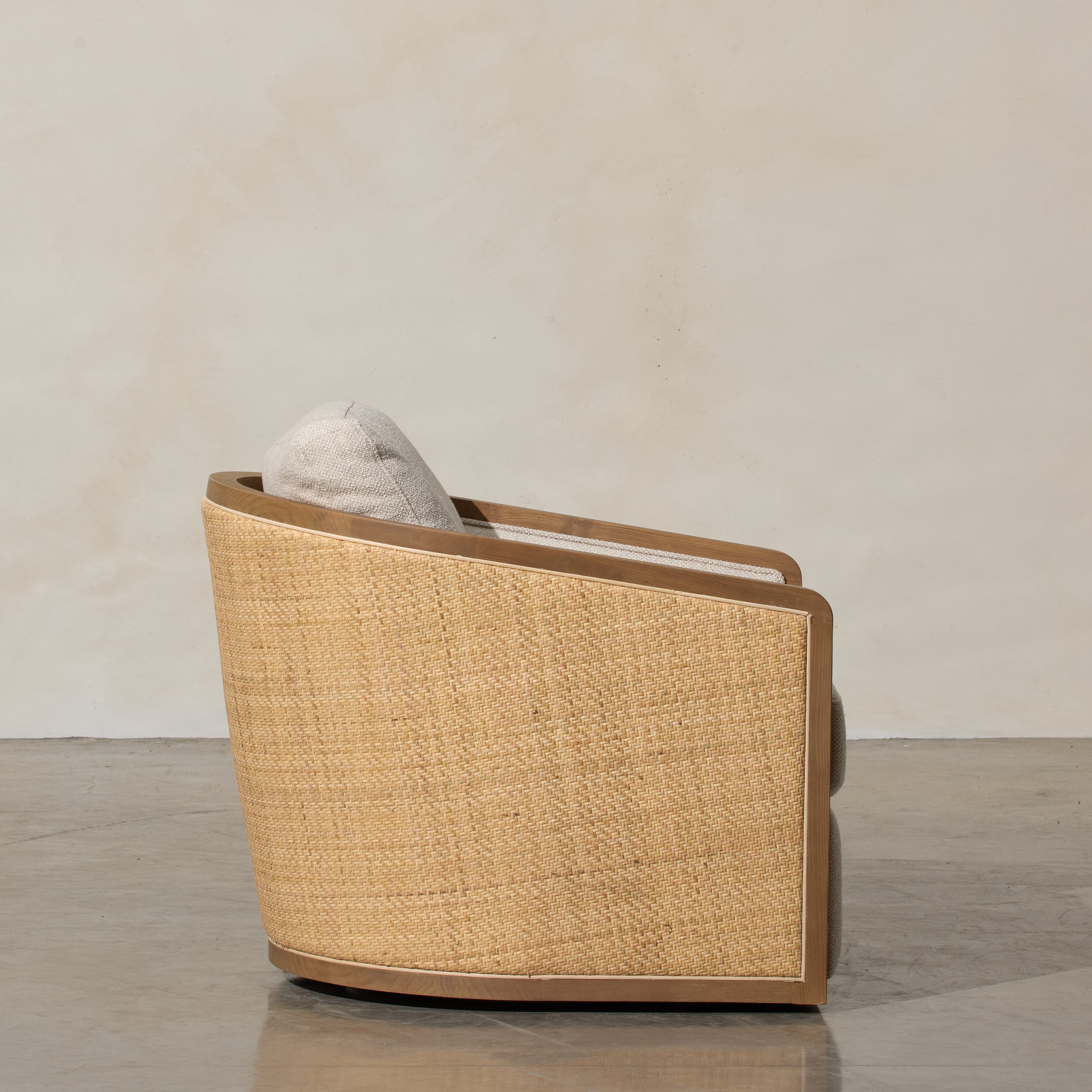 The Reid Occasional Chair is a true embodiment of classic elegance and relaxed sophistication. Designed with a distinctive wrap-around silhouette, this inviting armchair creates a cocoon-like embrace that delivers both comfort and visual appeal. Featuring a smooth swivel base, it allows for effortless movement while maintaining a grounded, sculptural presence.