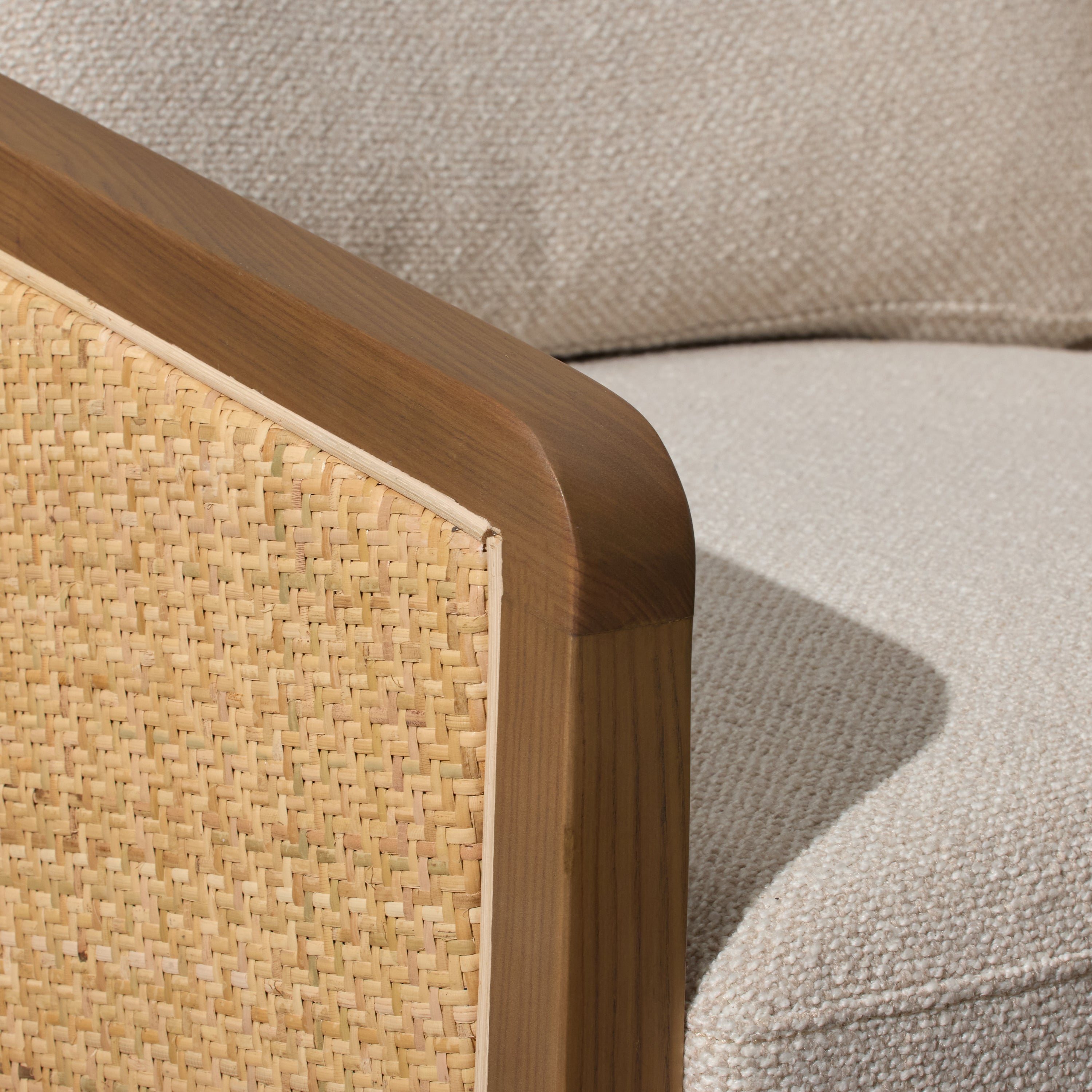 Crafted from a charming blend of rattan and timber, the Reid Chair brings natural warmth and organic texture into your space. The rattan detailing evokes a laid-back coastal feel, while the timber elements add a timeless, refined touch. Gently curved armrests enhance the cocooning design, inviting you to sink in and unwind.