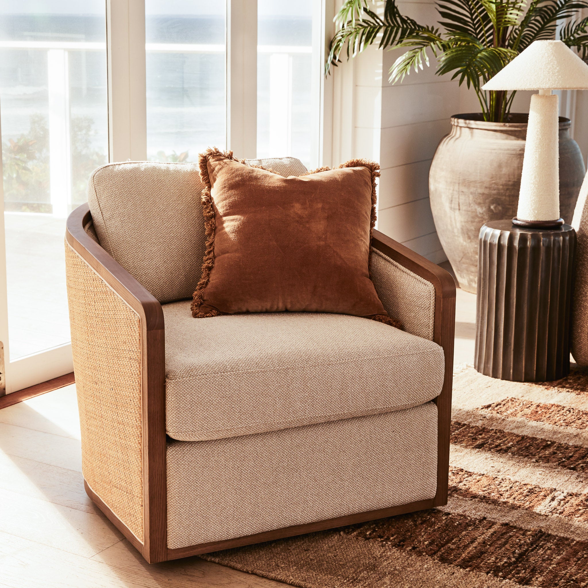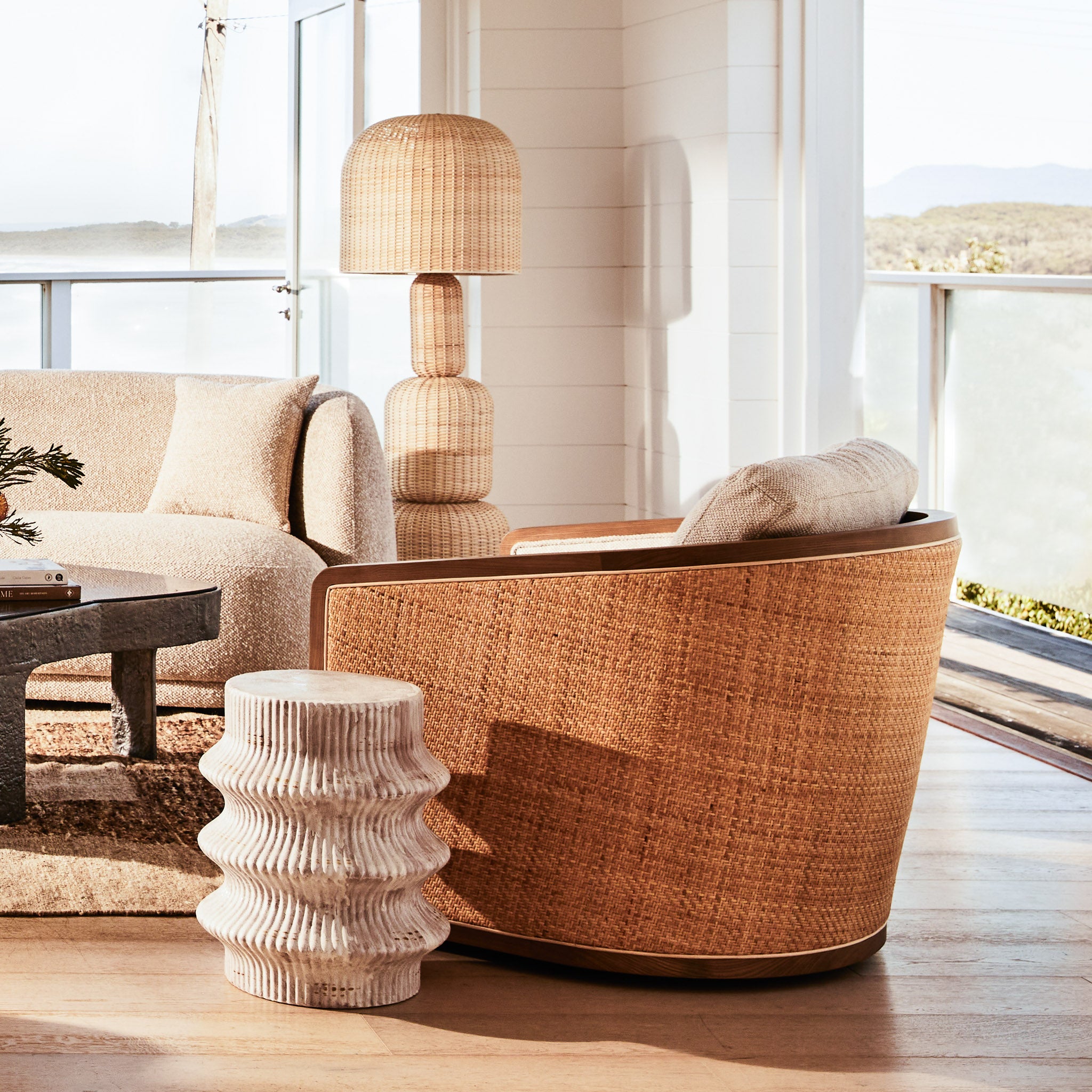 Every curve and material choice reflects coastal charm and enduring style. Style the Reid Occasional Chair with a side table and a potted plant or a small vase of fresh flowers to introduce freshness and balance to your interior.