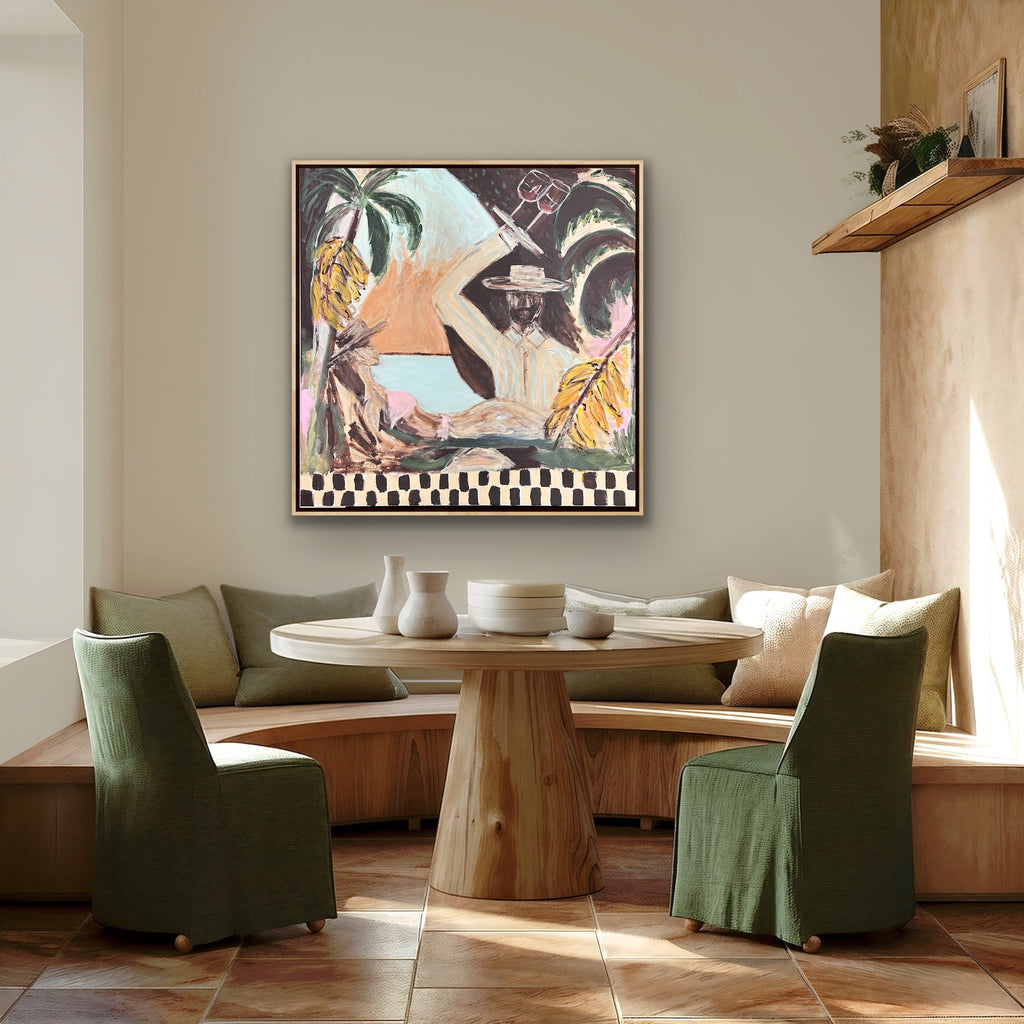 Yolanda Eke is an Australian artist whose work moves between abstraction, memory, and story. Her layered gestures and sun-washed palettes, shaped by Mediterranean light and the grounded landscapes of Australia, blur places into feeling while playful figurative scenes emerge with warmth and character.