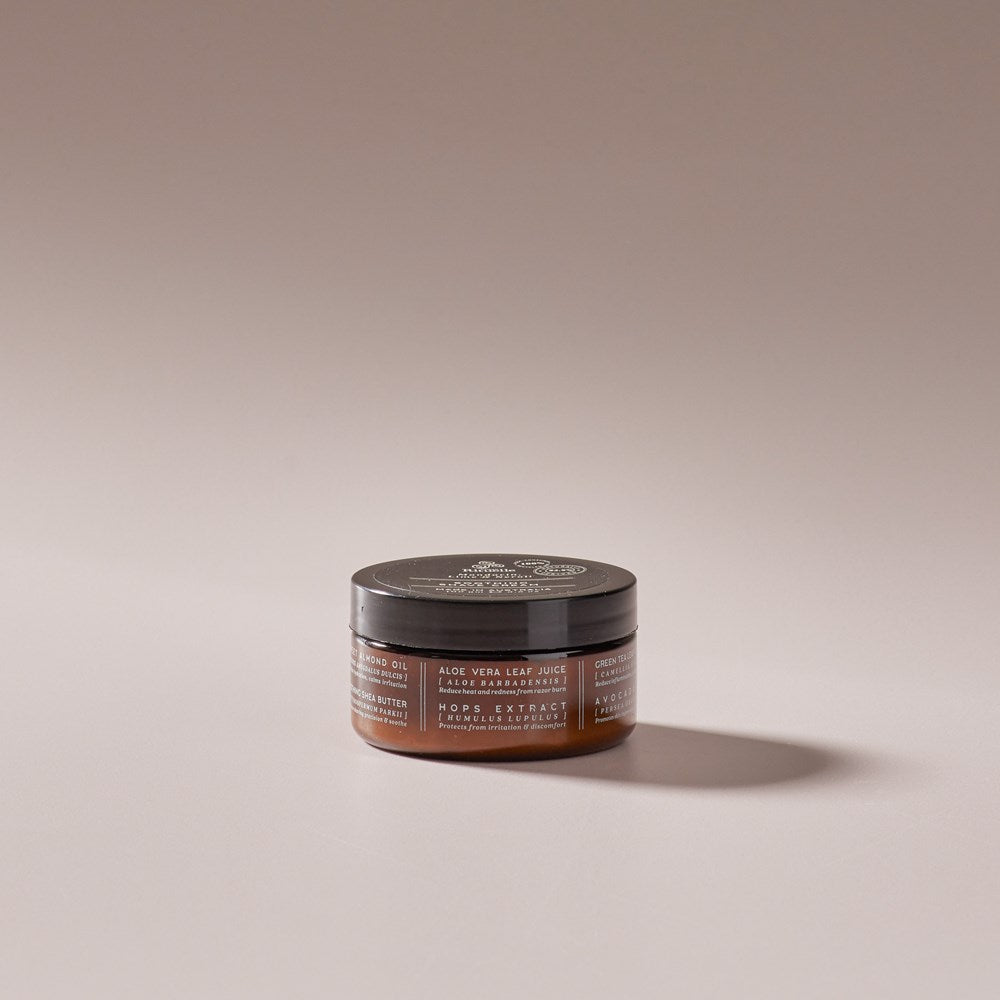 A rich, Soothing Shave Cream with calming aloe vera to protect from razor burn and hydrating shea butter to provide a creamy lather & enhance shaving precision. Avocado oil promotes healthy skin regeneration and rejuvenation. Allantoin helps alleviate skin irritation while providing a protective barrier for chafed skin. Licorice extract, known for it's anti-inflammatory properties, improves skin tone, while hops extract protects skin from irritation & discomfort. Botanical extracts of green tea & chamomile soothe & calm irritation. Enriched with vegetable glycerine to soften the hair follicles & to lubricate the skin for a clean, smooth shave. Suitable for both men & women. Naturally fragranced with mandarin, lime & neroli essential oils.