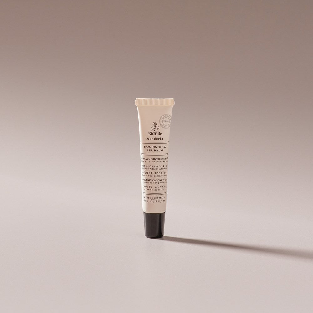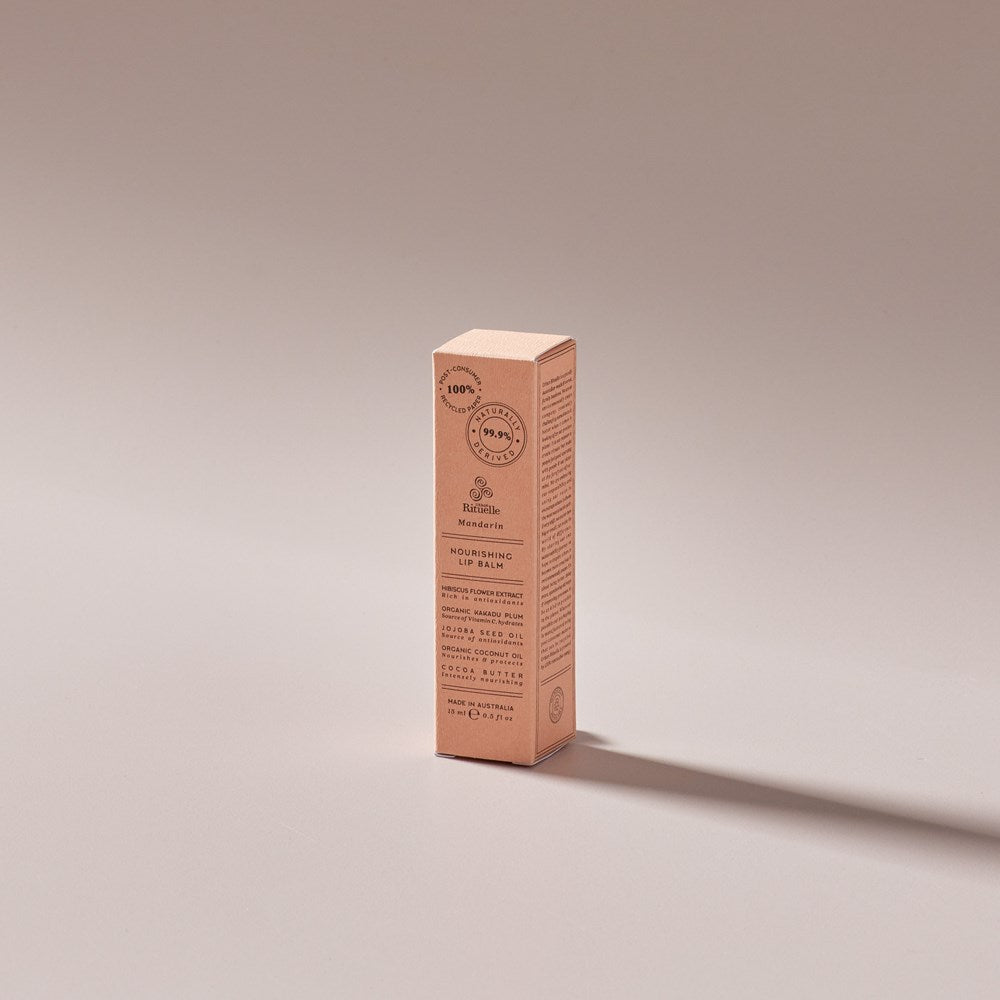 Soothe & hydrate lips with this natural Nourishing Lip Balm, enriched with organic coconut oil, jojoba oil & intensely nourishing cocoa butter. Antioxidant rich hibiscus flower and organic kakadu plum deeply moisturise & protect lips from harsh environmental elements. Naturally flavoured with mandarin essential oils.