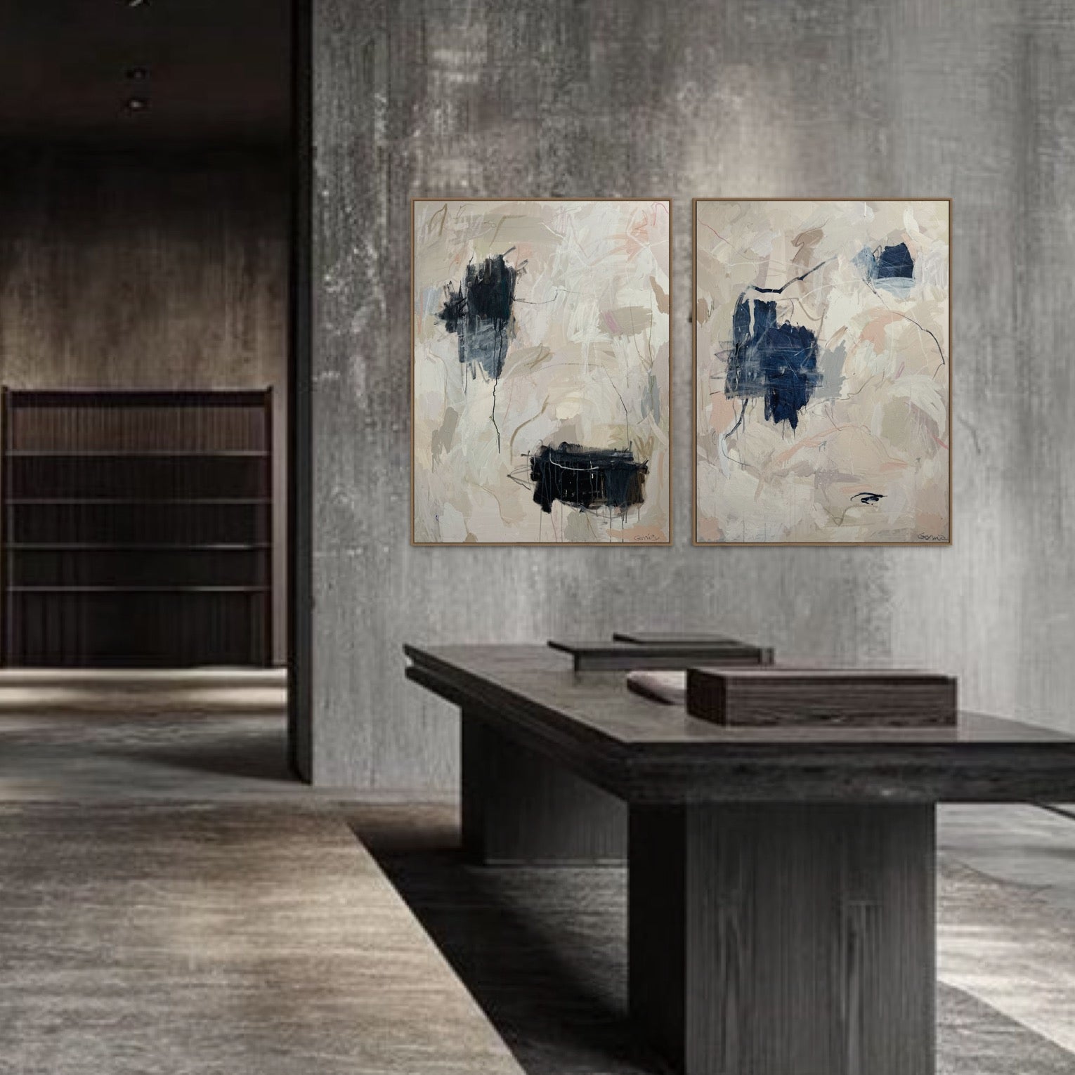 When viewed together, Aether and Lumen form a diptych that speaks in harmony. Each piece holds its own presence, yet together they create a dialogue between contrast and cohesion — shadow and light, movement and pause. Their pairing offers balance, designed to be displayed side by side as a singular statement.