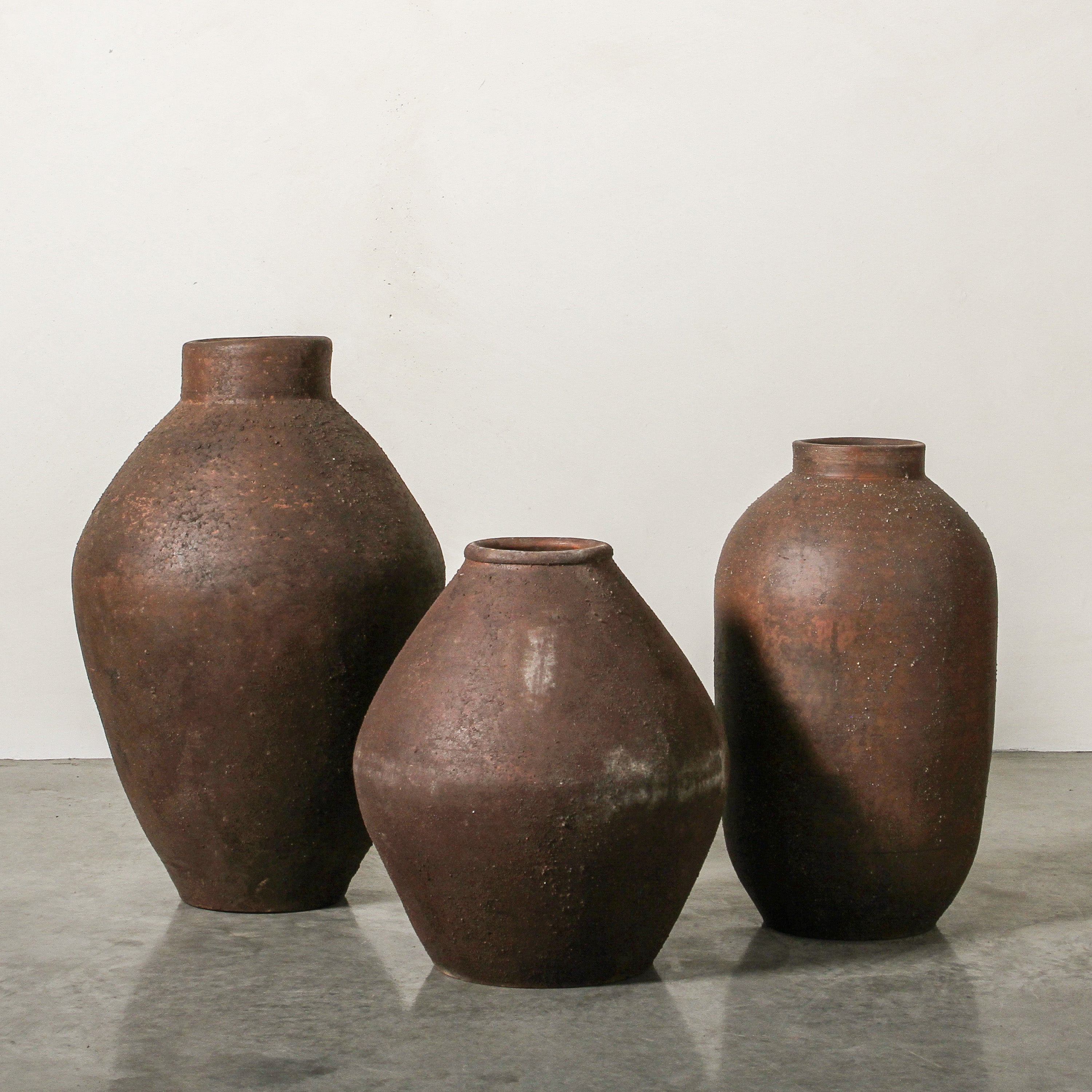 Elevate your interior with the Arwa Pot, a grand-sized vessel inspired by classic ancient forms and finished in a rustic brown. This pot is made of terracotta and boasts an organic, elongated form with subtle textures, adding depth and interest to its appearance.