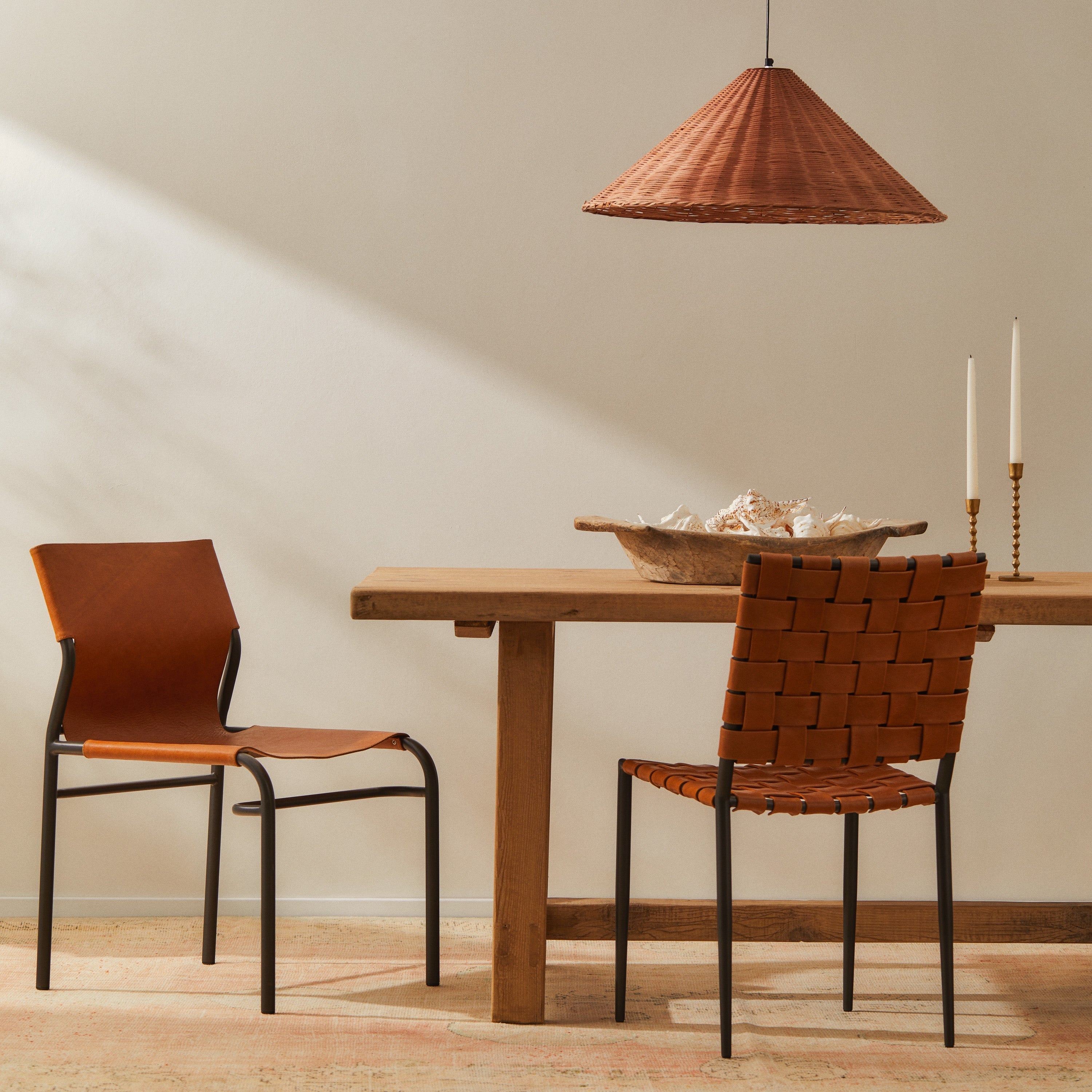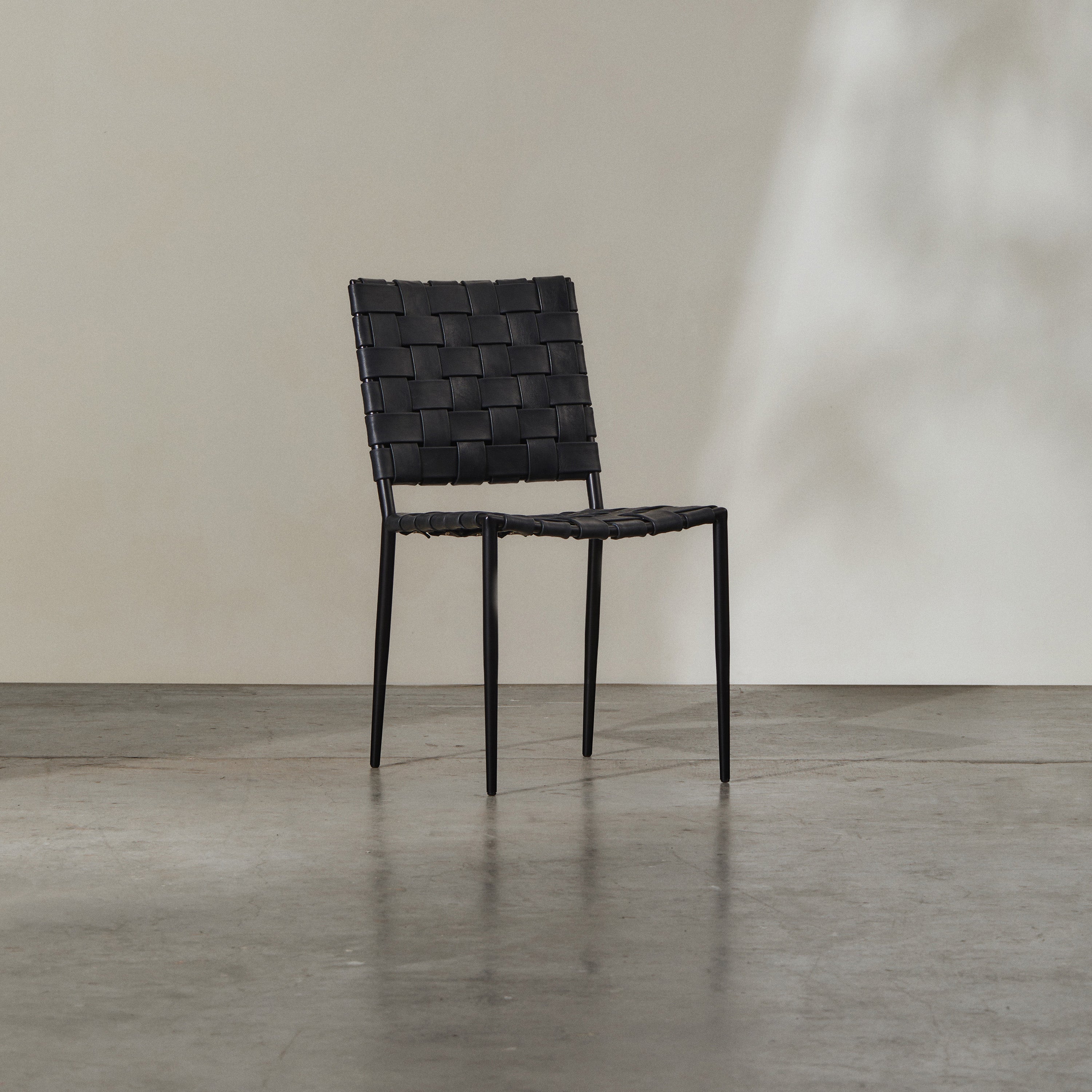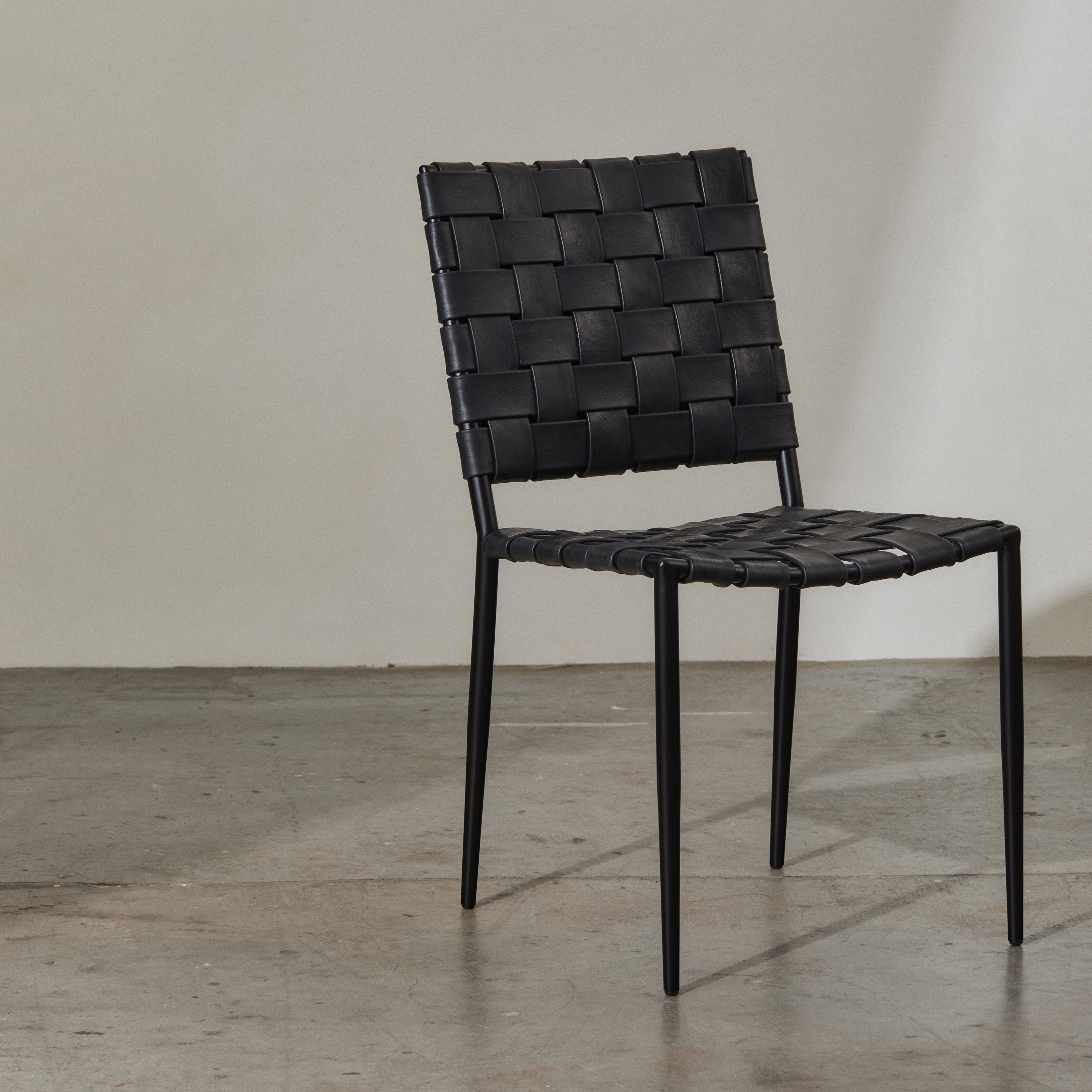 Quality, luxury and style. Meet the Batali Dining Chair. With its elegant metal frame, thoughtful design and exquisite upholstery, this chair is sure to make a statement in any space. The back rest and seat are comprised of leather strappings woven into a grid-like pattern, both intriguing and supportive. Whether you're enjoying an intimate dinner or hosting a large gathering, the Batali Dining Chair will be the perfect accompaniment to create a stunning dining experience.