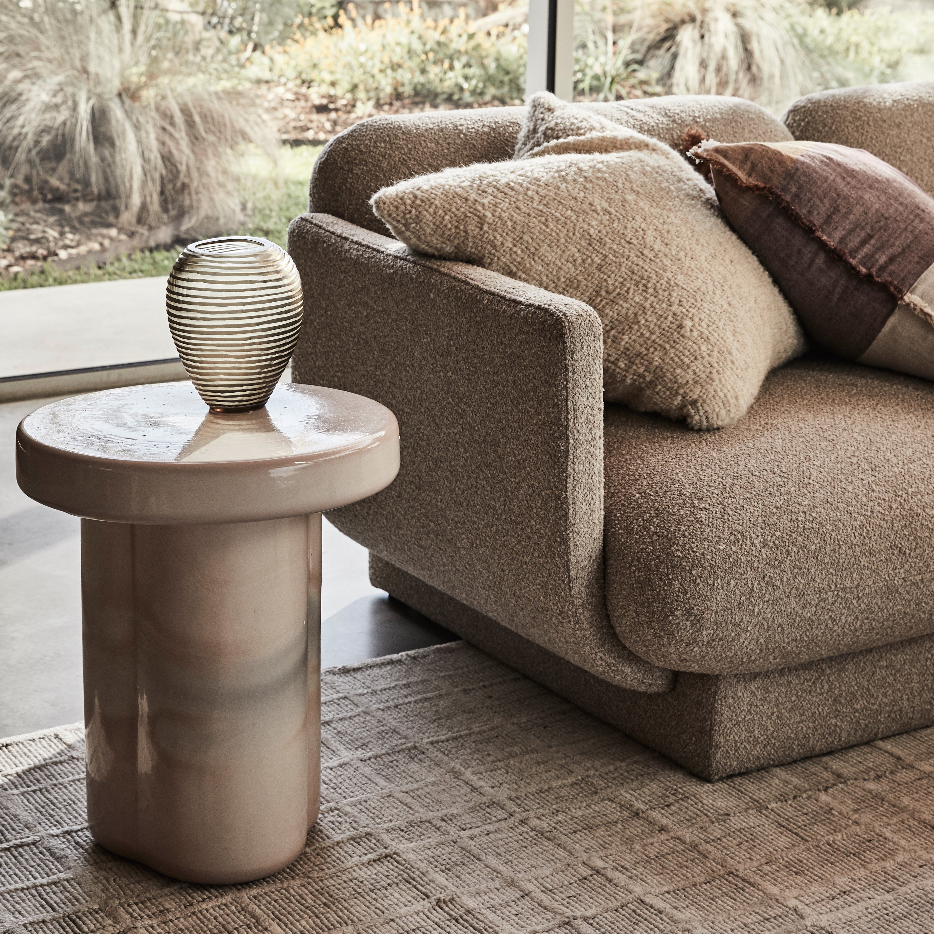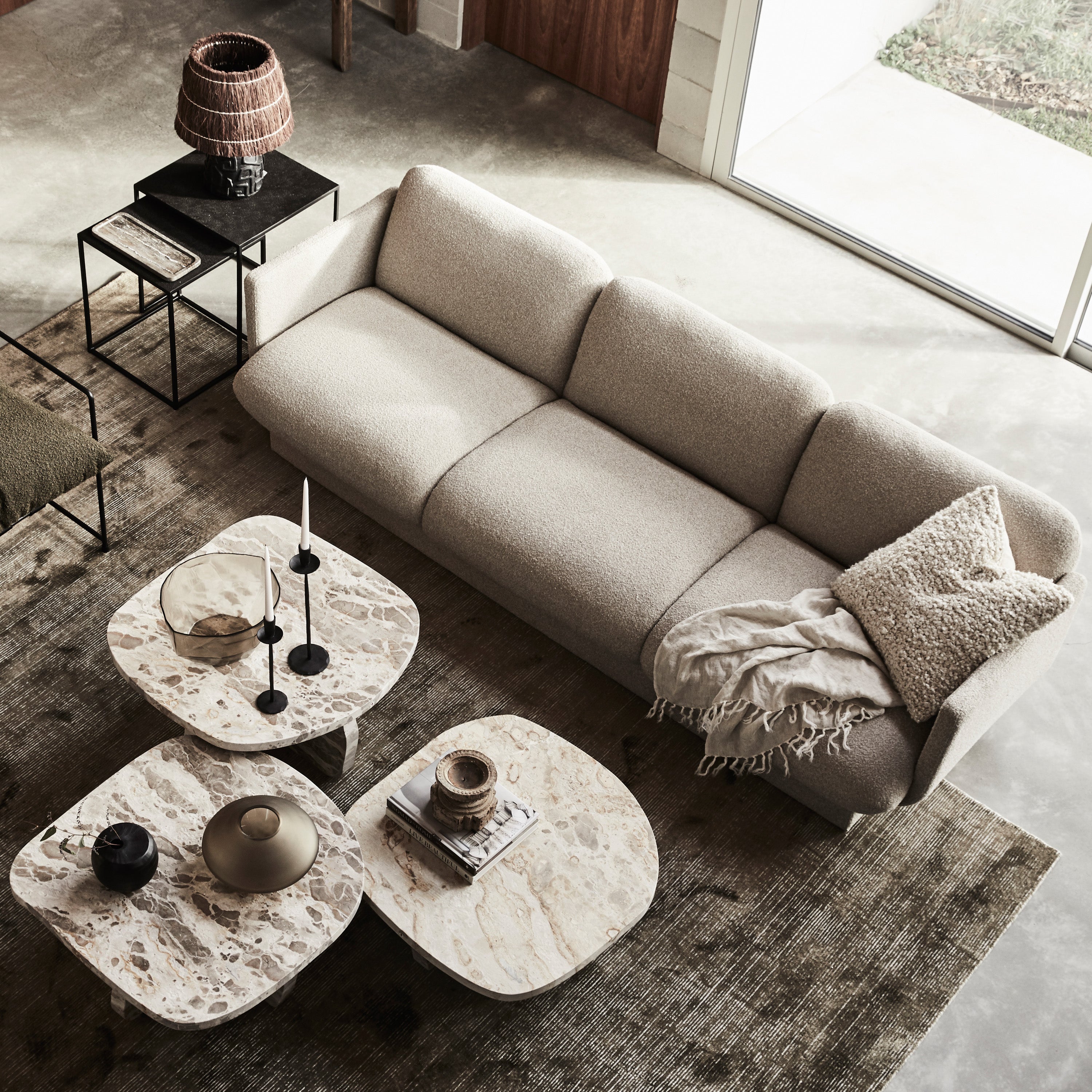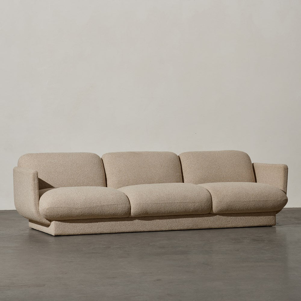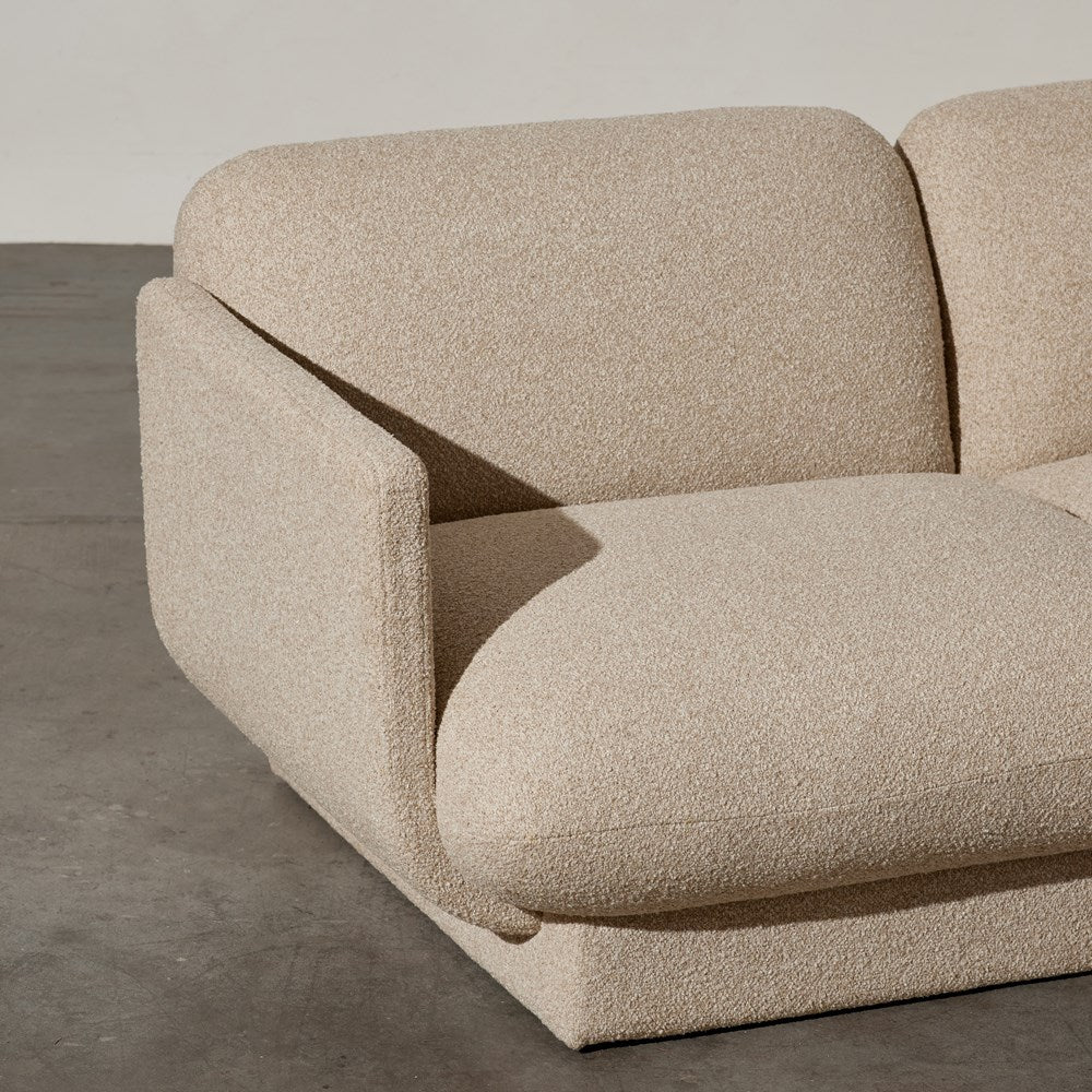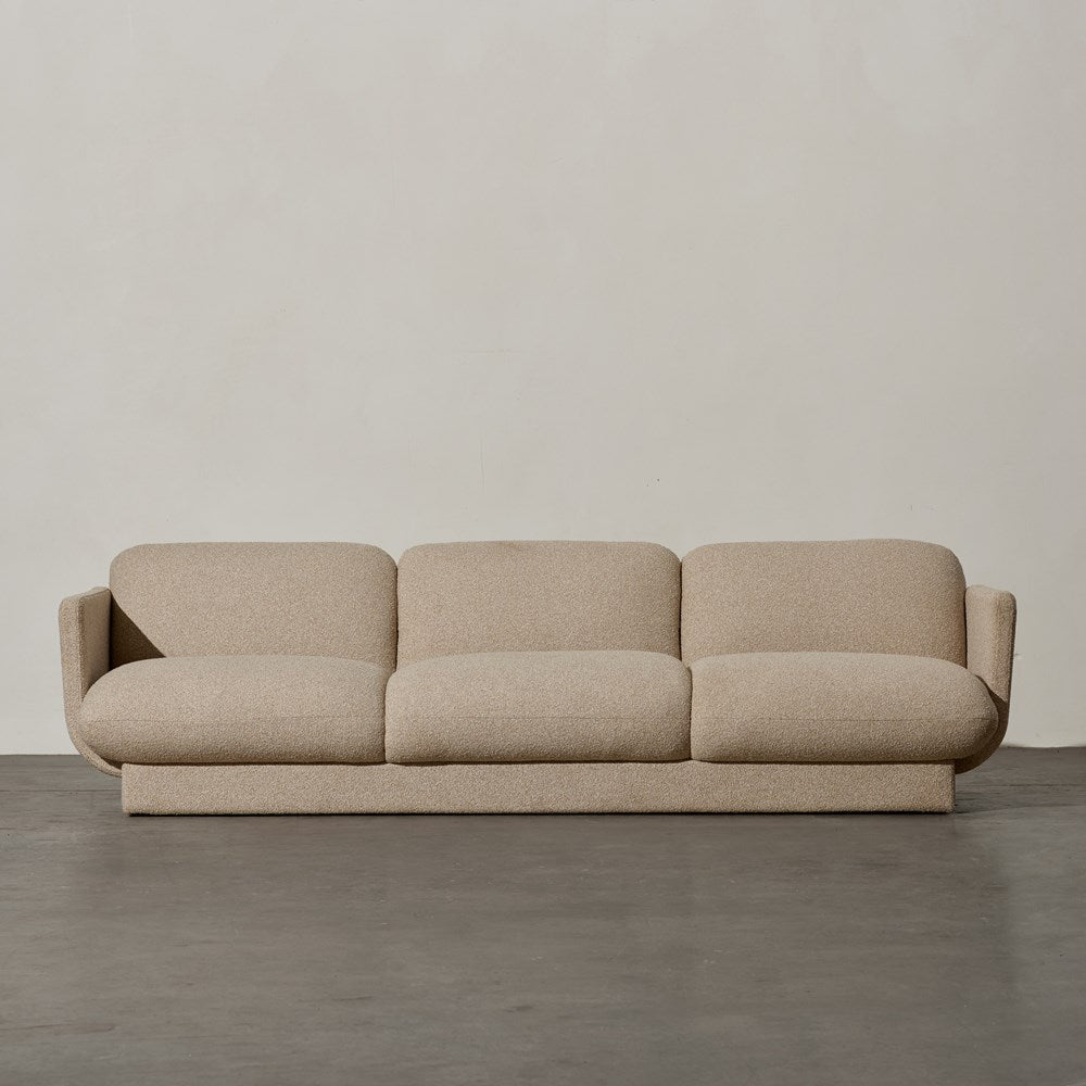 The Bonnie Sofa is a captivating lounge that combines modern design, comfort, and contemporary elegance. This three-seater sofa boasts a curvaceous form and stylised silhouette, making it the perfect centrepiece for your living room. Wrapped in a boucle style fabric, this sofa showcases premium upholstery that exudes luxury and sophistication. The textured surface adds visual interest, while the plush feel of the seat cushions invites you to sink in and relax. The Bonnie Sofa's high-quality construction ensures durability and long-lasting comfort. Not only does the Bonnie Sofa stand alone as a statement piece, but it also pairs seamlessly with the Bonnie Chair. Together, they create a cohesive seating arrangement that enhances the overall aesthetic of your living room.