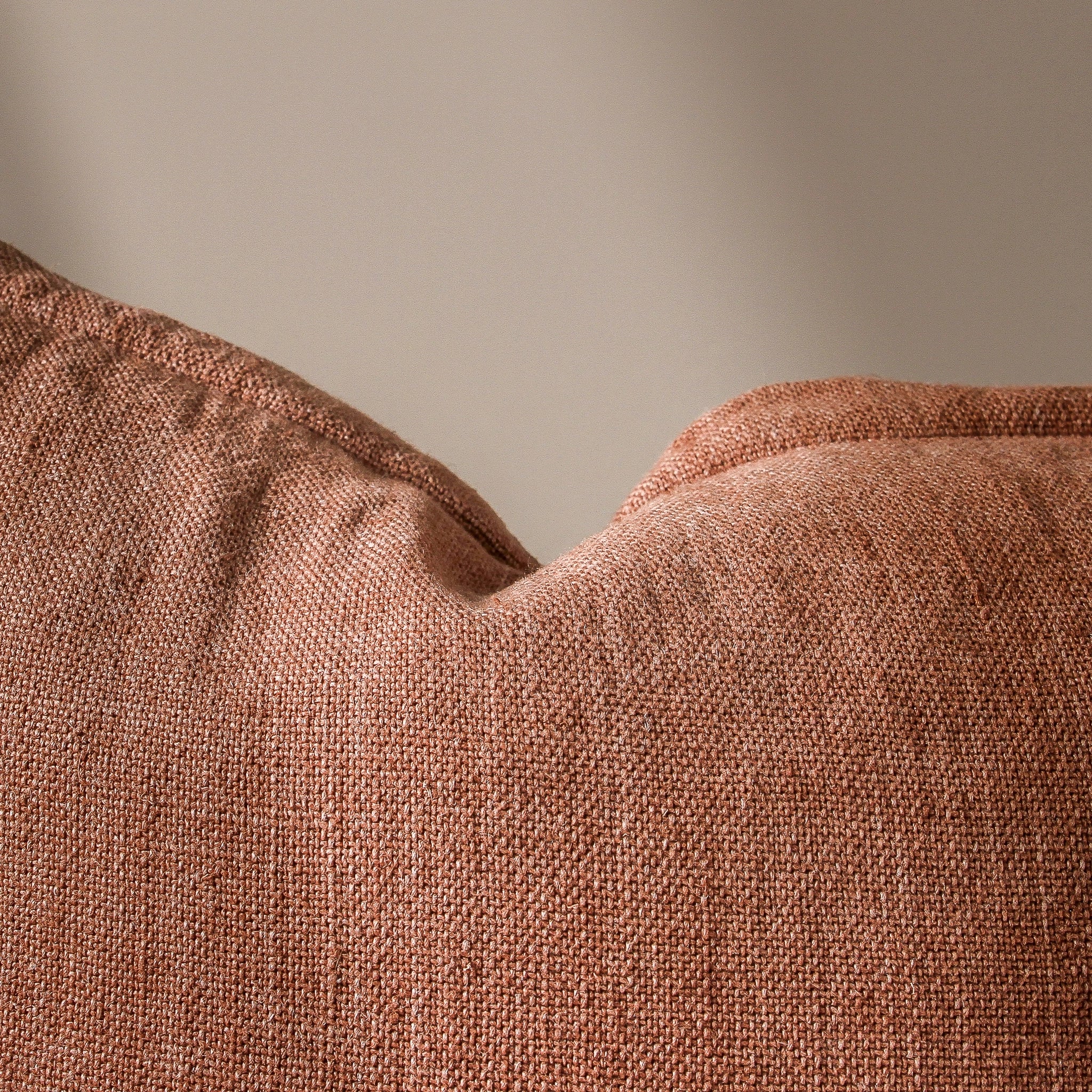Pair this earthy café tone with crisp white bedding or let it ground a collection of jewel-toned velvets — the heavyweight linen holds its own against richer textures while bringing warmth to any composition.