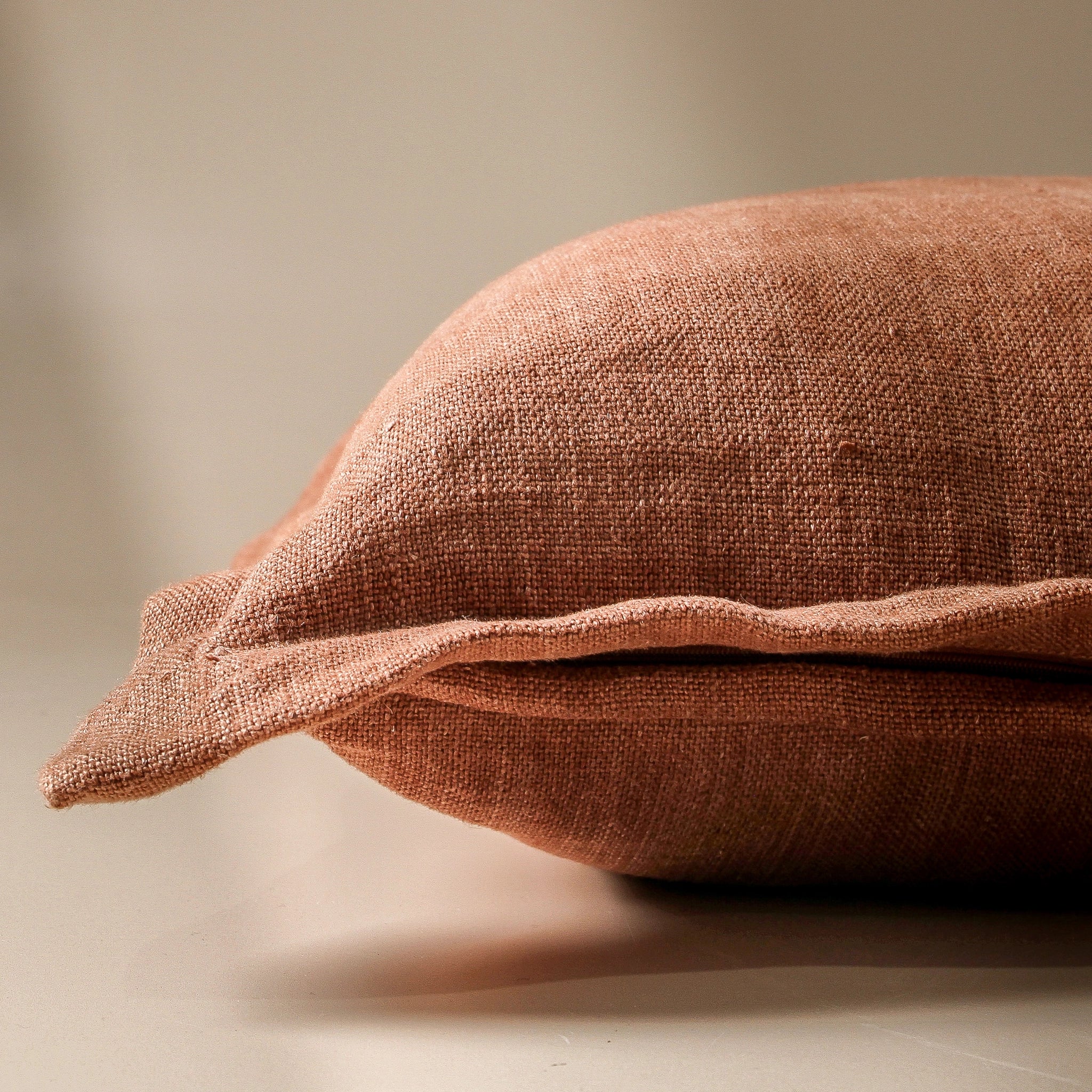 This hand-loomed linen cushion brings the raw beauty of artisan weaving to contemporary interiors. Woven by skilled craftspeople in India from heavyweight European linen, each piece carries the subtle imperfections that speak to its handmade origins. The relaxed Oxford edge softens the structured square, creating texture that invites touch.