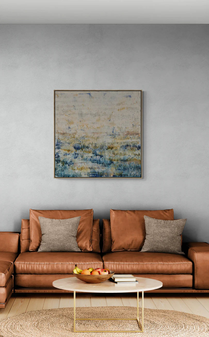 Castaway reflects the beauty of being adrift — suspended between surrender and discovery. Through layered tones and flowing movement, the painting evokes solitude, resilience, and the quiet peace that comes from letting the current guide you.