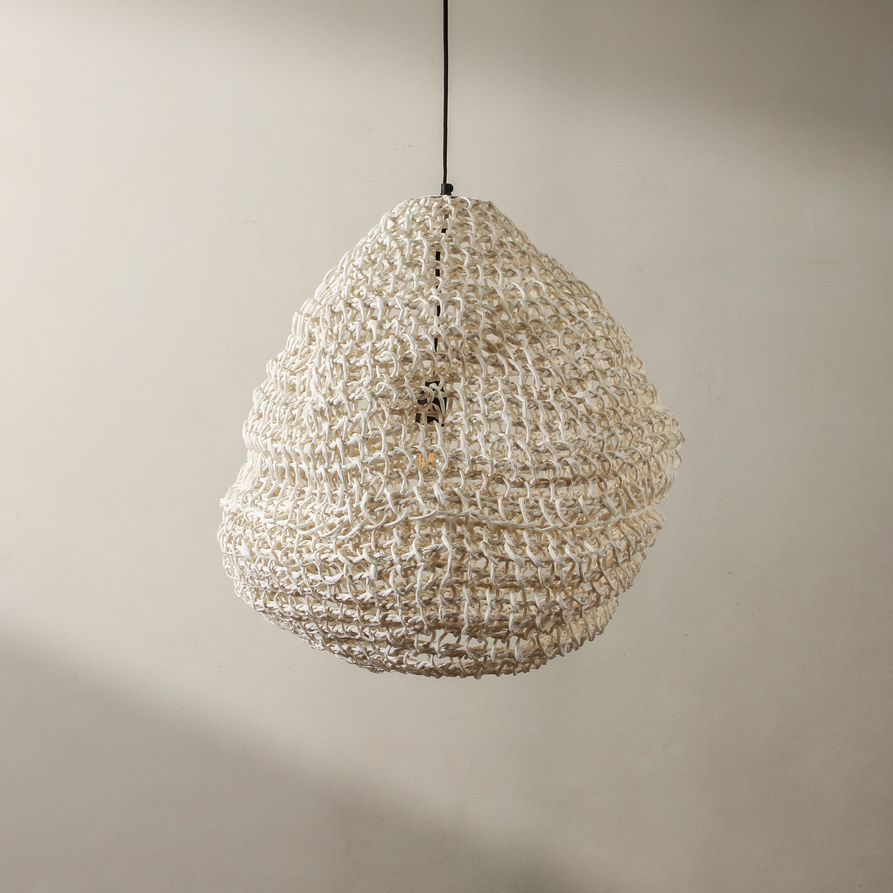 The Chrysalis Pendant echoes the delicate architecture of nature — its oversized, rounded form is soft and asymmetrical, like a seed pod caught mid-transformation. There’s a sense of movement in its stillness. Ideal above a dining table or suspended in a stairwell, Chrysalis brings a poetic softness to interiors. We love it in textural spaces with limewashed walls, curved furniture, and a palette of warm neutrals.