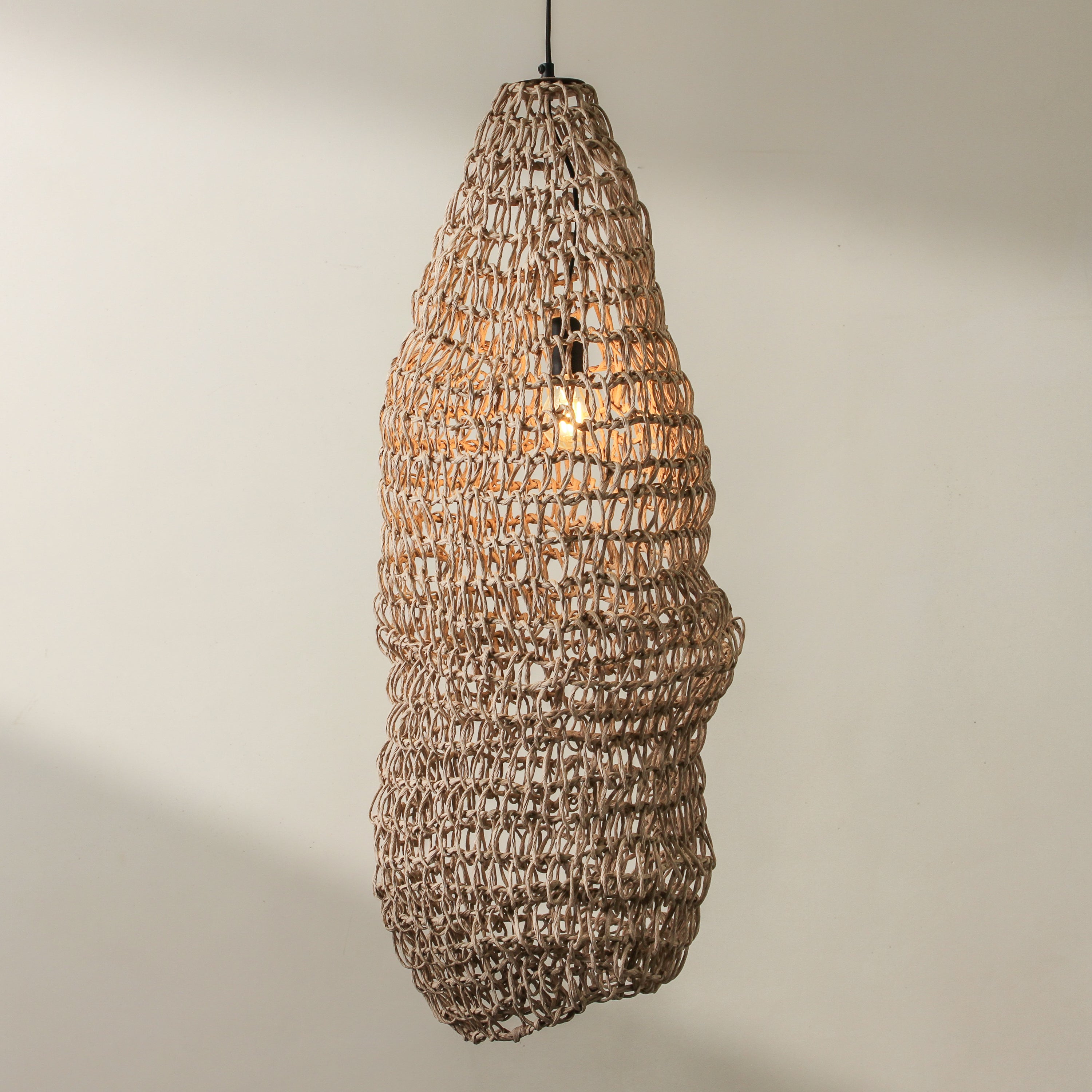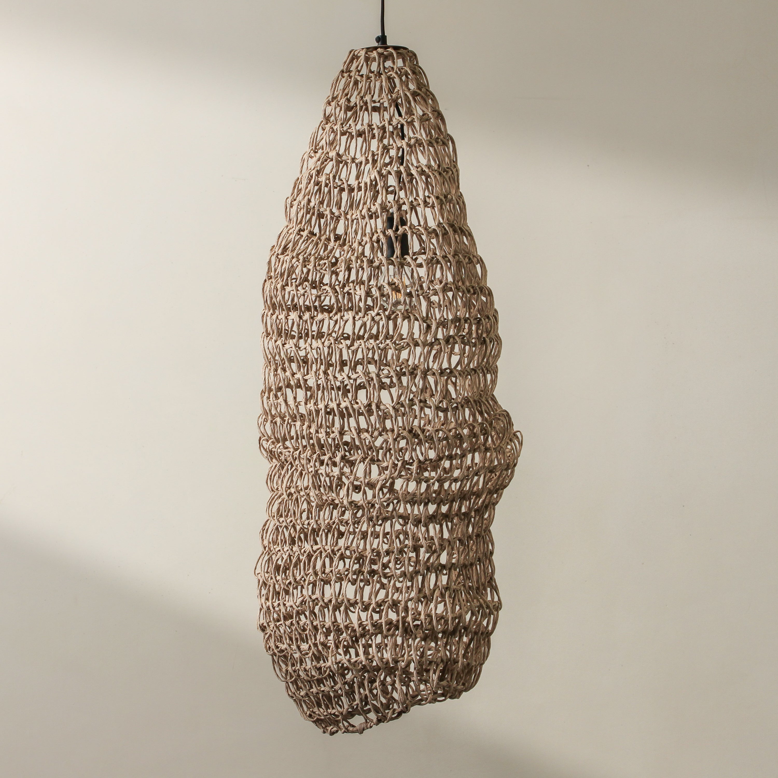 The Cocoon Pendant is a sculptural interpretation of shelter — elongated and organic, with a softly irregular silhouette that feels drawn from the natural world. A true statement piece, it works beautifully suspended in a stairwell, layered with other organic pendants from the Tender Forms collection, or placed solo in a quiet corner to create a sense of gentle enclosure. With its airy construction and thoughtful scale, Cocoon brings soul and softness to contemporary interiors.