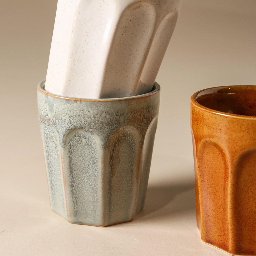 Crafted with an eye for harmony and style, this set has been handpicked by our stylists to bring warmth and balance to your daily coffee ritual. Featuring Turmeric, Biscuit, Off White and Seamist, the collection combines earthy vibrancy with soft neutrals for a palette that feels both grounded and uplifting. Each cup is handmade and finished in reactive glazes, ensuring no two are ever the same. A thoughtful set, ready to elevate every sip.