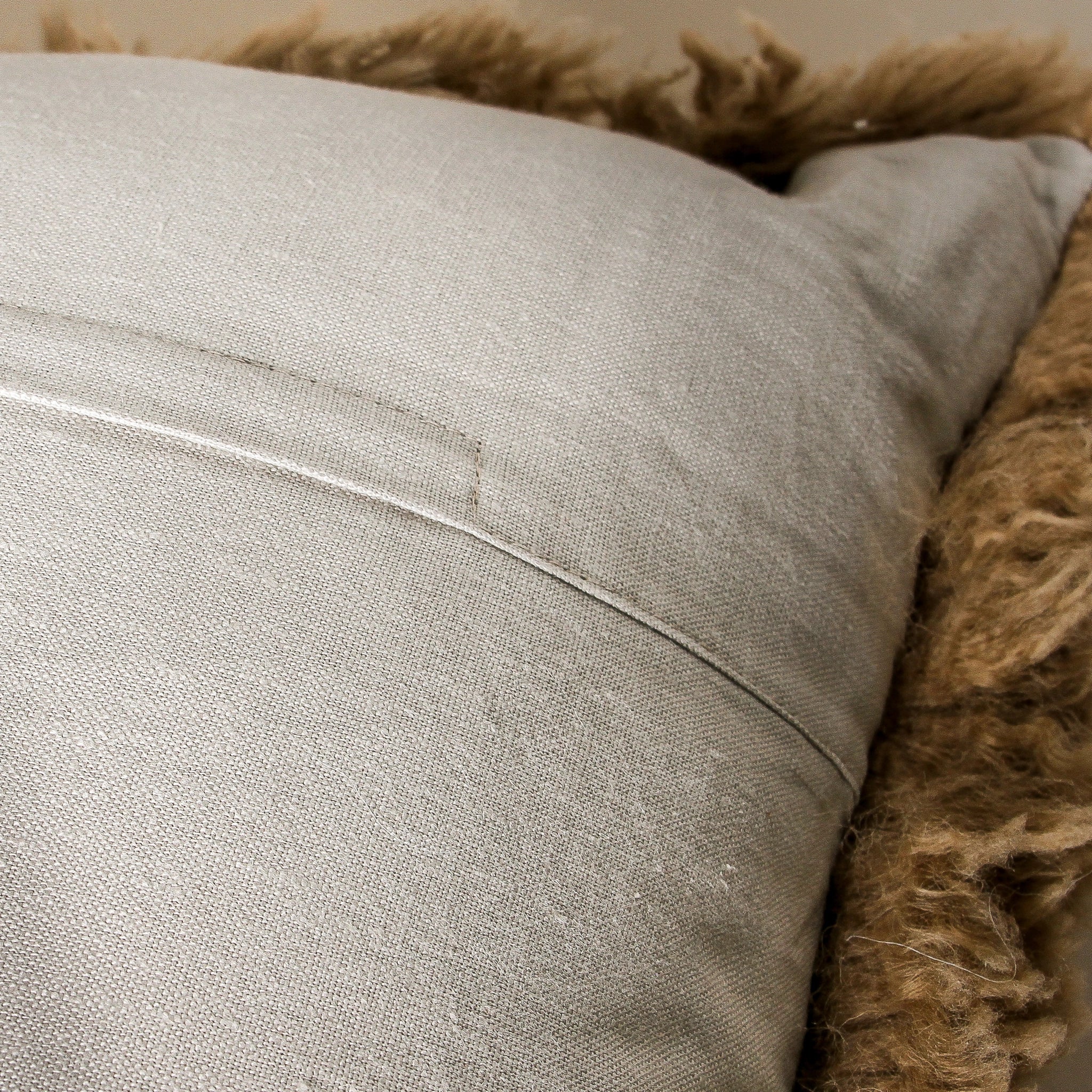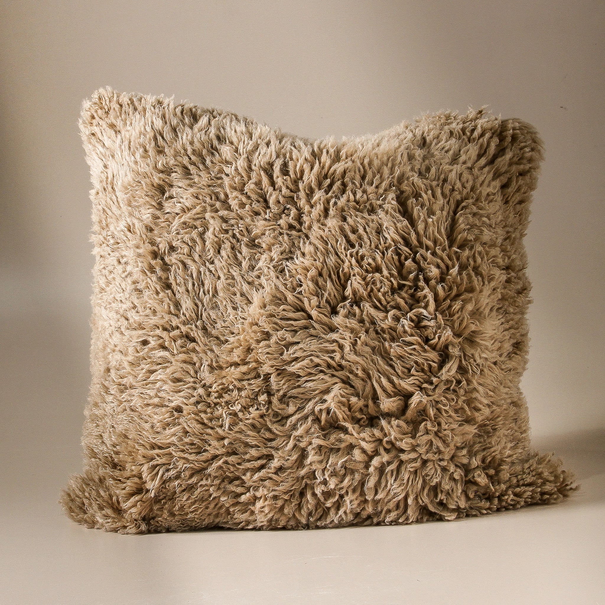 New Zealand Curly Long Wool Sheepskin Cushion with zipper, 100% polyester cushion inner, flax linen backing.