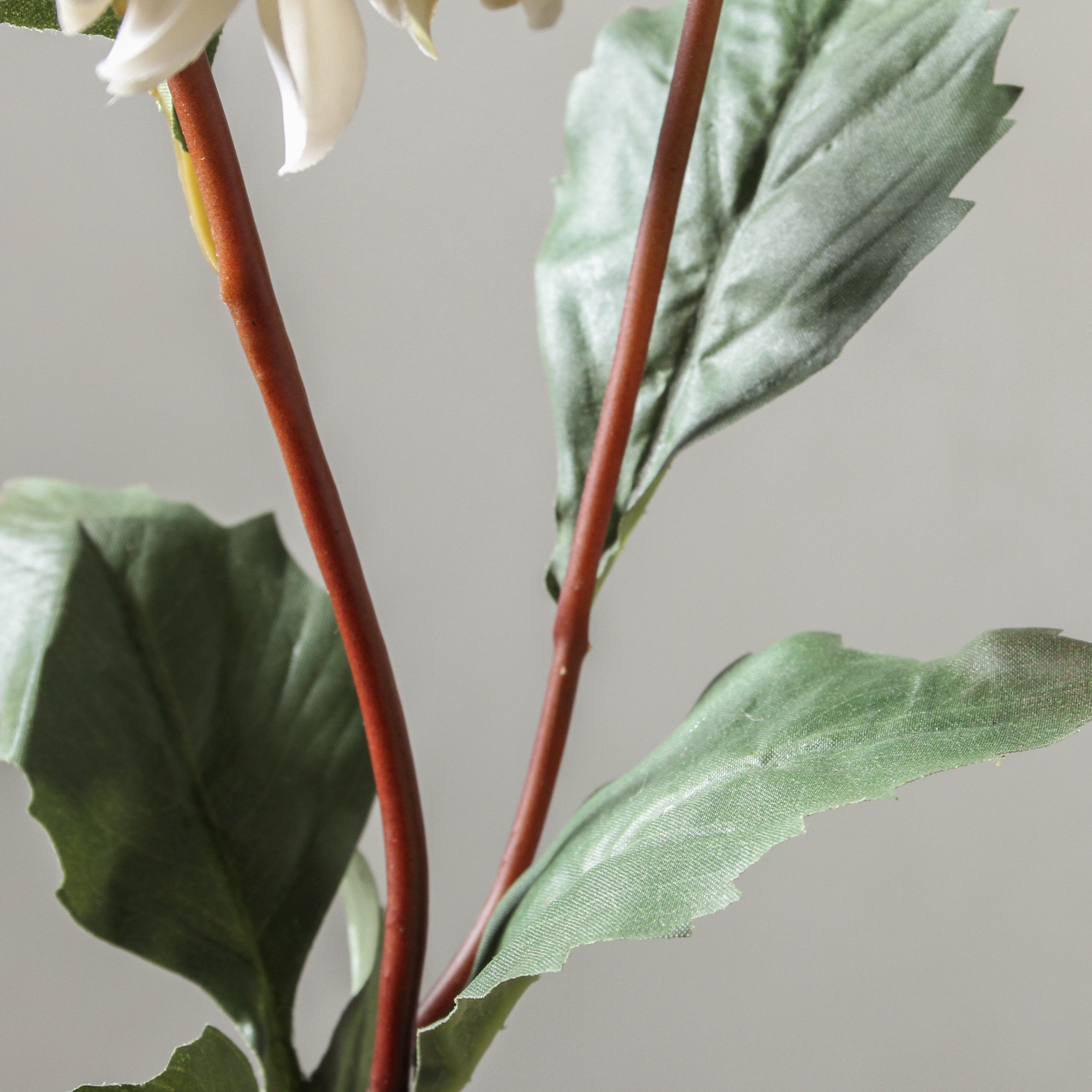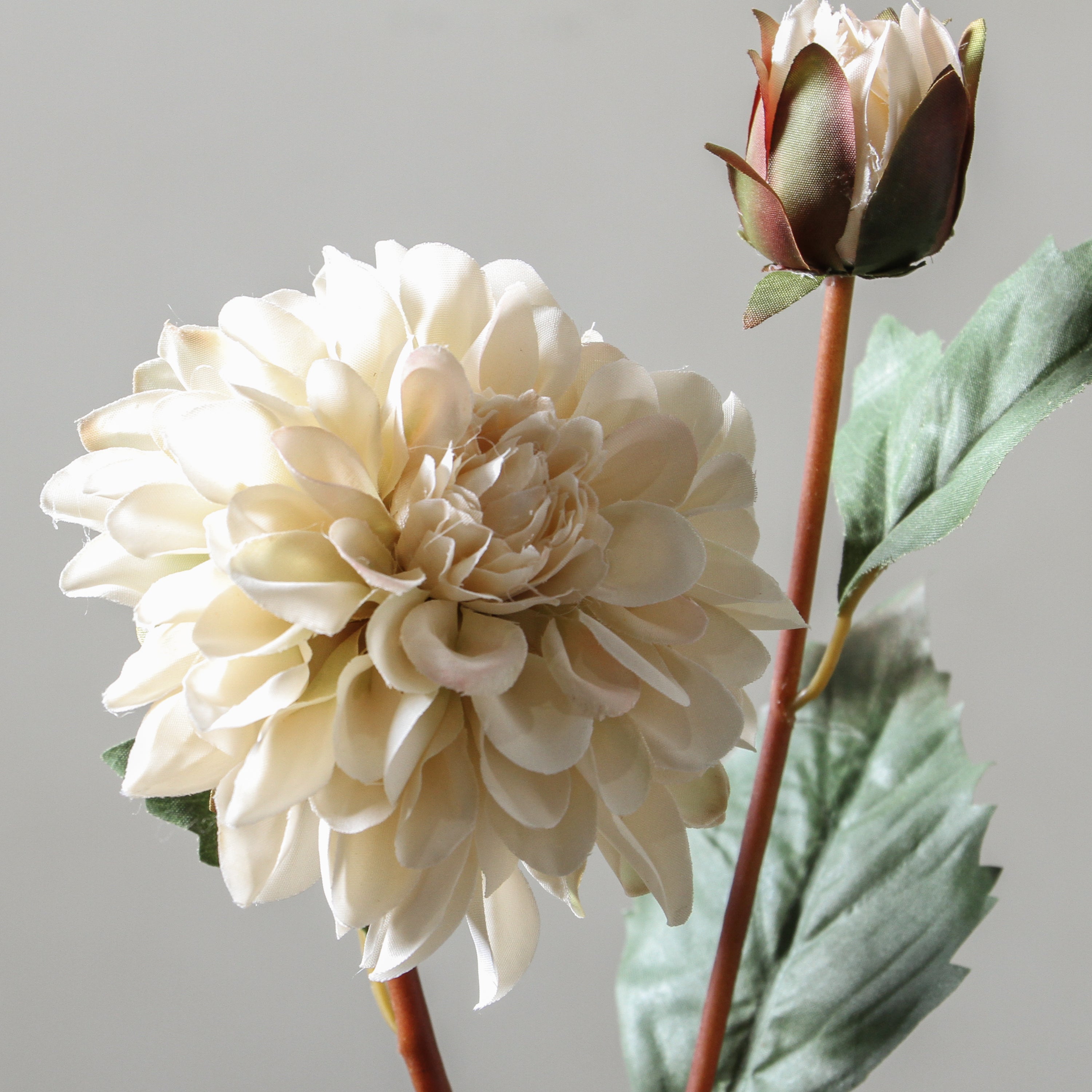 Presenting our white Dahlia that captures the lush texture and full-bodied shape of this beautiful bloom, making it a striking addition to any floral arrangement. The soft, layered petals are crafted to bring out the flower's distinctive form, while verdant green leaves add depth and contrast. Perfect for creating a fresh look, this stem can be styled alone in a vase or incorporated into a larger display for a natural and inviting bouquet.