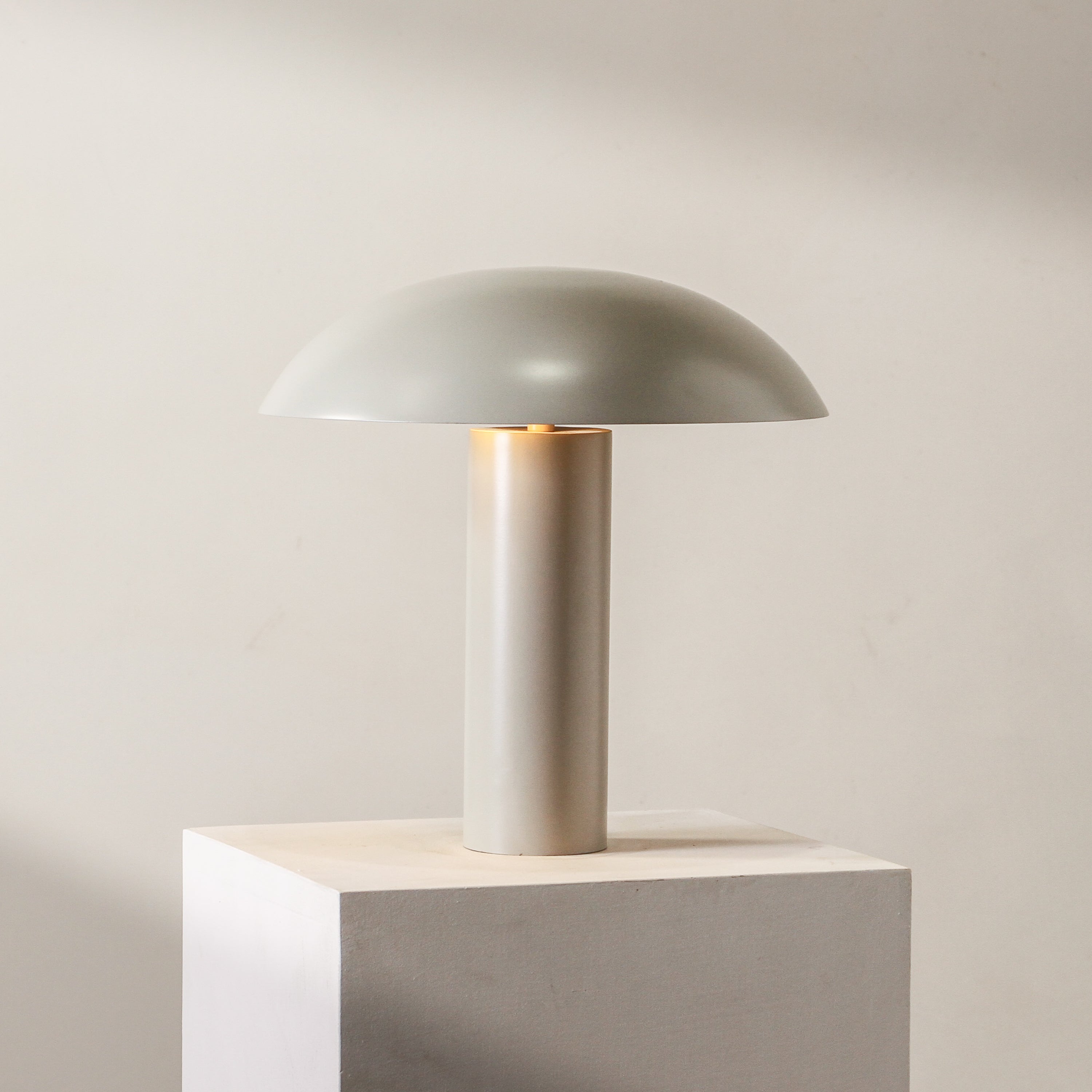 Minimal in form yet expressive in material, the Ember Table Lamp embodies a modern, softened geometry. Crafted entirely from metal with a satin finish, it features a slender columnar base and a shallow dome shade, drawing subtle inspiration from mid-century mushroom silhouettes. Available in Sage Green or Taupe, the muted palette grounds the piece with an earthy, tonal elegance.