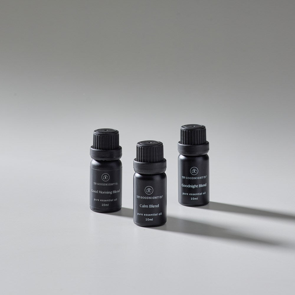 The Goodnight Co. Essential Oil Trio Kit contains all three essentail oil blends: Goodnight, Good Morning and Calm