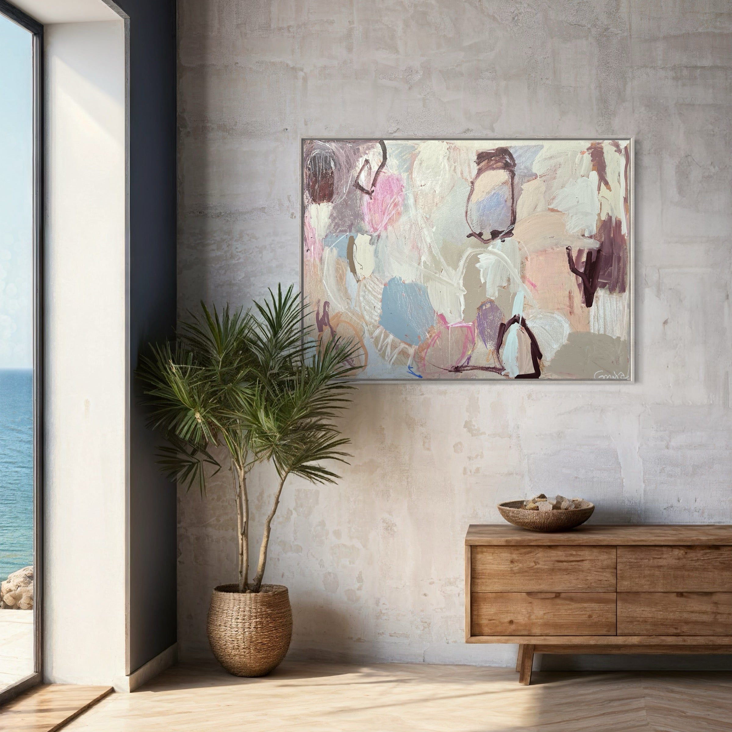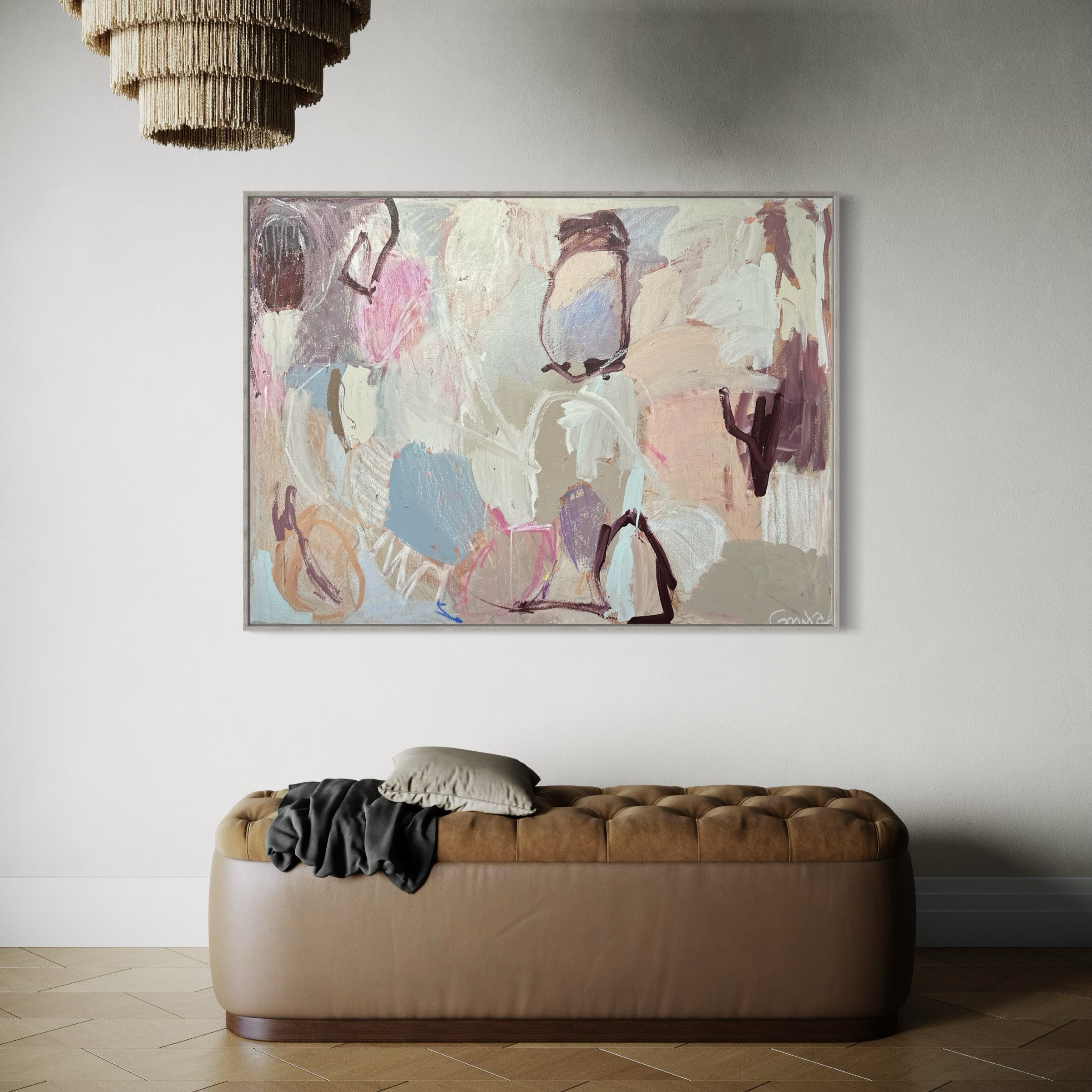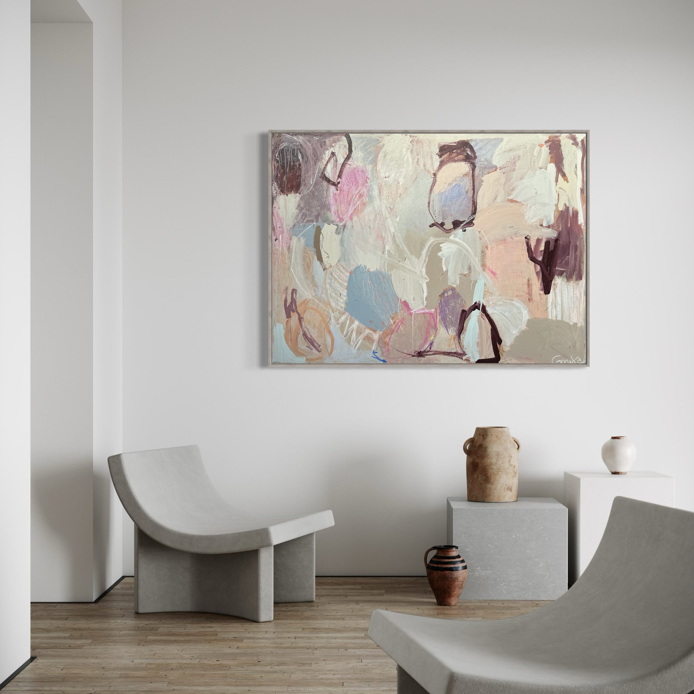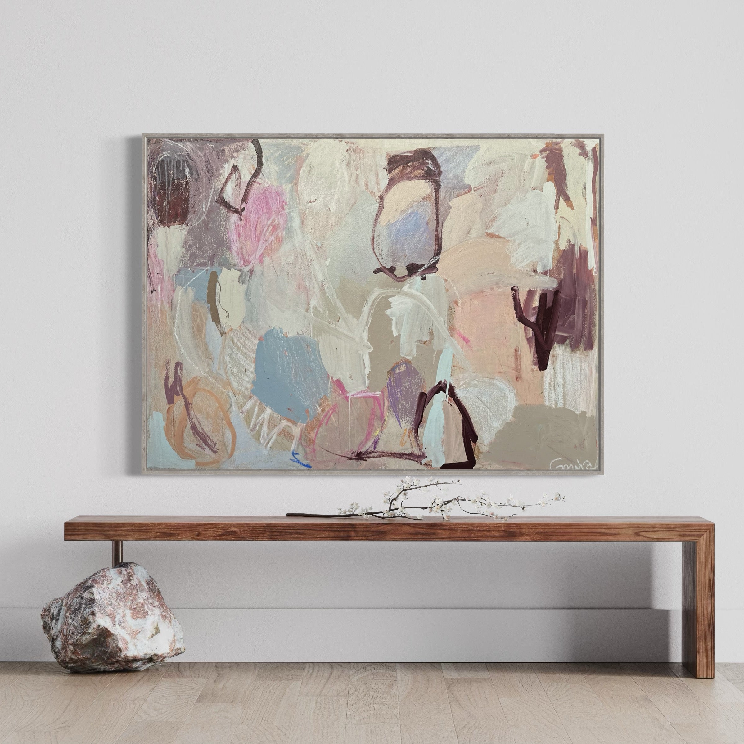 Evanescence abstract painting creates a sense of movement, where the darker strokes anchor the composition, while the softer hues seem to shimmer and fade into the background. The thick, expressive brushwork adds a sense of depth and intensity, yet the overall effect remains one of fleeting beauty, as if the painting itself is on the verge of dissolving or transforming. This balance of boldness and softness evokes both the strength and fragility of something transient.