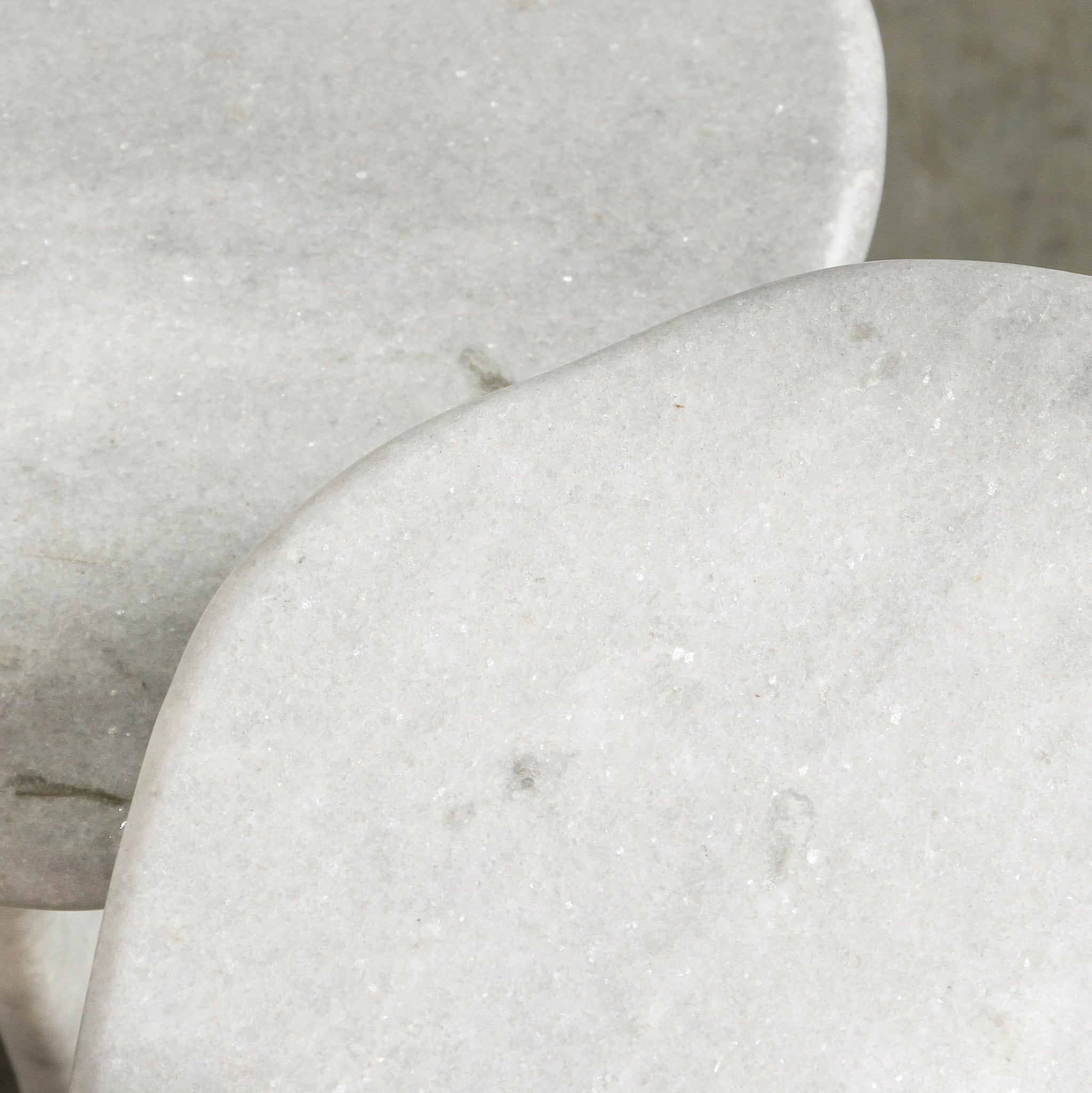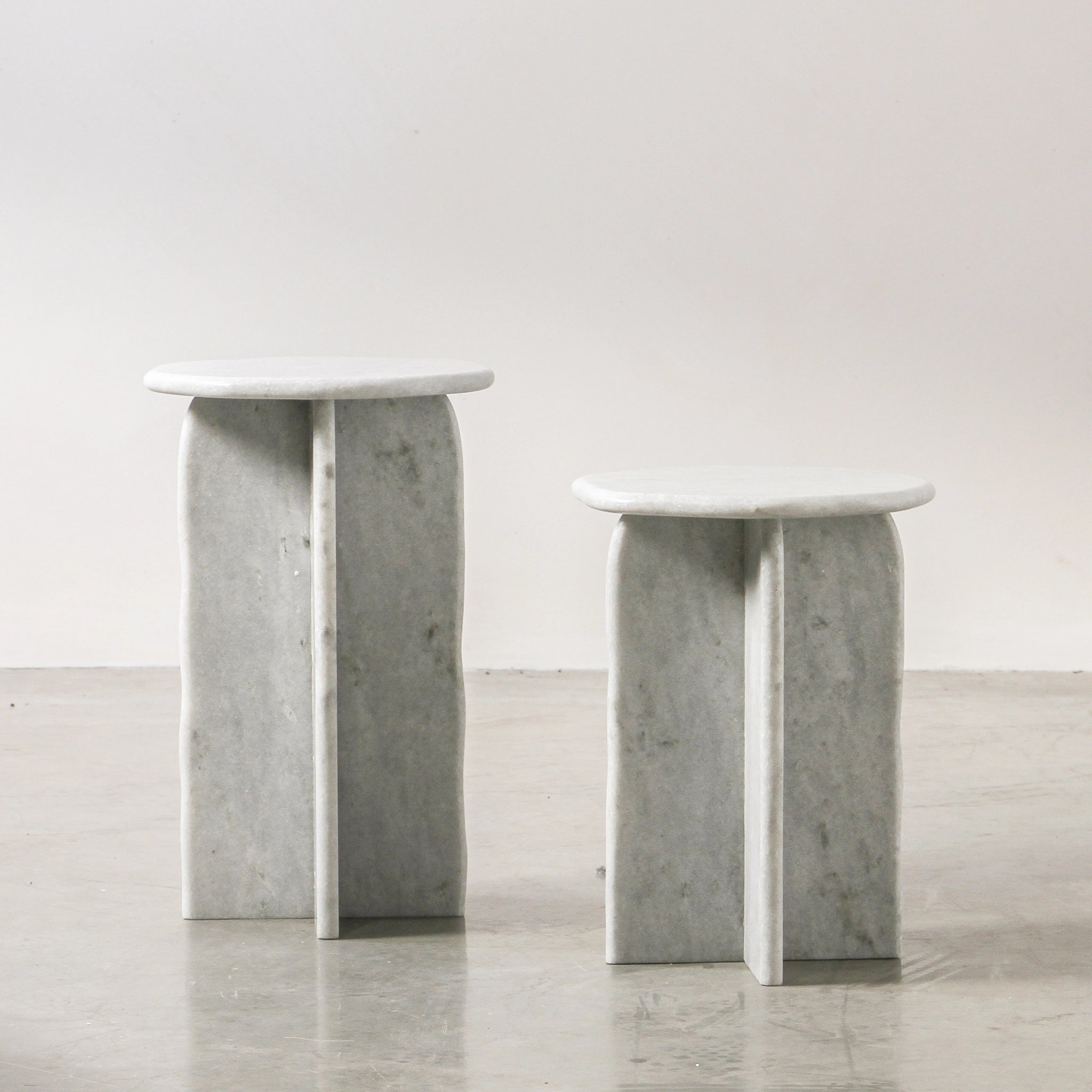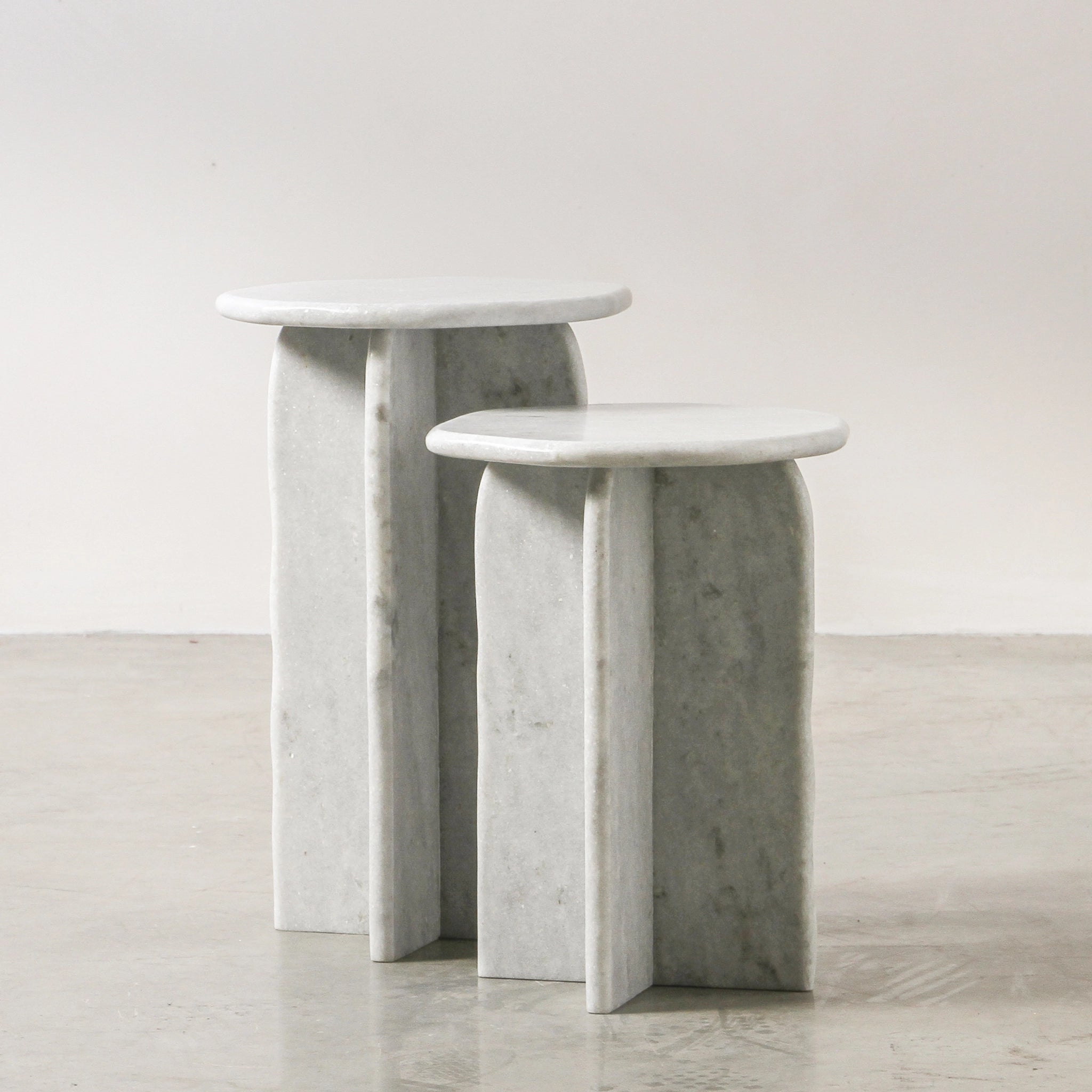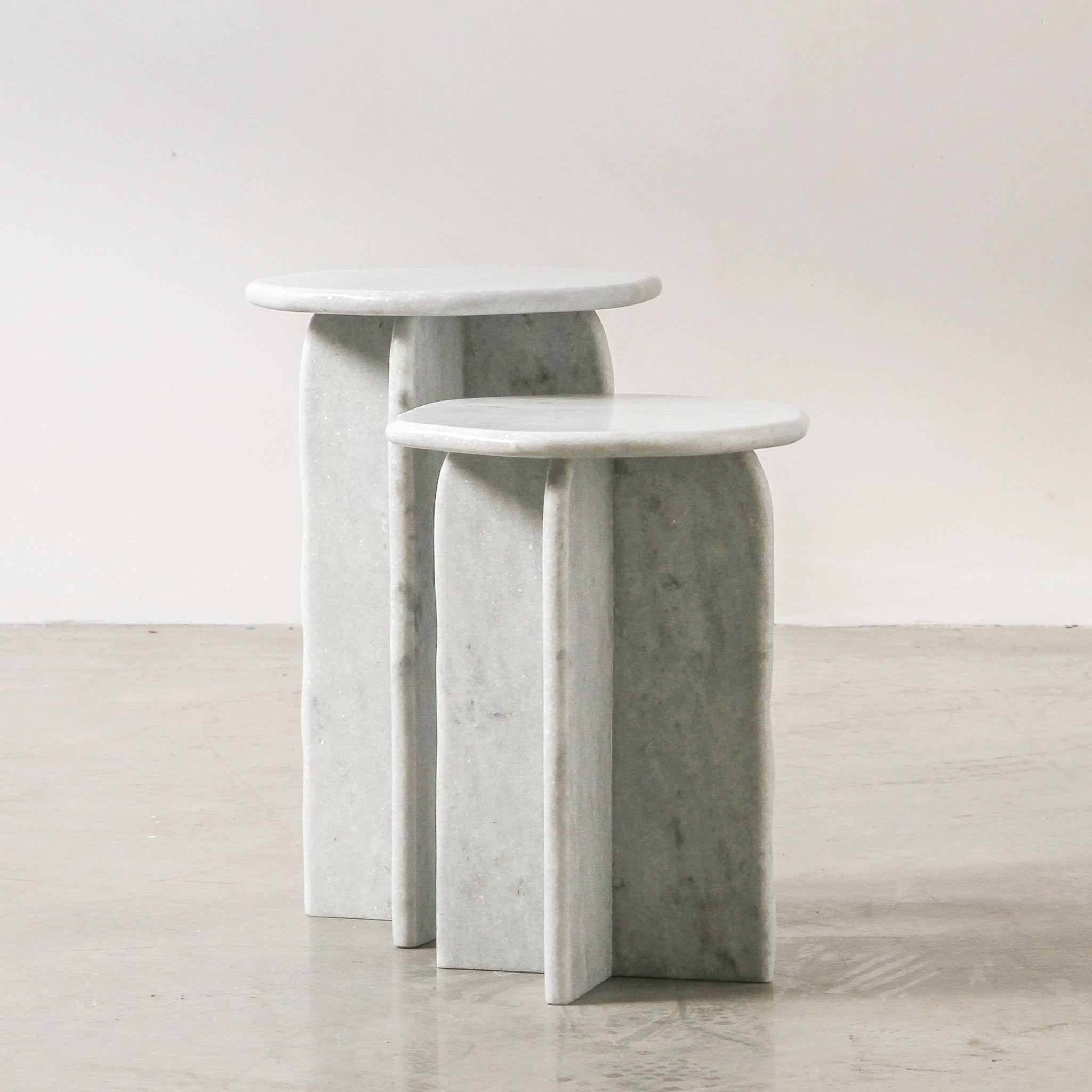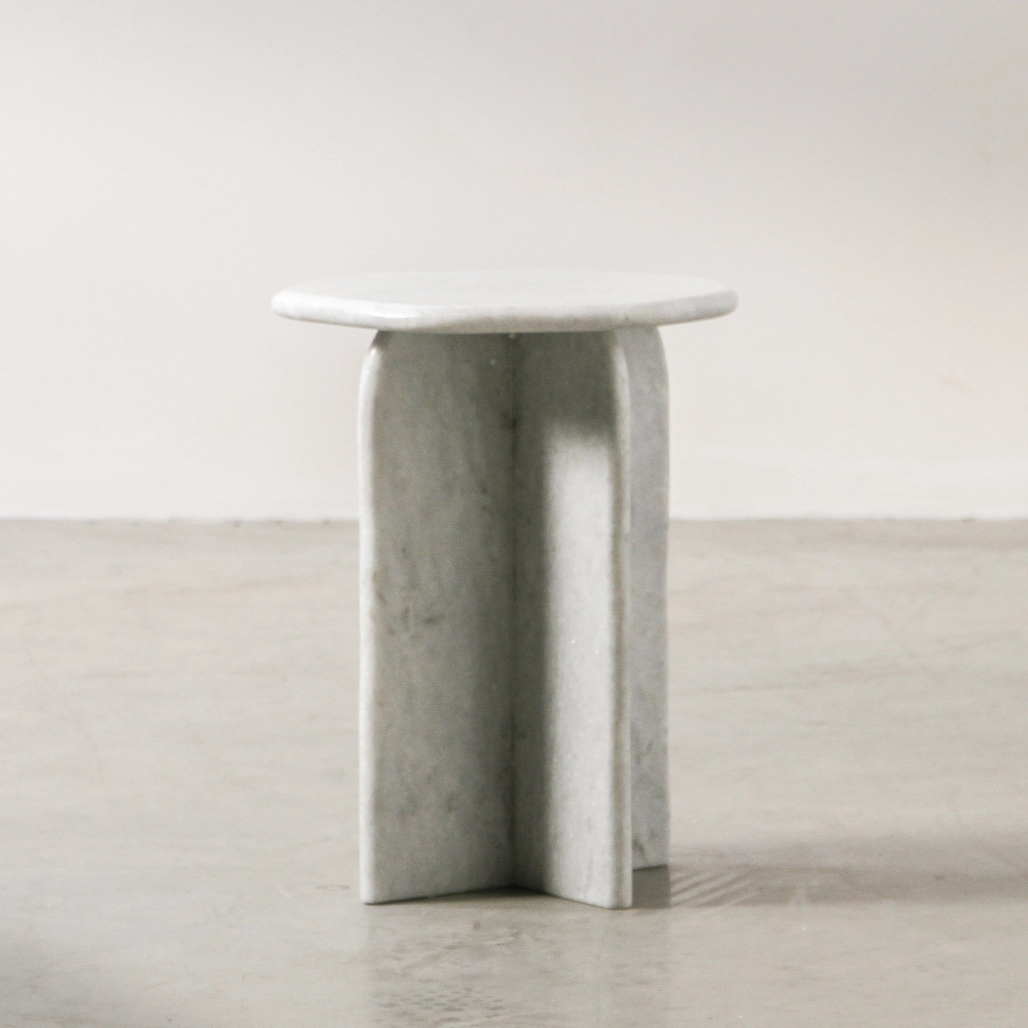 Light in name but grounded in essence, the Float Side Table is a study in contrast — sleek, monolithic forms softened by subtle veining. Hand-cut from Vaila White Marble, its short profile adds sculptural calm to any space.