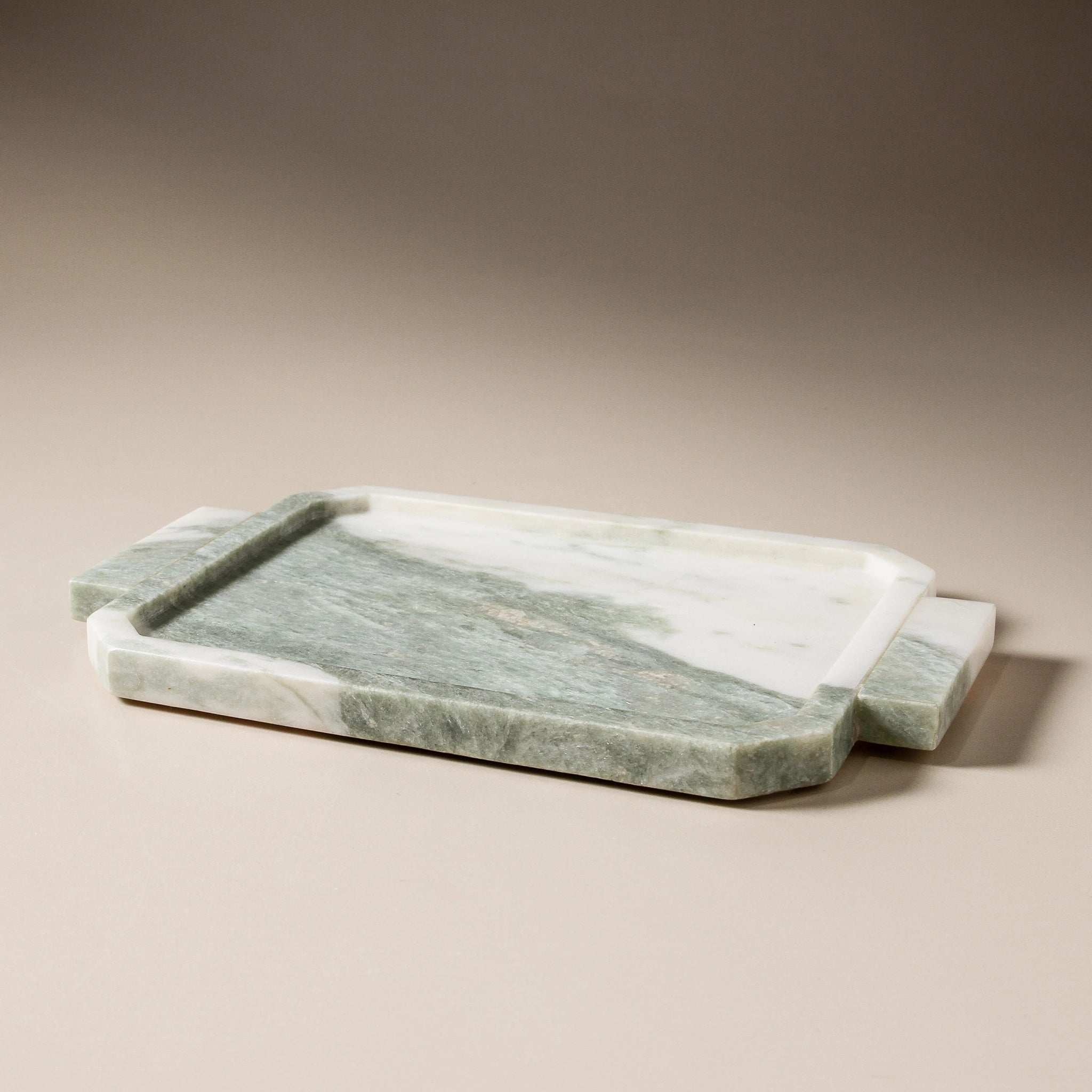 The Idyll Tray invites stillness — a moment of calm rendered in Green Onyx Marble. Soft hues of jade and cloud swirl across its surface, like mist over a tranquil landscape. Both grounding and ethereal, it is a functional sculpture for spaces that honour beauty in the everyday.