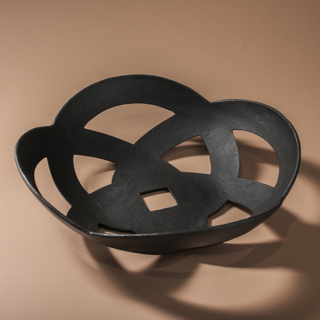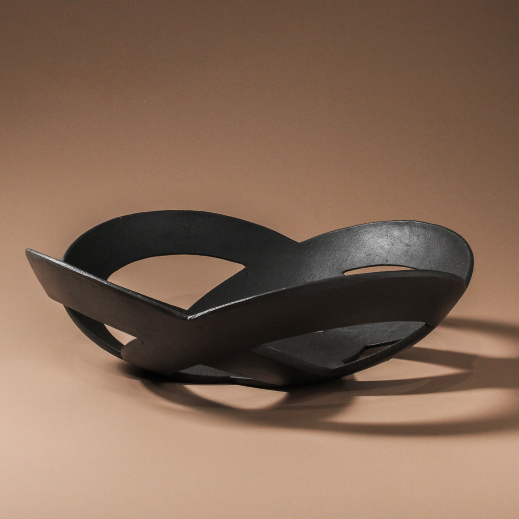 Our metal Infinity Black Bowl is a striking statement piece, designed to captivate with its fluid, organic form. Crafted from high-quality metal, the bowl showcases sweeping curves and a soft, flowing movement that embodies the infinite. Its sculptural design adds a dynamic visual element, making it an ideal centrepiece for a dining or coffee table. Perfect for those who appreciate modern design, this bowl brings a sense of organic artistry and movement into your home.