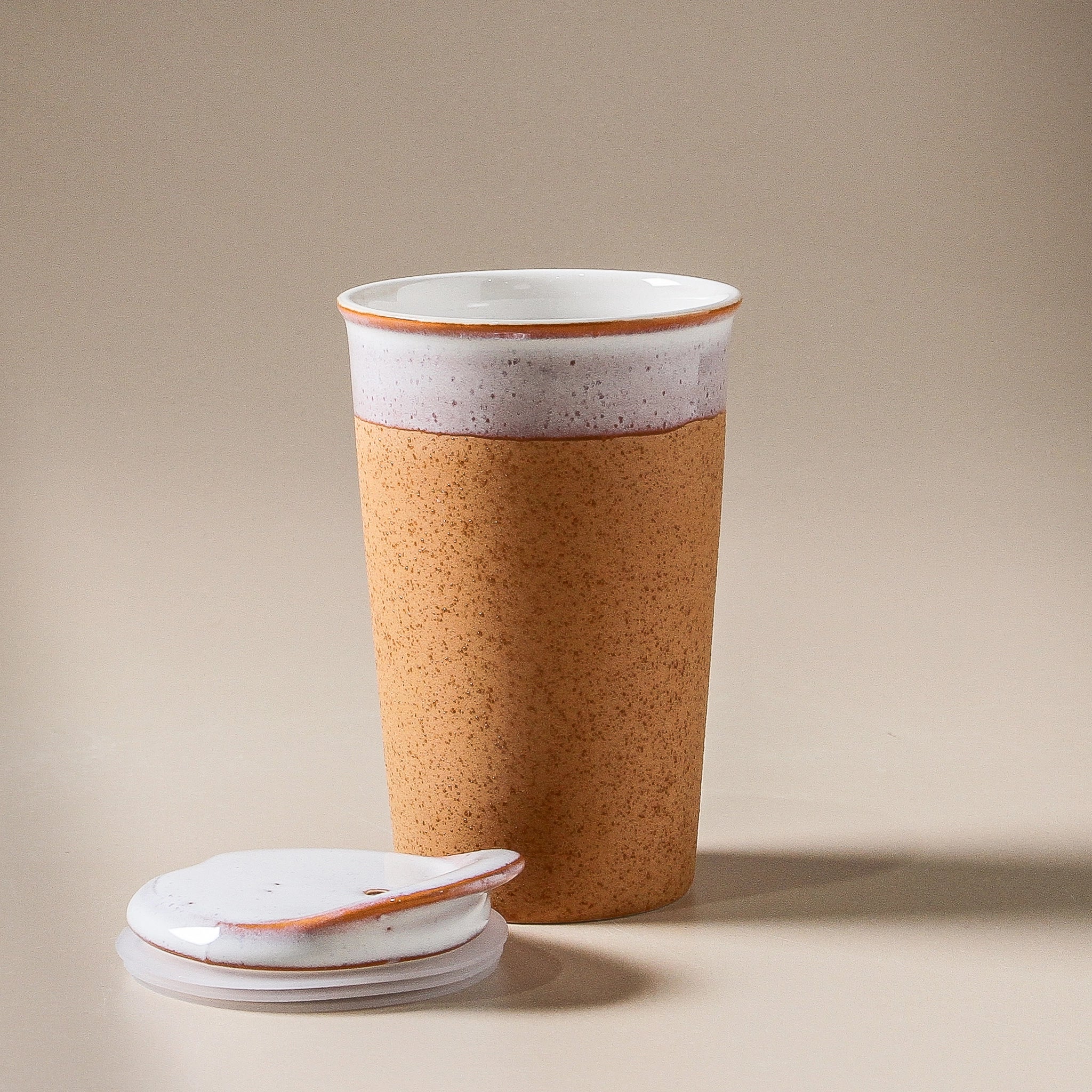 Featuring a double-walled design to keep your drink hotter for longer, and a sealable ceramic lid for convenience, each cup is both functional and stylish. As a handcrafted piece, natural variations are to be expected — and celebrated — making every cup uniquely yours.