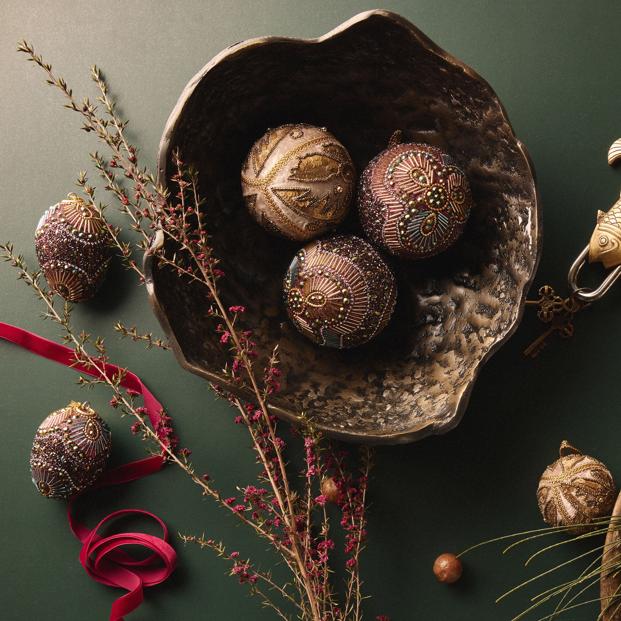 The Juniper Decoration is a breathtaking bauble that dazzles with its stunning shades of purple and pink. Hand-crafted with attention to detail, this ornament features gold finish beads that add a touch of vintage charm. The shimmering beads enhance its luxurious feel, creating a captivating interplay of colours and textures.