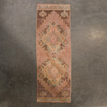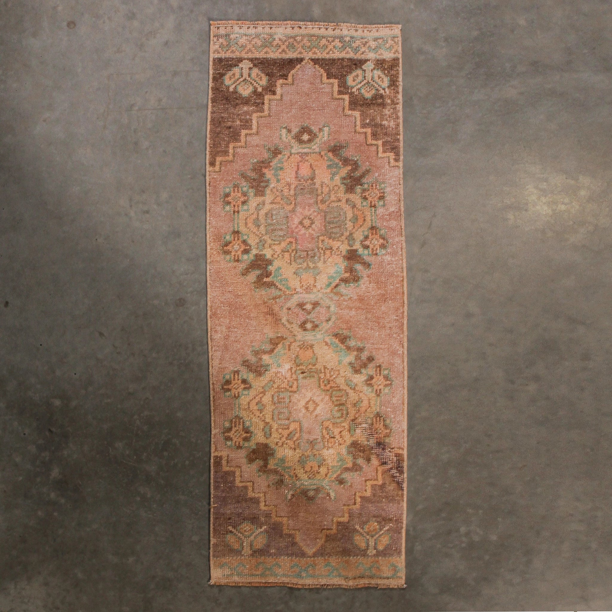 The Kaya Vintage Anatolian Rug is a slender, hand-knotted piece made 40–60 years ago in Turkey. With its unique size, it fits beautifully in narrow spaces such as hallways or by the bedside, adding a grounding touch of history and craft. Its wool and cotton blend ensures a balance of softness and resilience.