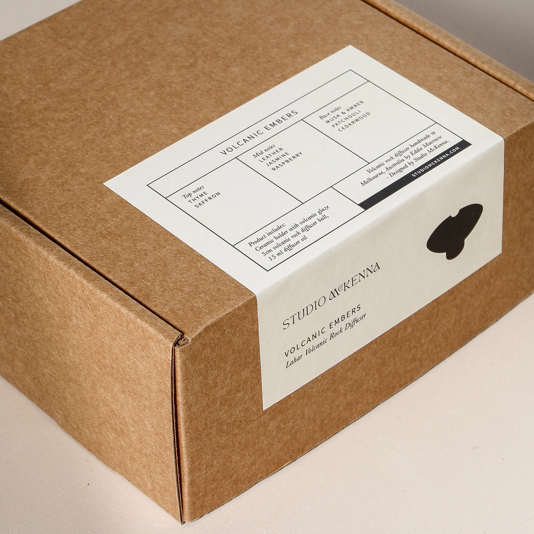 Our Lahar Scented Diffuser combines the raw beauty of volcanic rock with a handcrafted ceramic tray, finished in a striking volcanic glaze. The fragrance opens with spiced thyme and saffron, leading into a heart of rich leather, jasmine, and raspberry. It settles into a smoky base of musk, amber, patchouli, and cedarwood‚ evoking the mystery and intensity of glowing embers against the night sky.