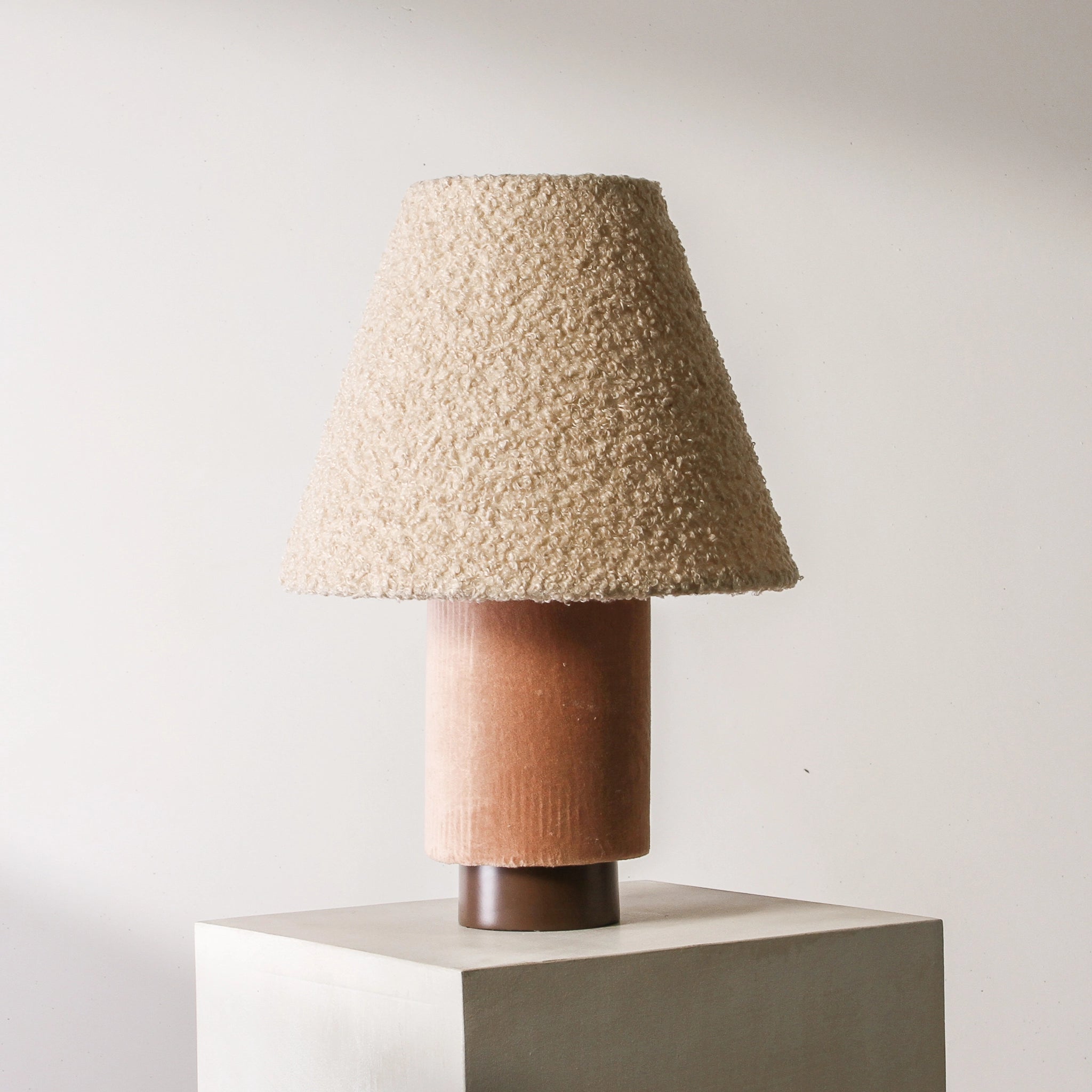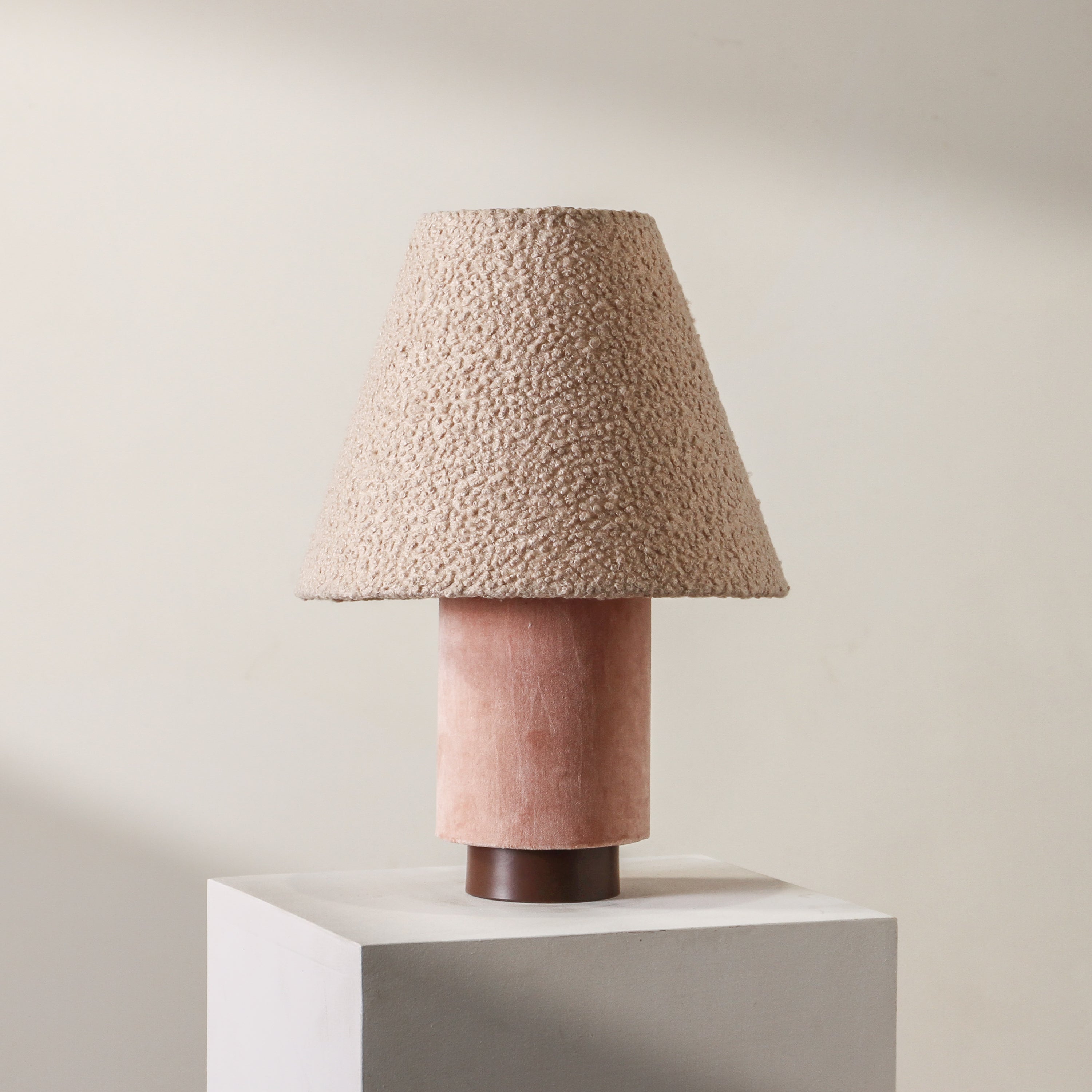 Tactile and tonal, the Leni Table Lamp brings together softness in both form and finish. The base is crafted from coral-toned velvet—rounded and warm—while the cylindrical shade is wrapped in a textured bouclé fabric that invites touch and adds visual depth. As part of Tender Forms, Leni reflects the collection’s ethos: sculptural pieces designed to live in harmony with natural light, touch, and time. Perfect for bedrooms, side tables or soft-toned interiors. Style alongside soft florals, textural ceramics, or books with muted covers. A beautiful way to layer light and comfort.