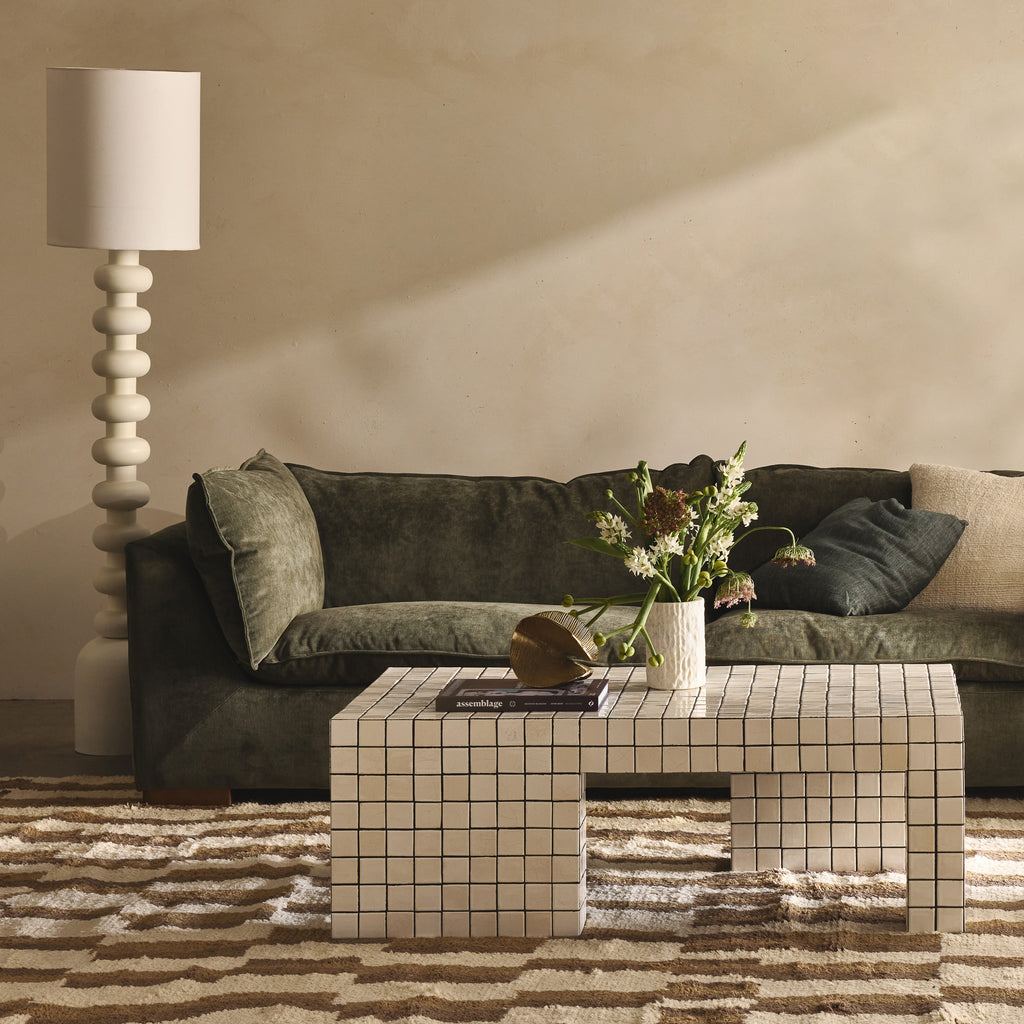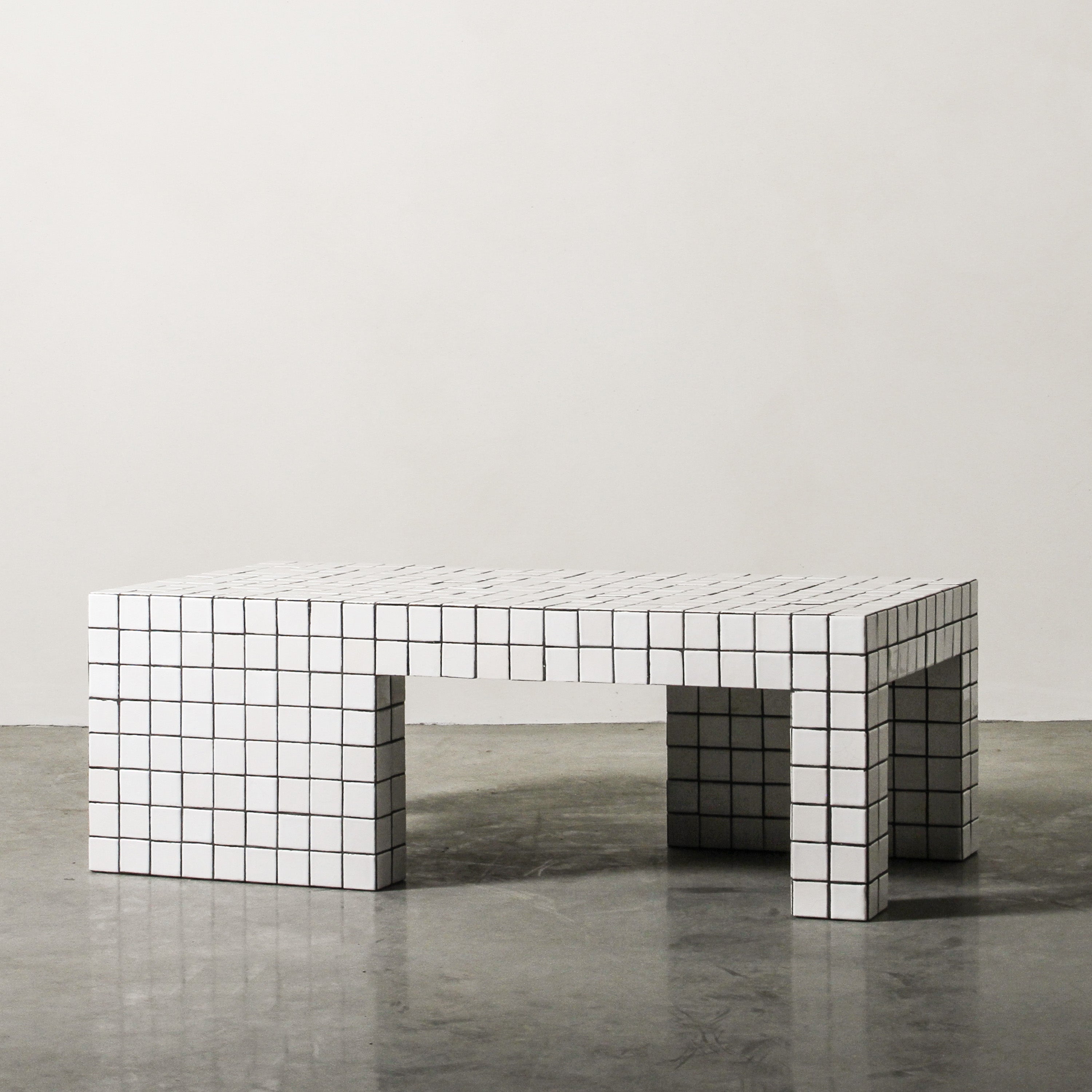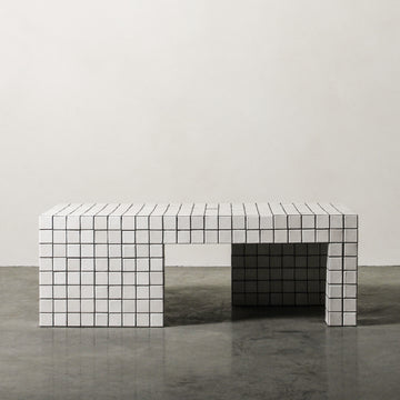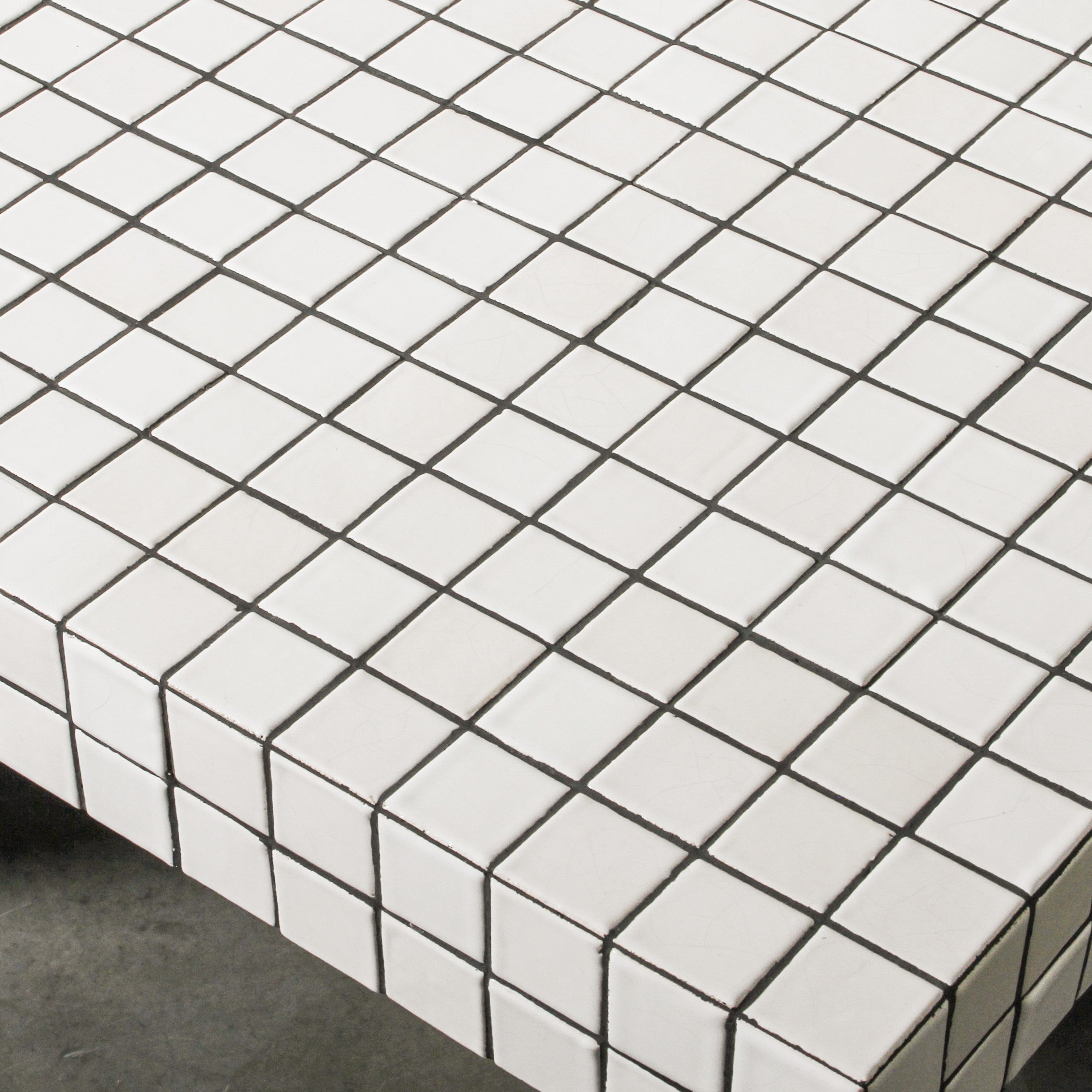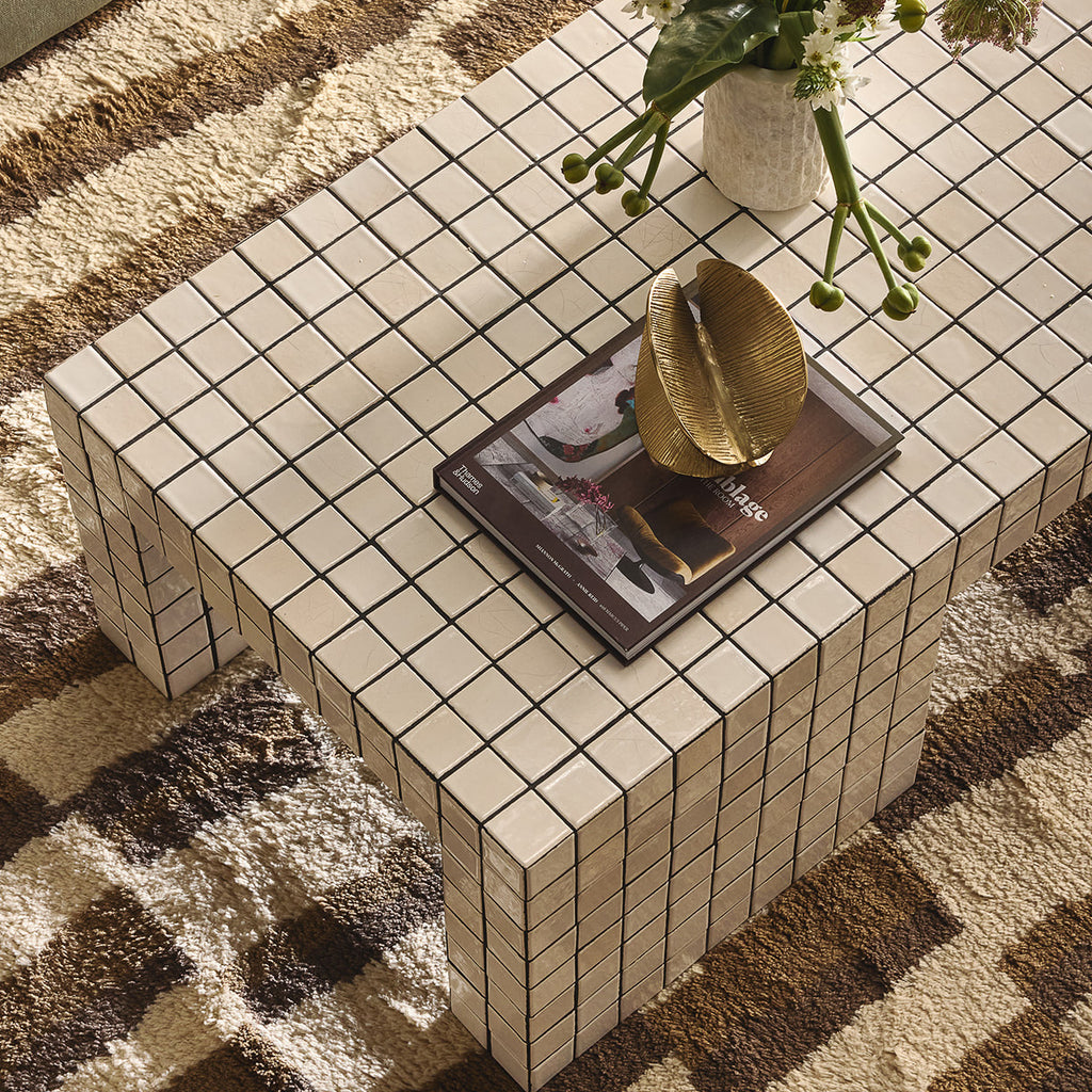 Our Lennon Coffee Table is a nod to retro nostalgia with a modern twist! This rectangle coffee table boasts a unique design with small square tiles, creating a playful and stylish mosaic effect. Crafted to elevate your living space, this tiled coffee table seamlessly merges retro charm with contemporary aesthetics. The Lennon Coffee Table is a sublime fusion of artistry and practicality. Crafted with artisanal skill using glazed ceramic tiles, this table emerges as an extraordinary work of art. With its mosaic design, the table effortlessly blurs the lines between art and functional decor, evoking a profound sense of visual intrigue. Lennon Coffee Table comes in two finishes, an Off-White tile with a matching grout and a White tile with a black grout for added contrast and dimension.