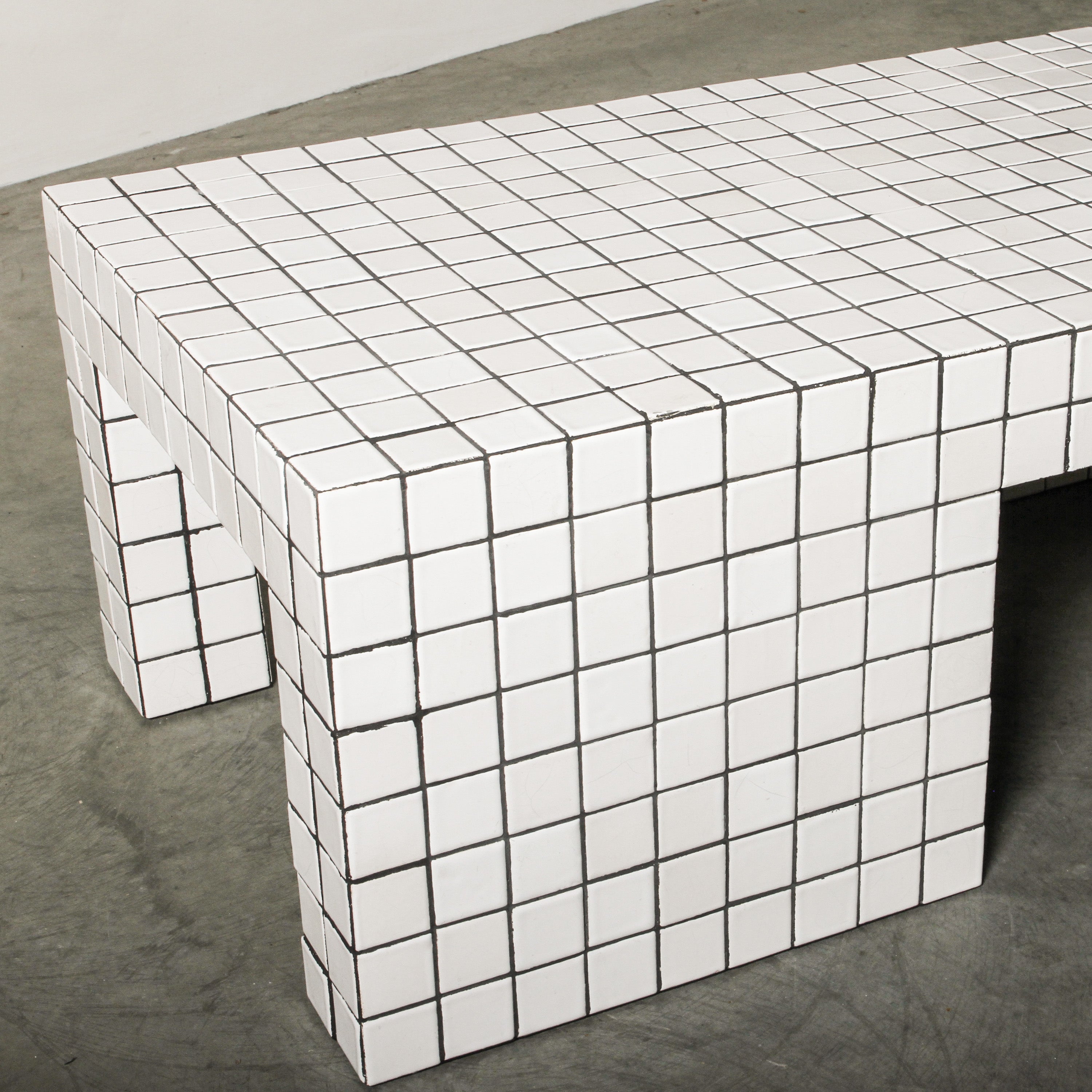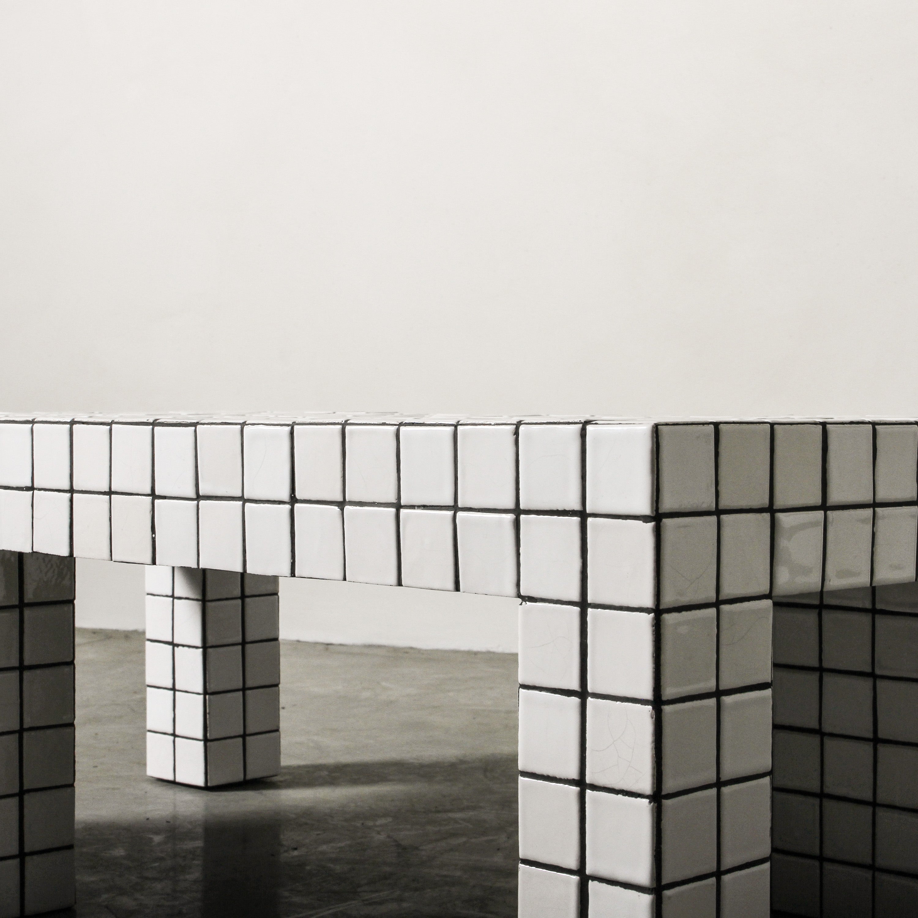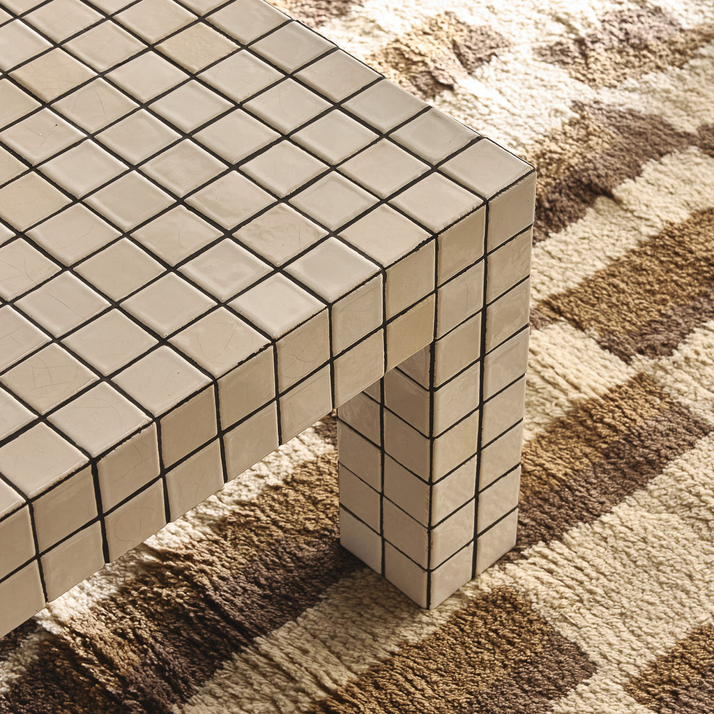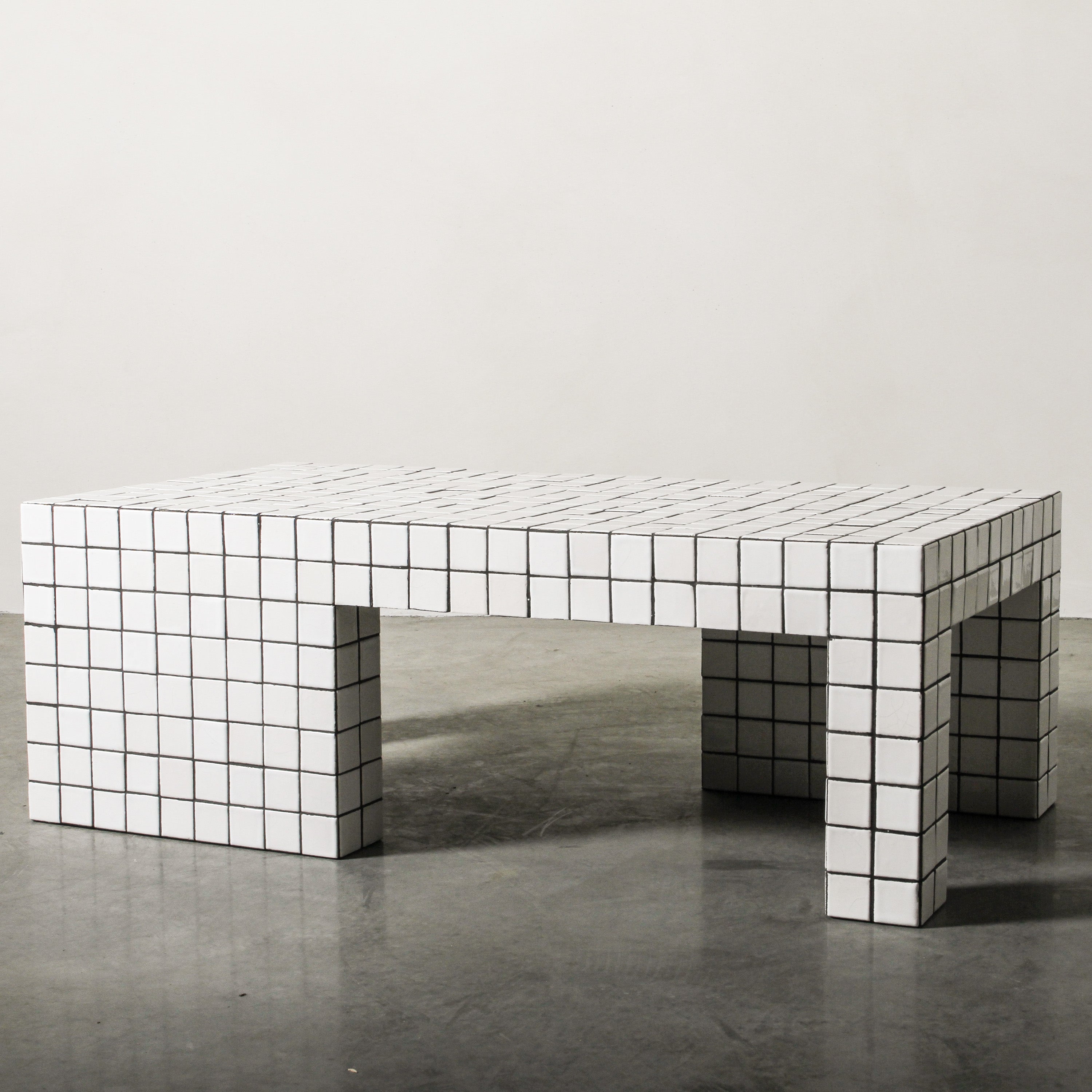 Our Lennon Coffee Table is a nod to retro nostalgia with a modern twist! This rectangle coffee table boasts a unique design with small square tiles, creating a playful and stylish mosaic effect. Crafted to elevate your living space, this tiled coffee table seamlessly merges retro charm with contemporary aesthetics. The Lennon Coffee Table is a sublime fusion of artistry and practicality. Crafted with artisanal skill using glazed ceramic tiles, this table emerges as an extraordinary work of art. With its mosaic design, the table effortlessly blurs the lines between art and functional decor, evoking a profound sense of visual intrigue. Lennon Coffee Table comes in two finishes, an Off-White tile with a matching grout and a White tile with a black grout for added contrast and dimension.