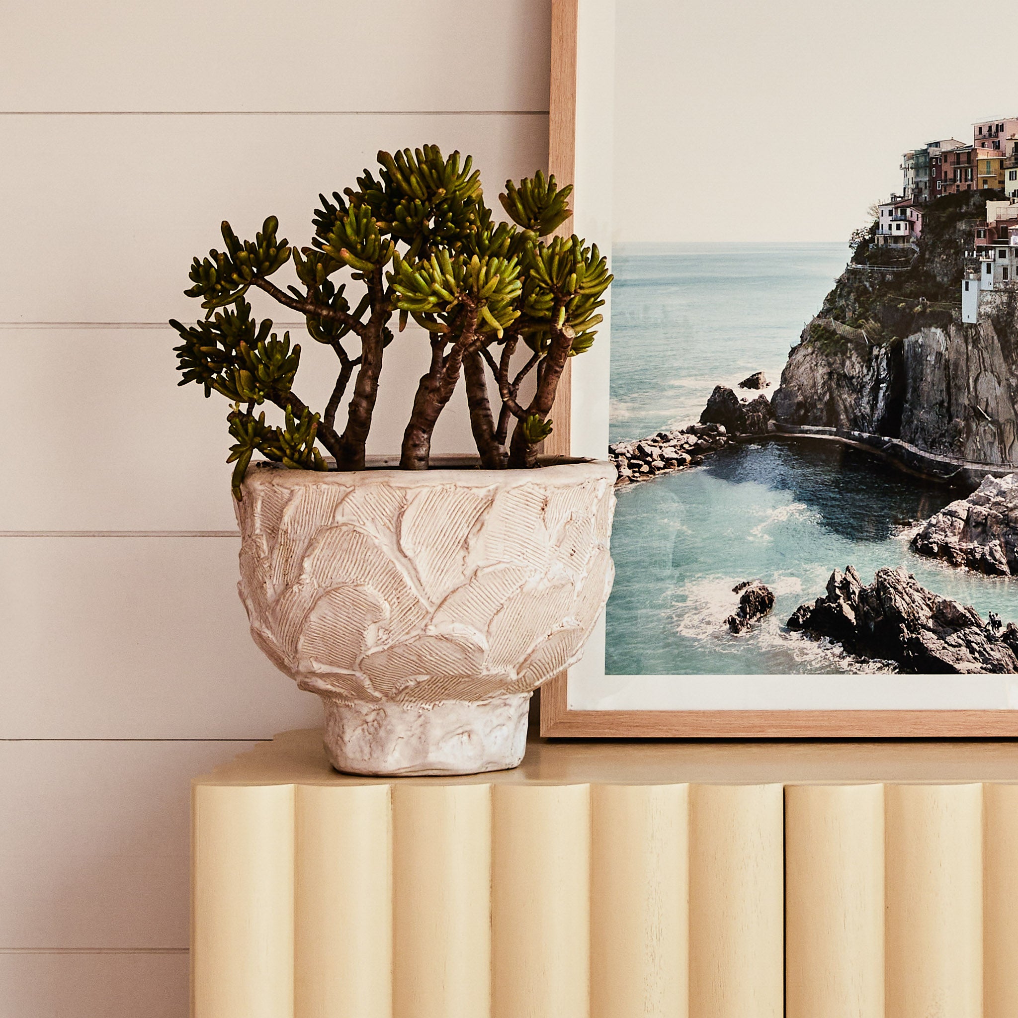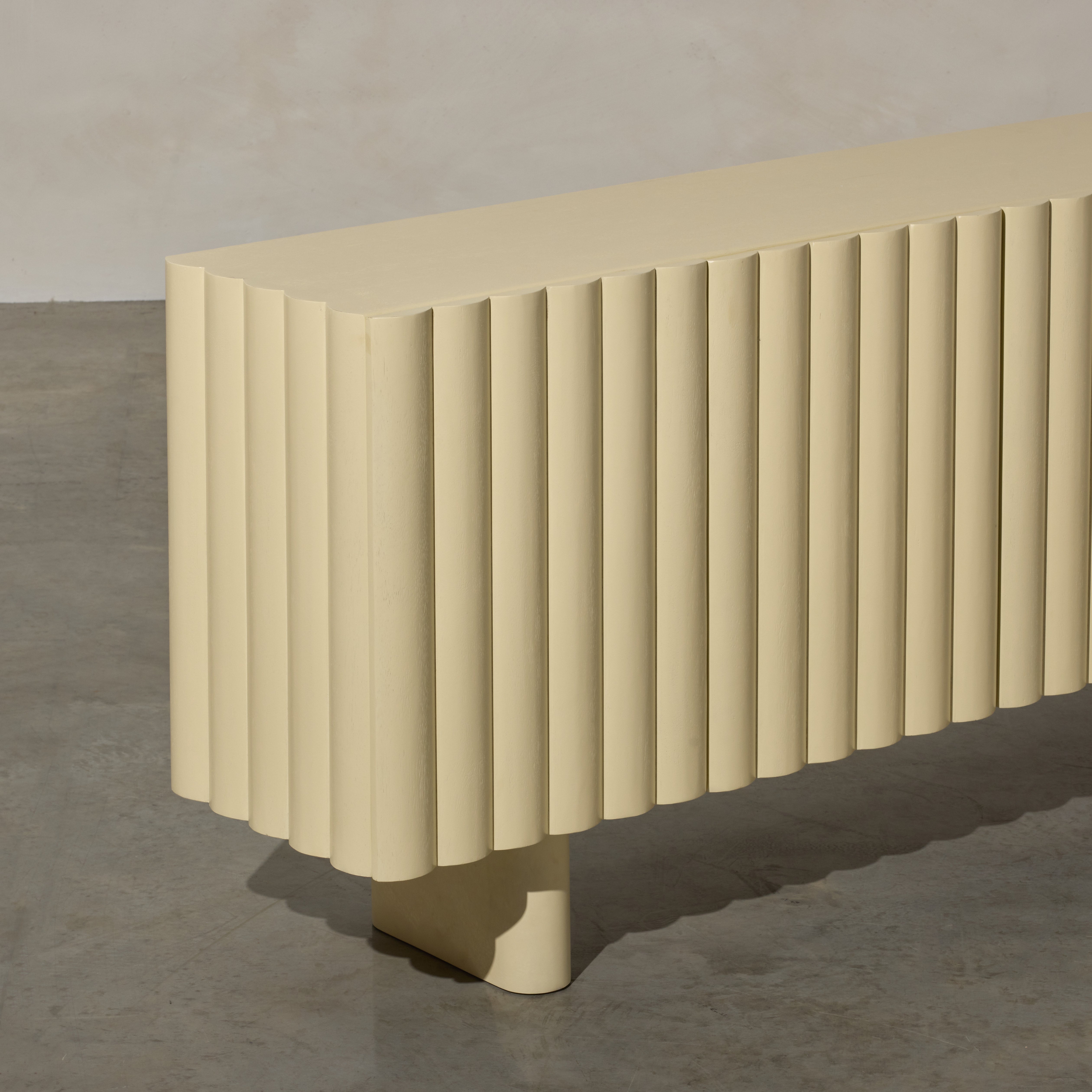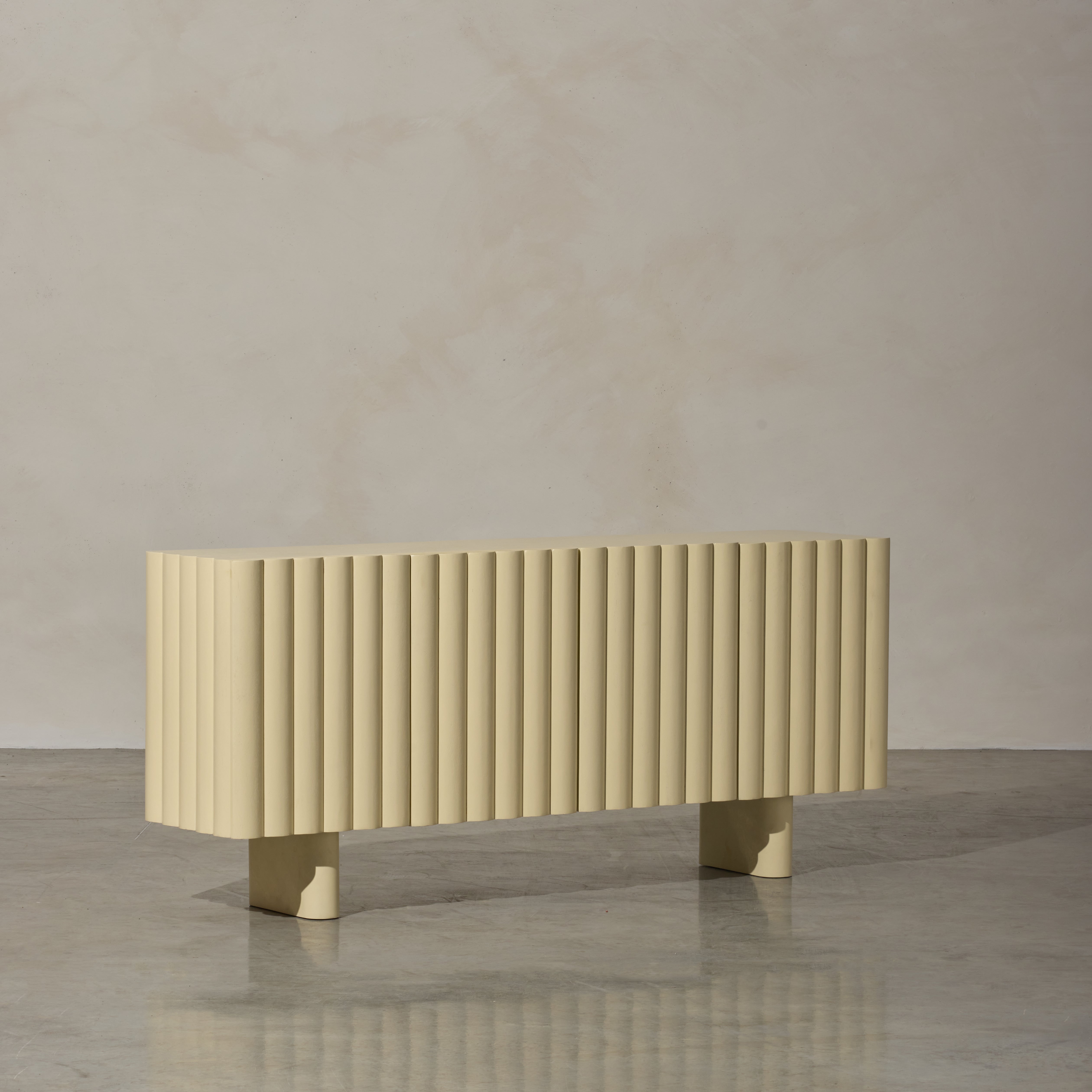 Introducing our latest addition to the collection, the Lief Sideboard, a blend of retro-inspired design and modern silhouette. Crafted from high-quality timber, this sideboard features distinctive linear battened front panels that add depth and softness to its appearance. The Lief Sideboard comes in a buttery yellow finish, injecting a nostalgic yet sophisticated touch to any space. Its bold hue brings a sense of warmth and vibrancy, instantly uplifting the ambiance of the room. With its retro-inspired design and practical storage solutions, the Lief Sideboard is the perfect choice for those who appreciate fine craftsmanship and innovative design with a slight nod to the past. Stylist's tip: consider incorporating vintage or retro accents to complement its aesthetic. Look for mid-century modern decor pieces like ceramic planters, glass vases, or retro-inspired table lamps.