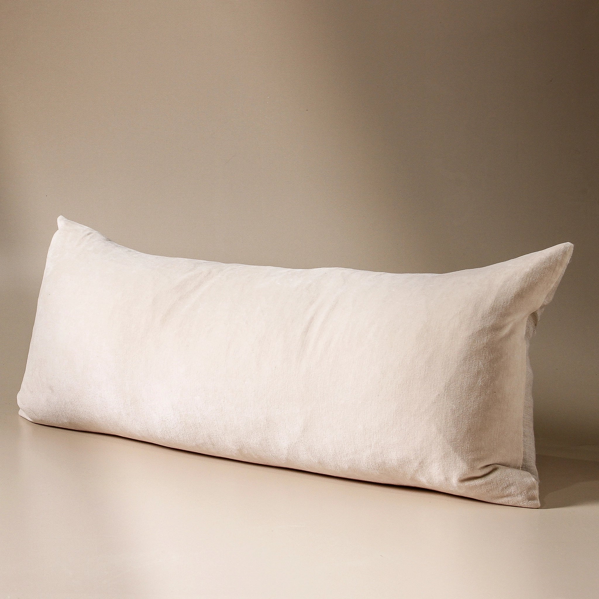 A cylindrical bolster cushion that bridges the gap between structured and soft, its terracotta-toned velvet face catching light like sun-warmed clay. Saarde's artisan approach reveals itself in the vintage wash that gives each cushion subtle tonal variation, while the reverse side presents crisp linen for those who favour texture over lustre. Filled with feathers that yield and recover with each touch, this piece speaks to the ritual of rest — whether anchoring the corner of a contemporary sofa or softening the hard edges of a mid-century daybed. The cylindrical form brings architectural presence to any arrangement, its earthy clay colour grounding brighter textiles while harmonising with natural timber and stone.