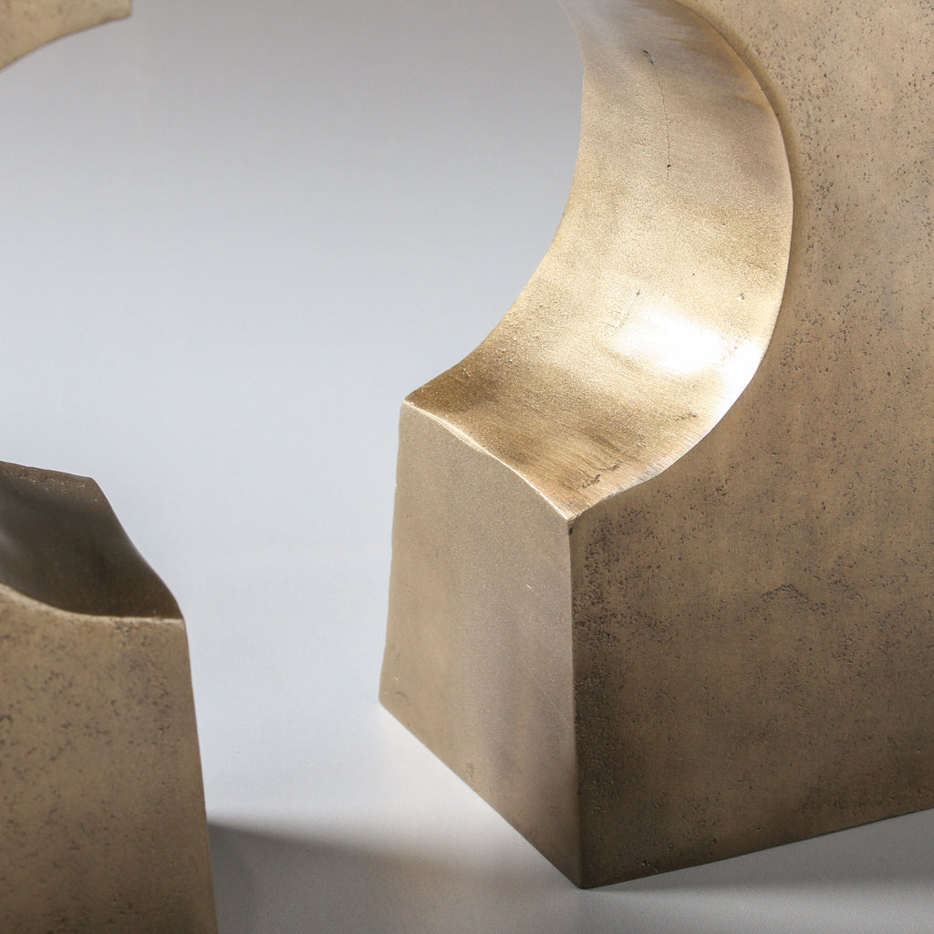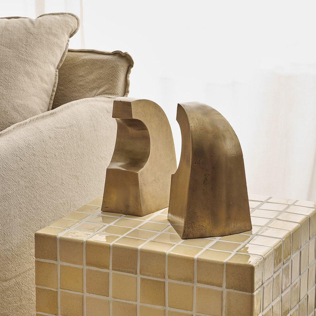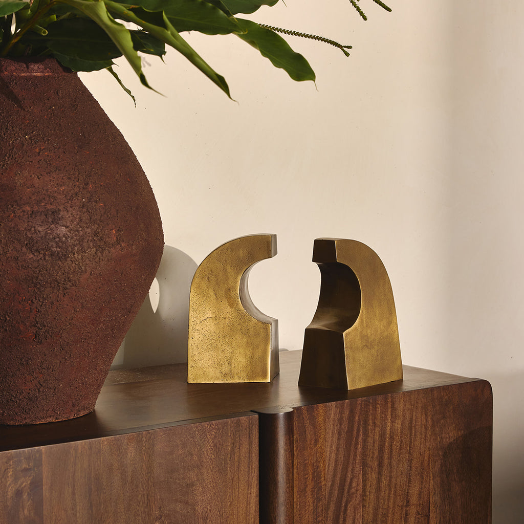 Introducing our Luna Bookends finished in Antique Brass, a refined addition to your interior space. These bookends feature a half-arch shape with soft curves, embodying a sense of fluidity and form that enhances the aesthetic appeal of your bookshelf. Crafted from Aluminium, the bookends provide a harmonious contrast to the linearity of books, creating a visually pleasing composition that elevates your decor. Perfect for use in a study, living room, or office, these bookends are more than just functional objects; they are decorative elements that contribute to the overall design narrative of your space. Use them to frame a curated selection of books, showcase small art pieces, or highlight your favourite collectibles.