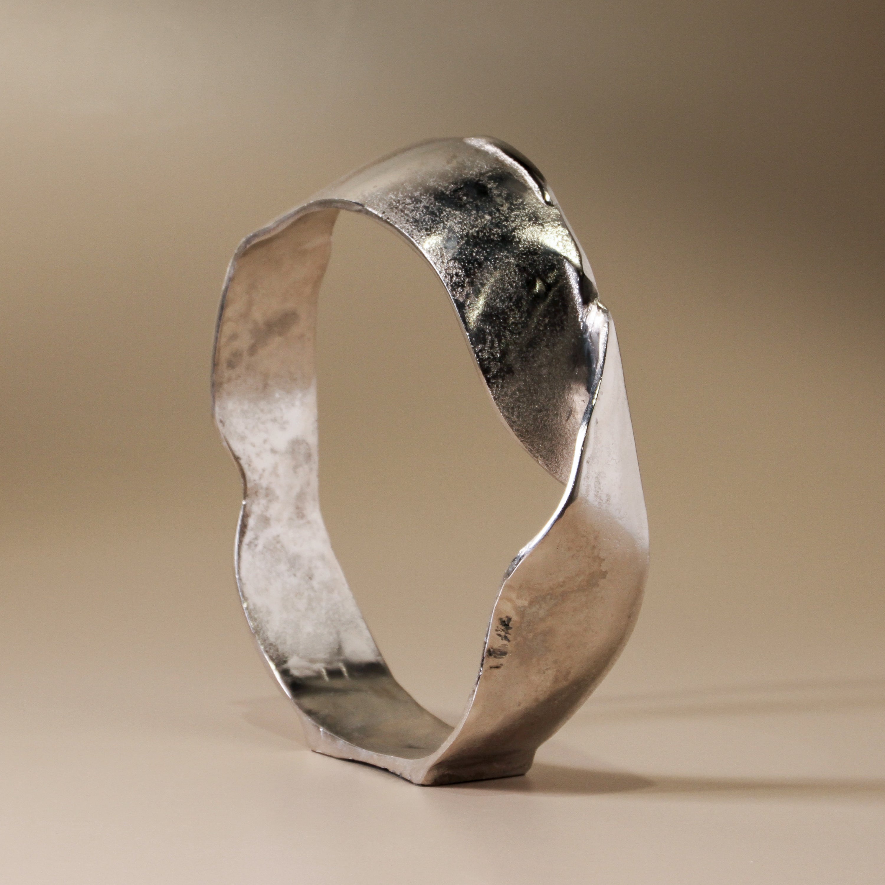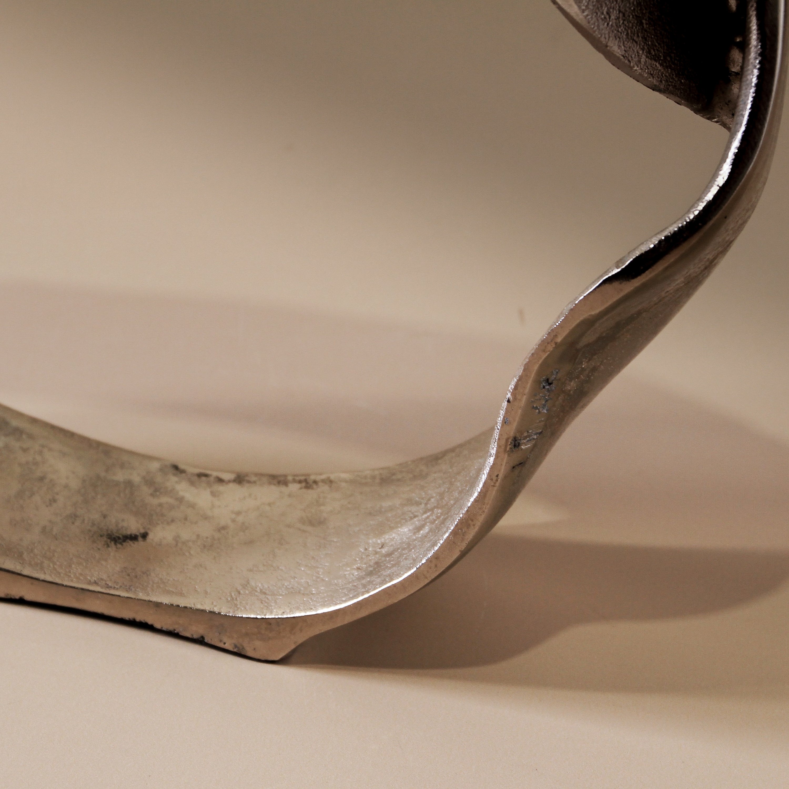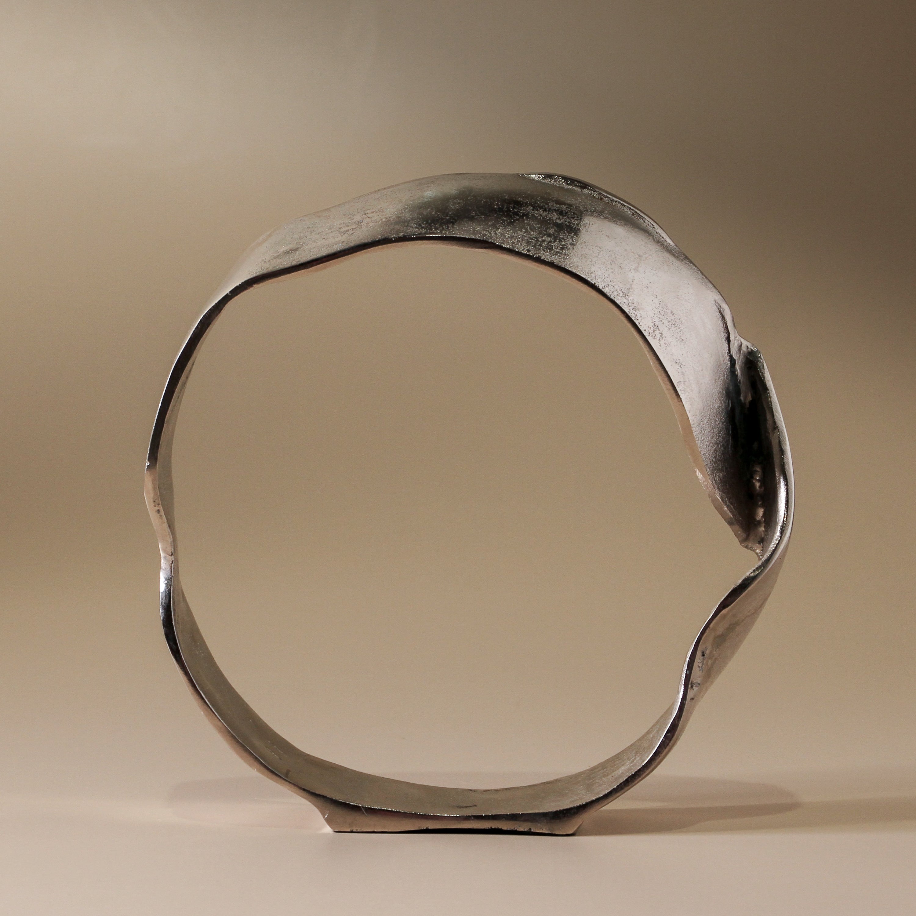 The Lunar Sculpture is a quiet exploration of shape—tall, open and circular with an organic, imperfect edge. Each piece is slightly irregular, like a ring drawn by hand. The small size glows in antique brass, while the large version is rendered in raw nickel, cool and reflective. Designed for layering, Lunar works beautifully as a pair—playing with height, finish, and light. Style them on a console, shelf, or tray with soft florals or ceramic vessels. Their open form brings air and movement to any vignette.