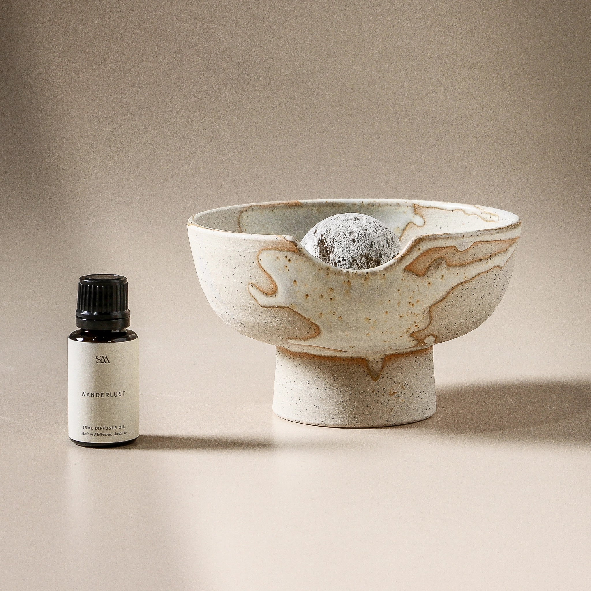 Includes: 1 x Ceramic Diffuser Tray (handmade in Melbourne), 1 x Pumice Stone Ball, 1 x 15ml Fragrance Oil