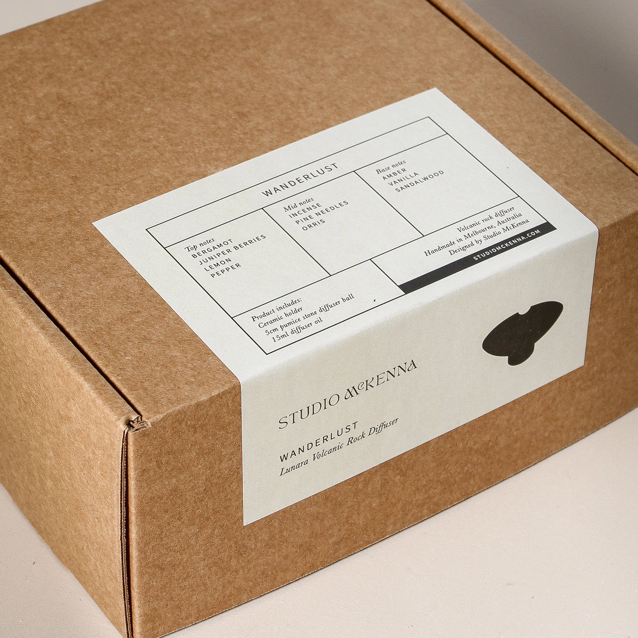 The Wanderlust Lunara Diffuser is earthy and enigmatic, made for seekers of the strange and beautiful. A cream ceramic vessel holds a porous pumice stone sphere that slowly releases scent, calling to mind pine forests, incense smoke, and faraway places.