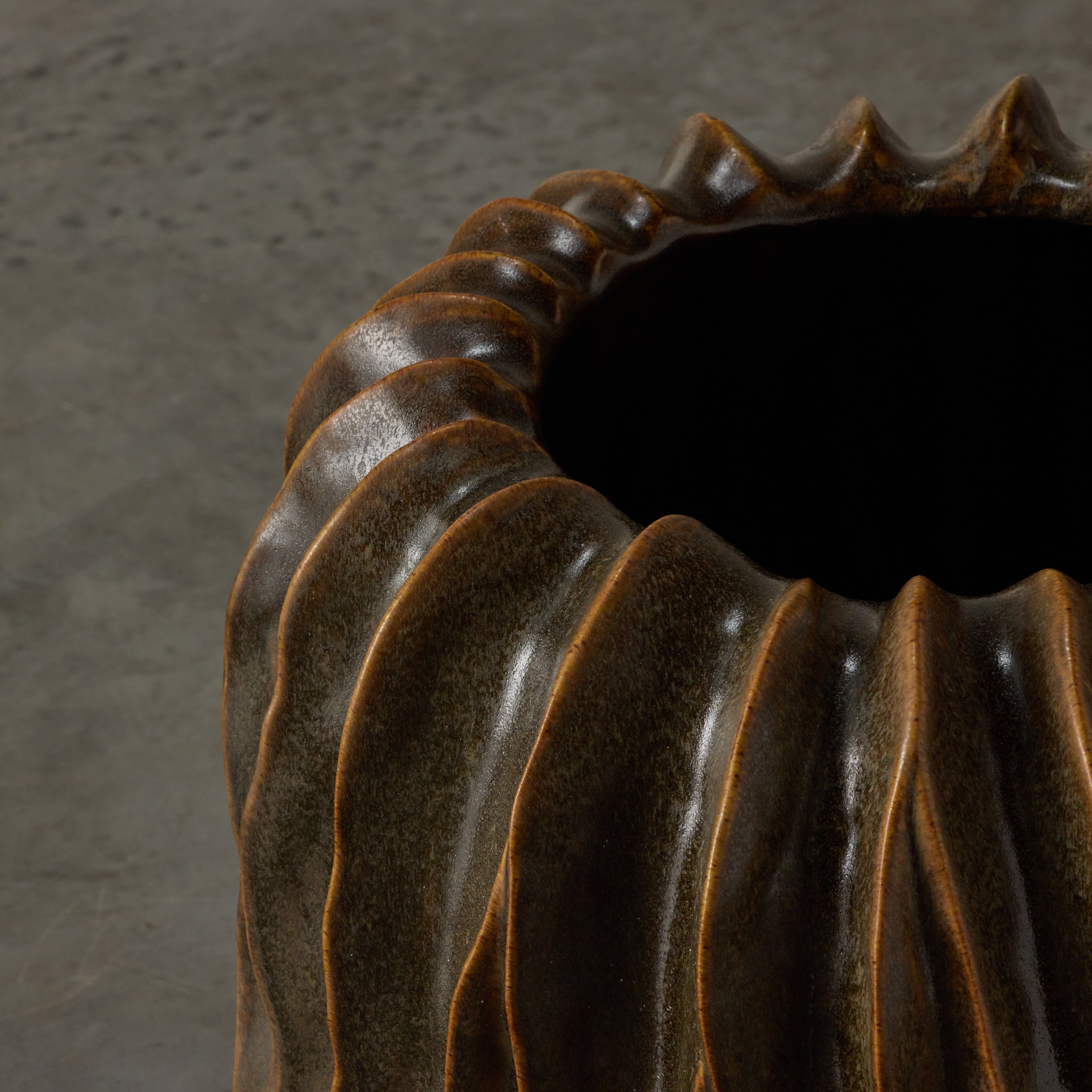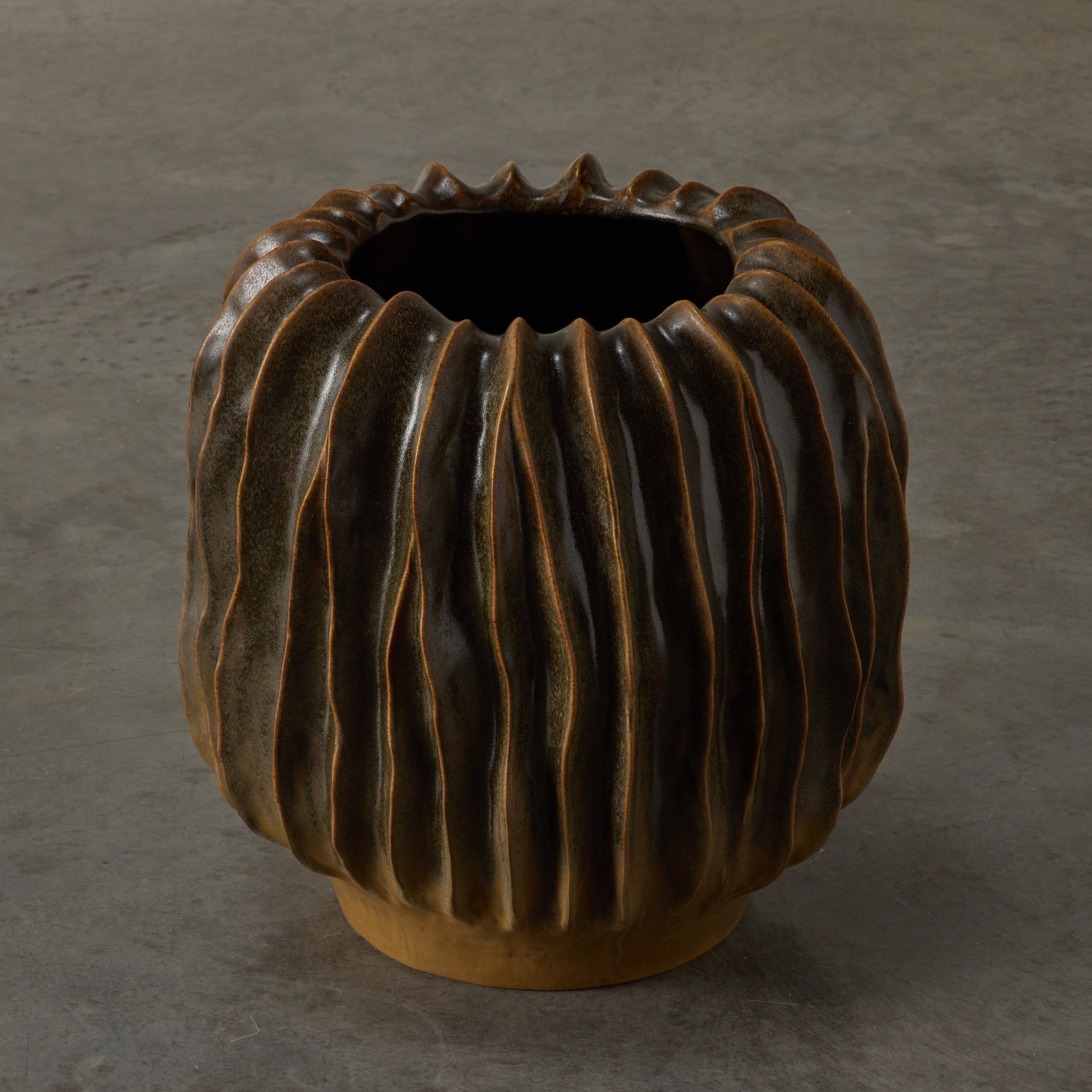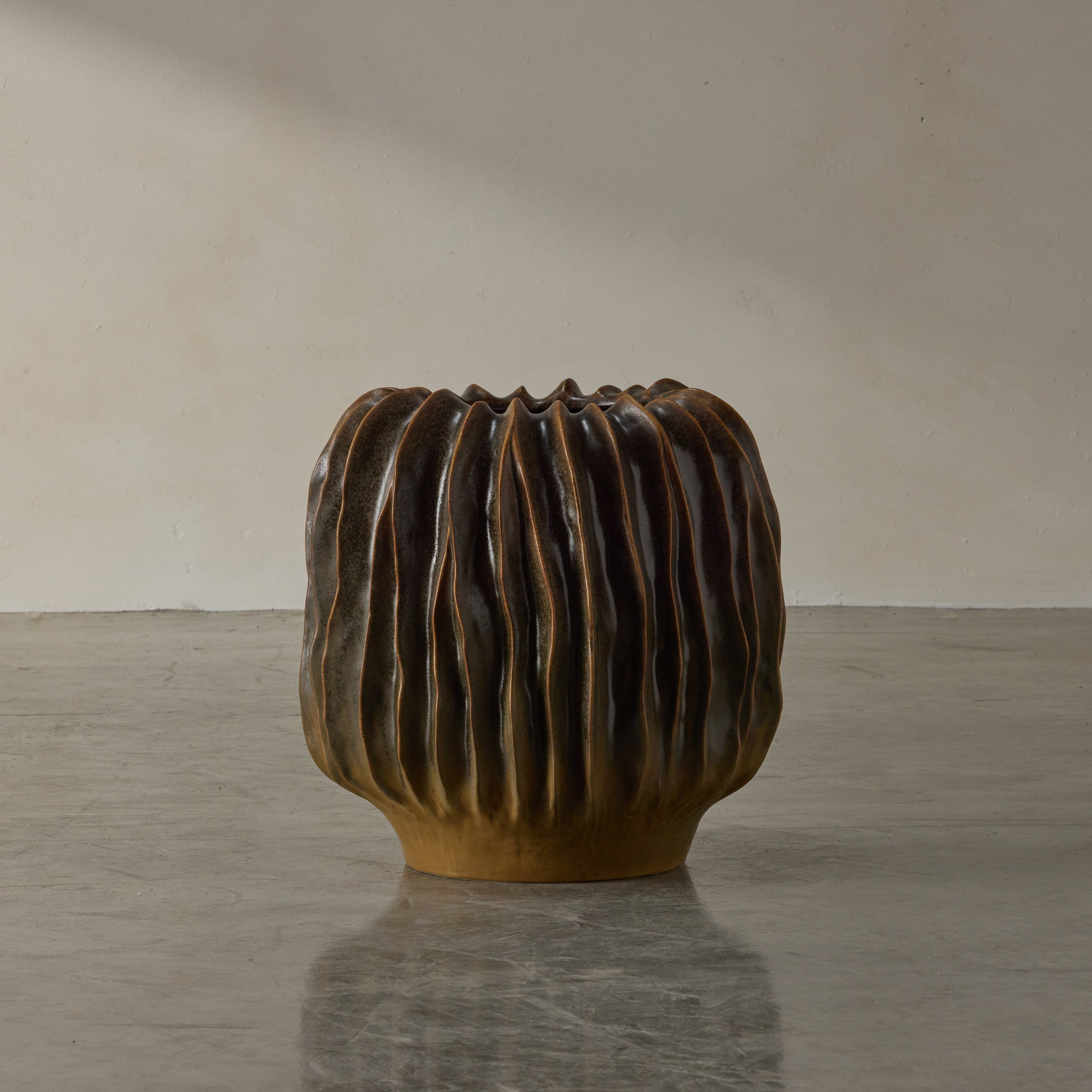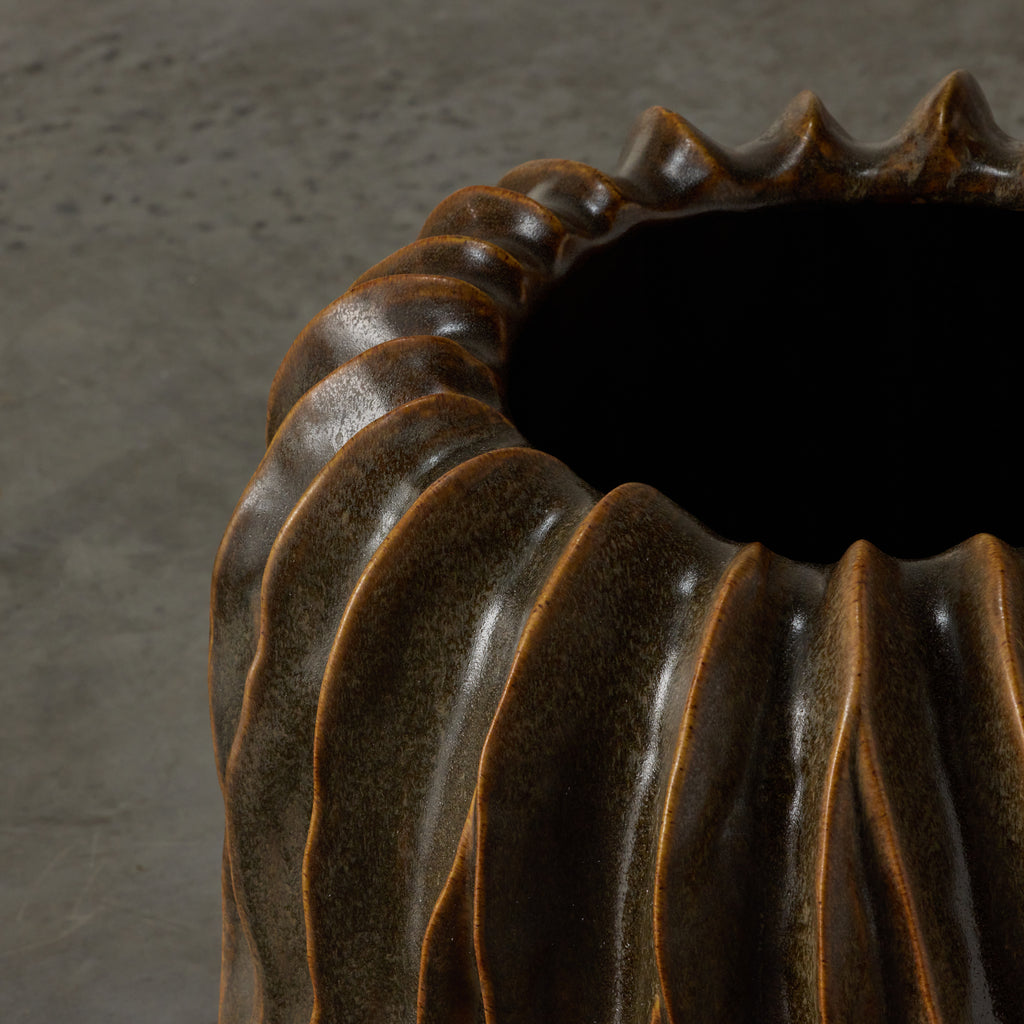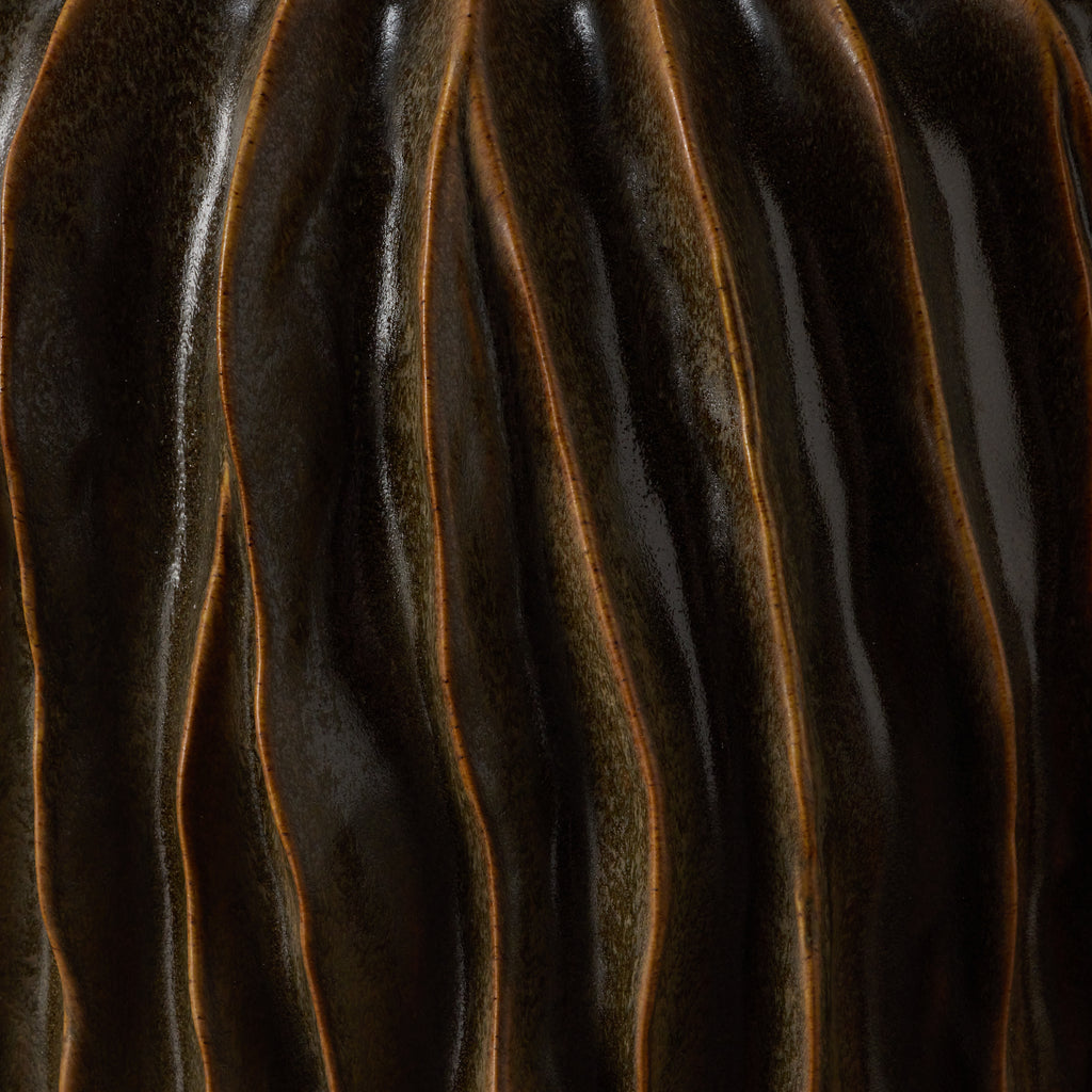 Crafted with meticulous attention to detail, the Malani Pot showcases the artisanal touch of handmade ceramic construction. The combination of the ribbed sculptural design, ridged and fluted texture, and the oval shape elevates this pot to a realm of artistic expression.