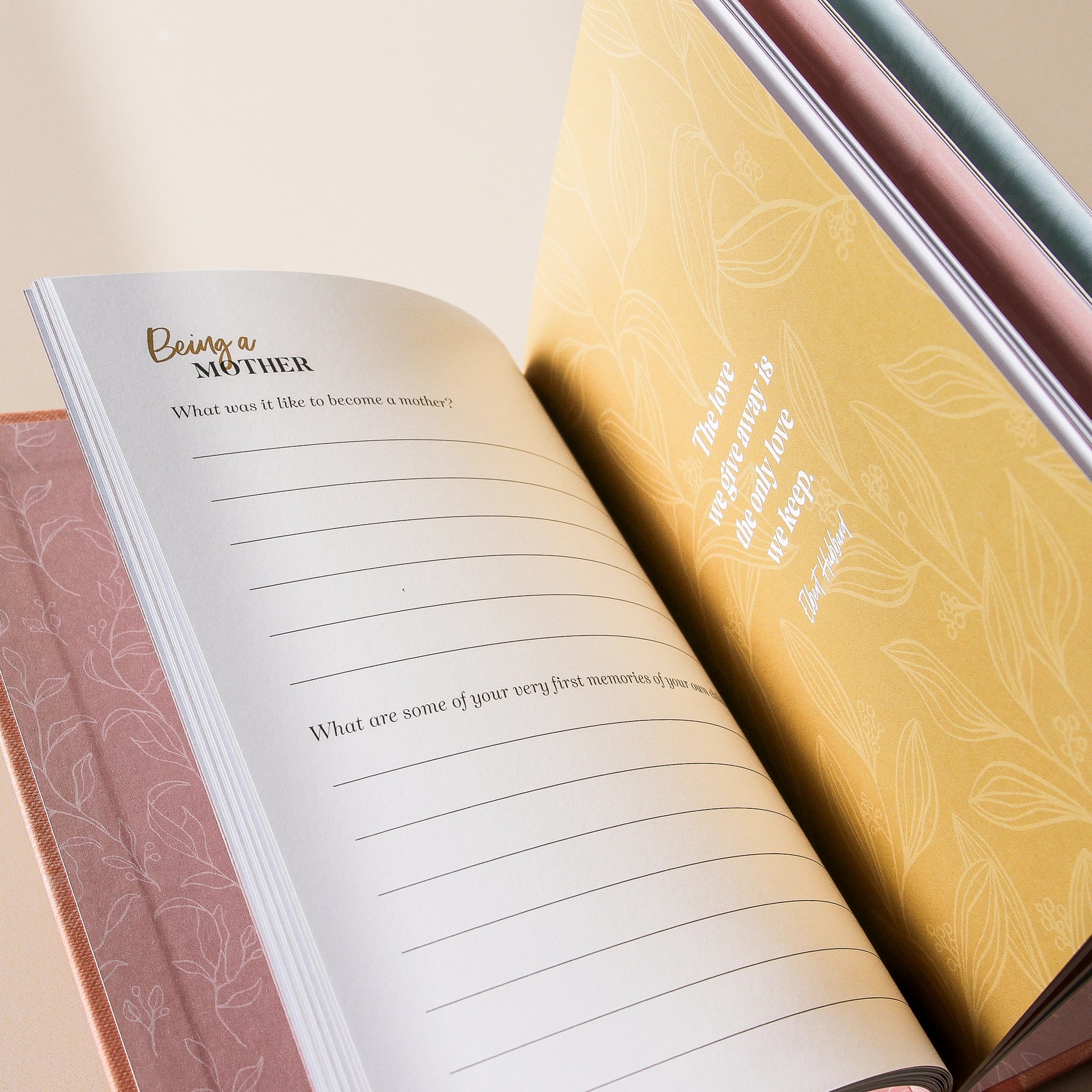 The book offers thoughtful prompts to record stories that have shaped Grandma's life, such as:
