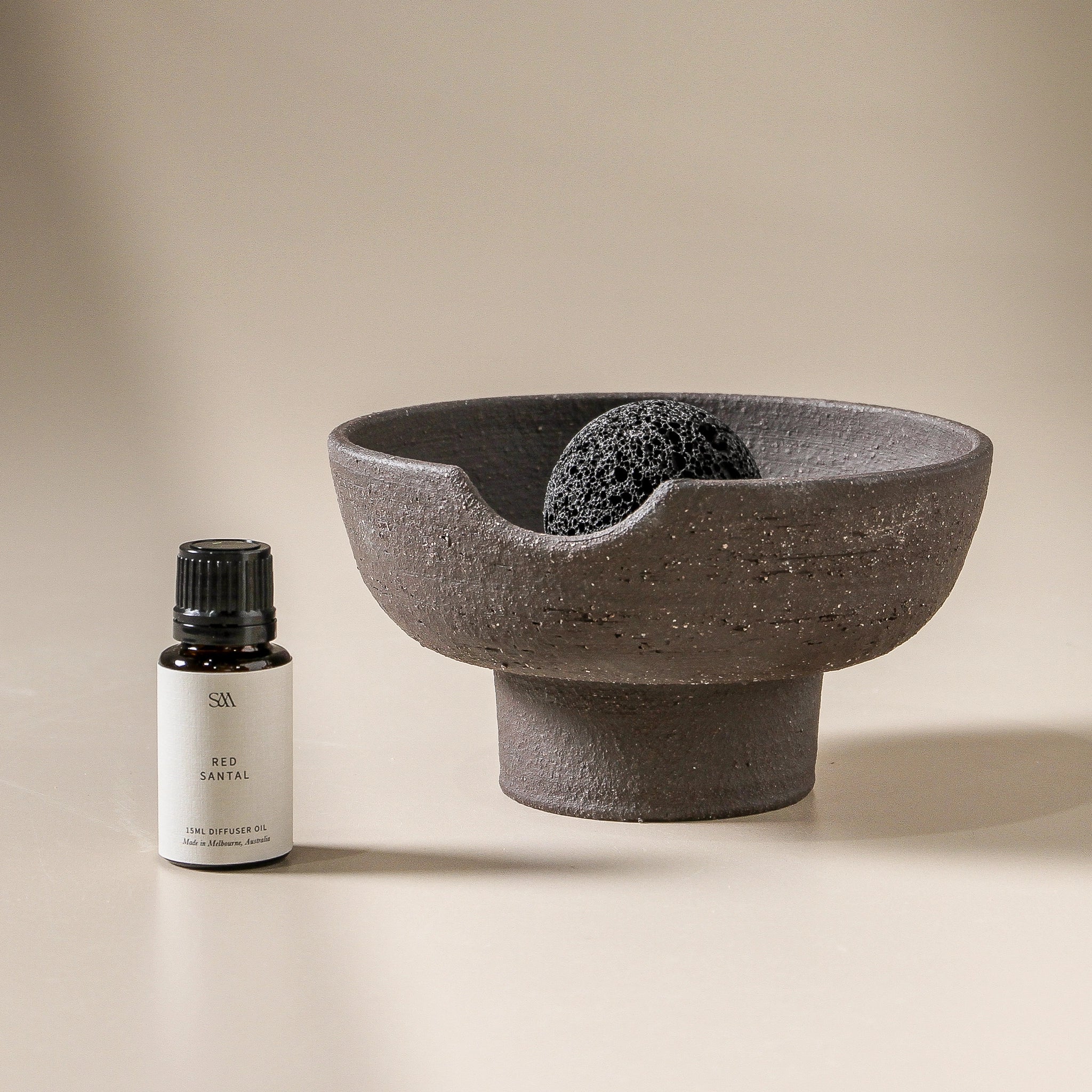 Our Obsidian Scented Diffuser pairs the moody depth of volcanic rock with a sculptural ceramic tray, handcrafted from pure black clay in Melbourne.