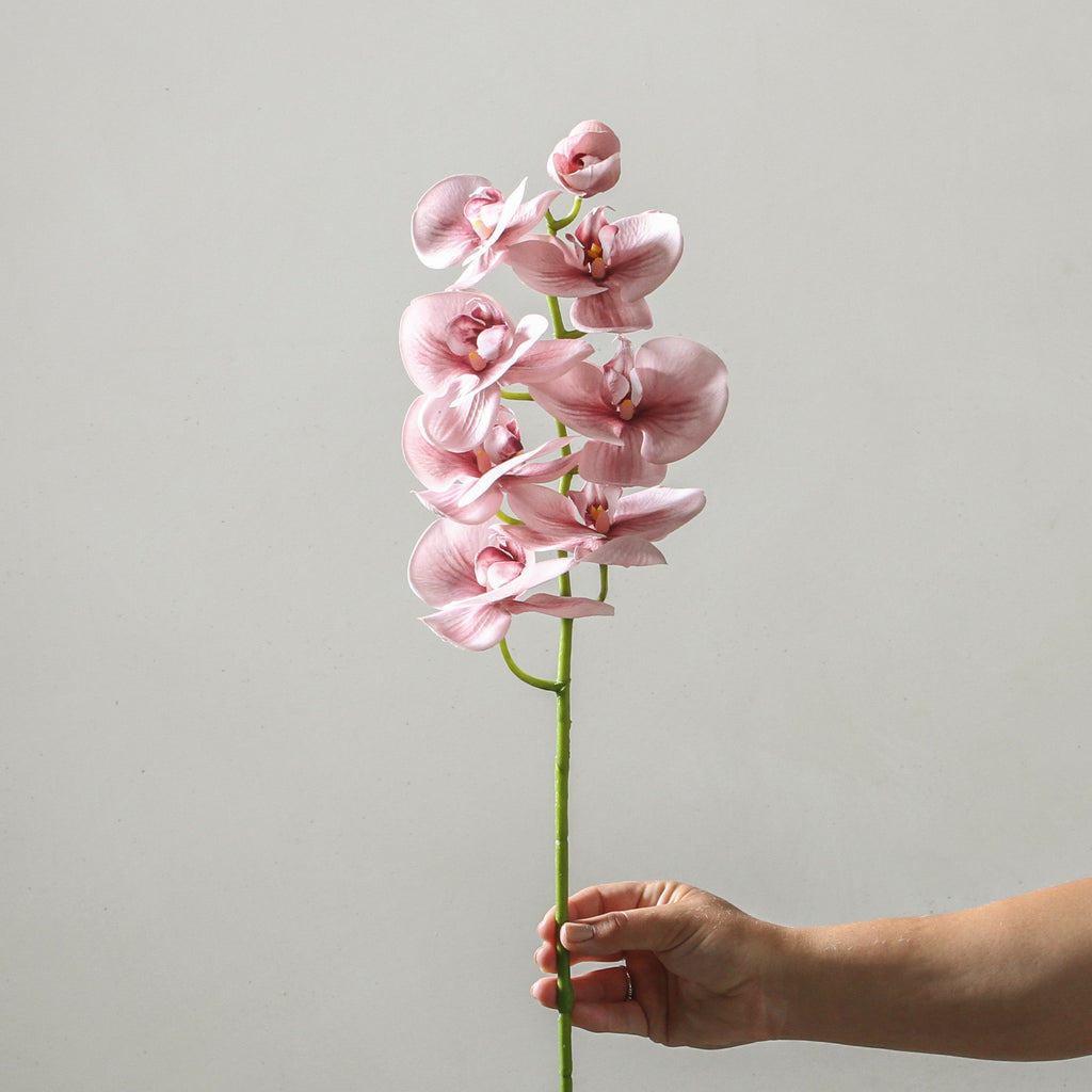 Soft and beautiful, the Orchid Phalaenopsis Spray in Dusty Pink is crafted to showcase delicate, lifelike petals with subtle dusty pink hues that evoke the natural beauty of real orchid blooms.