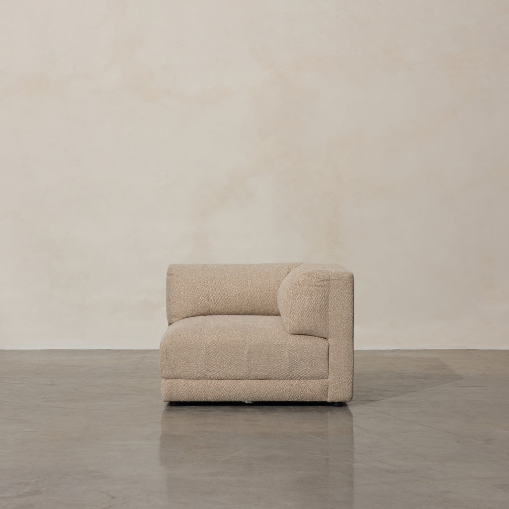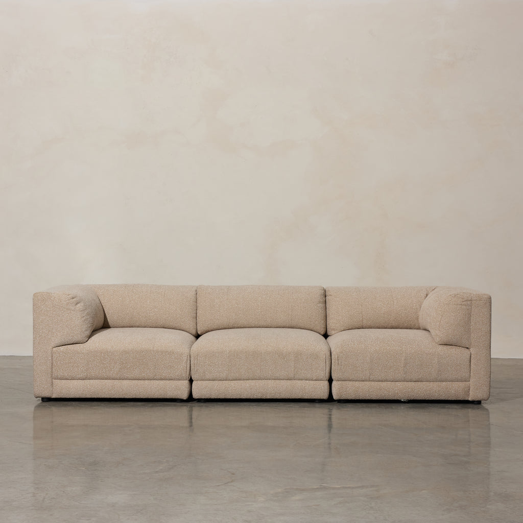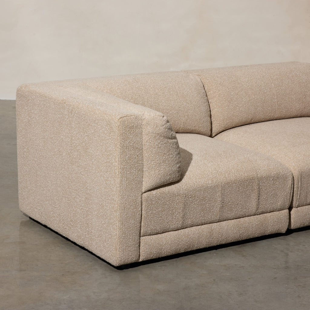 The textured neutral colour adds a touch of timeless appeal, making this modular sofa a versatile addition to various decor schemes. Its cubic silhouette lends a modern edge, creating a chic focal point in your living space.