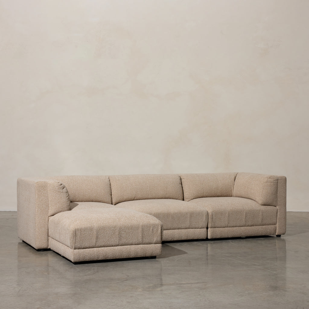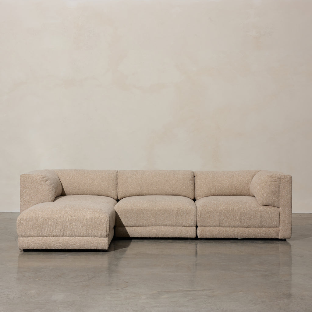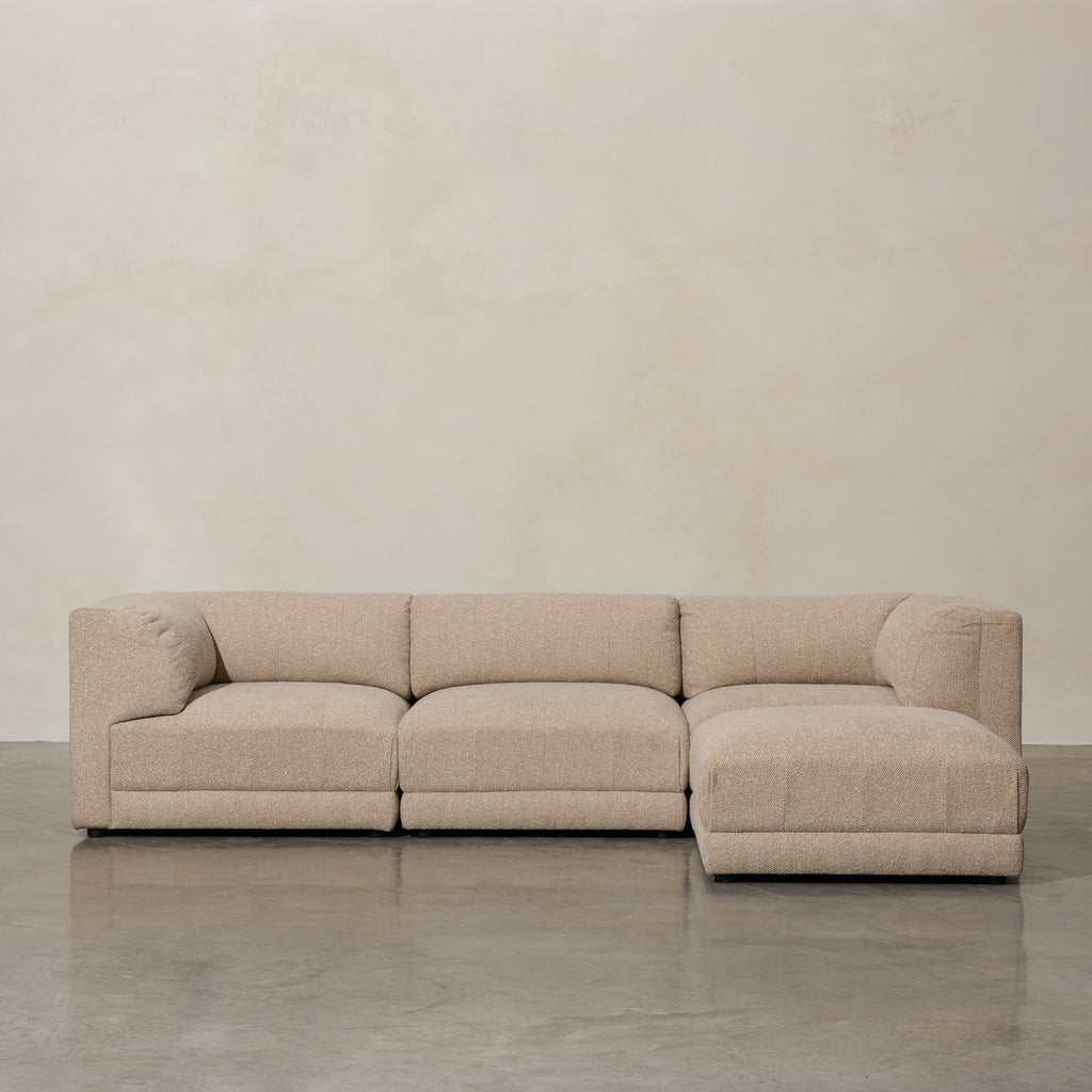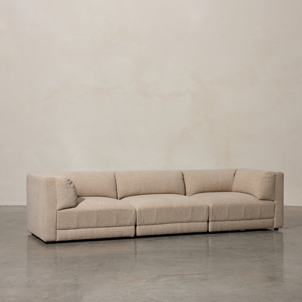 The textured neutral colour adds a touch of timeless appeal, making this modular sofa a versatile addition to various decor schemes. Its cubic silhouette lends a modern edge, creating a chic focal point in your living space.