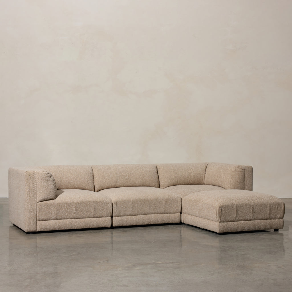 Introducing our latest Modular Sofa, Peggy —a soft cubic design that effortlessly infuses a contemporary style into any space. This statement-making sofa is meticulously crafted with soft foam on the backrests and ottoman, ensuring not only a sleek aesthetic but also superior seating comfort.