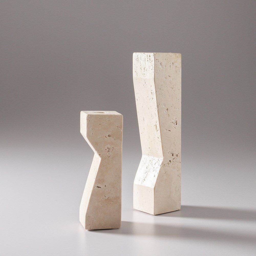 Crafted from solid travertine, our Pilos Candlestand celebrates chic and minimal style. This beautiful candlestand is like a sculpture and will add a touch of the artistic to your space. Simply pair with a classic taper candle to complete the look.